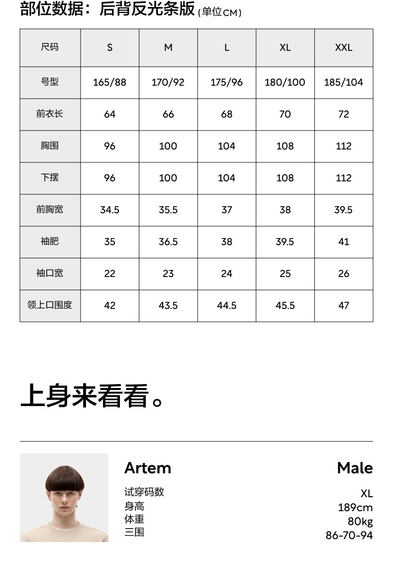 China (cm) 160-165/84-86 165-170 / 88-90 167-172 / 92-96 168-173 / 98-102 170-176 / 106-110