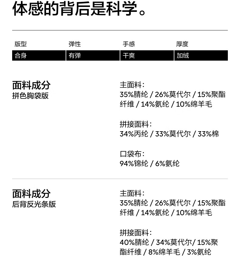 China (cm) 165 / 88-90 170 / 96-98 175 / 108-110 180 / 118-122 185 / 126-130
