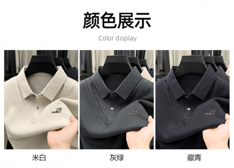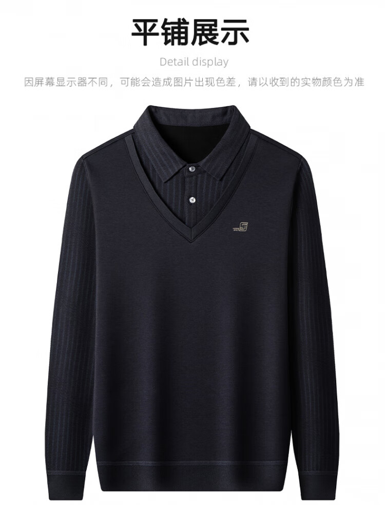 Hengyuanxiang plus velvet thickened one-piece velvet men's sweater winter fake two-piece shirt collar warm base sweater for men