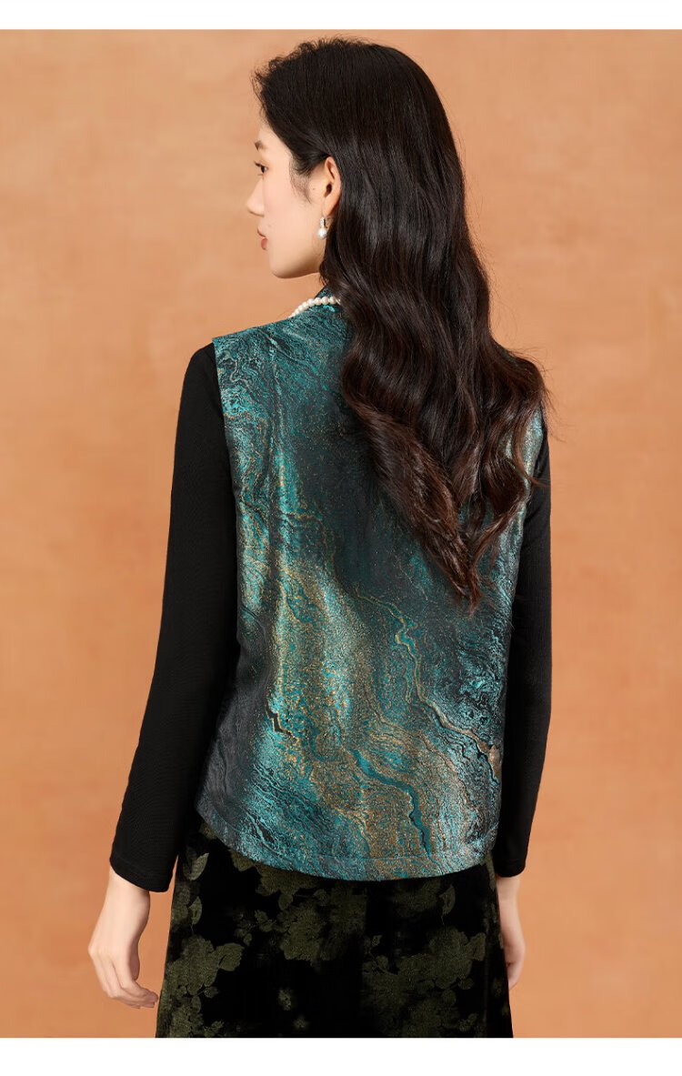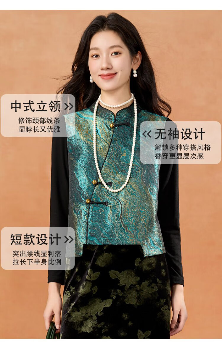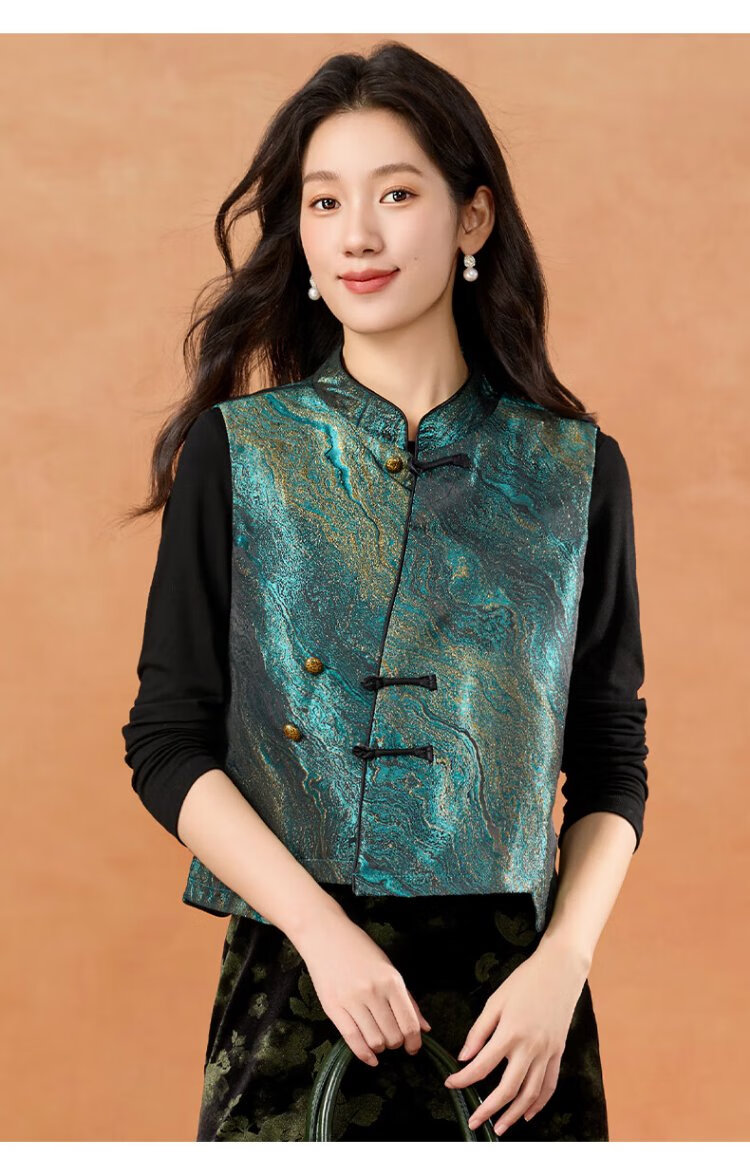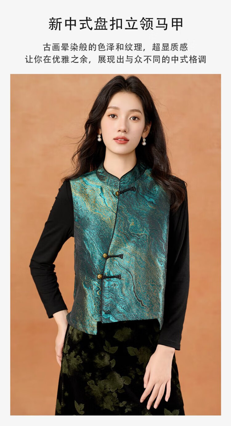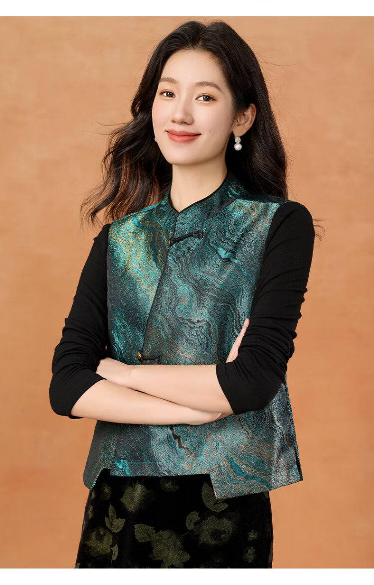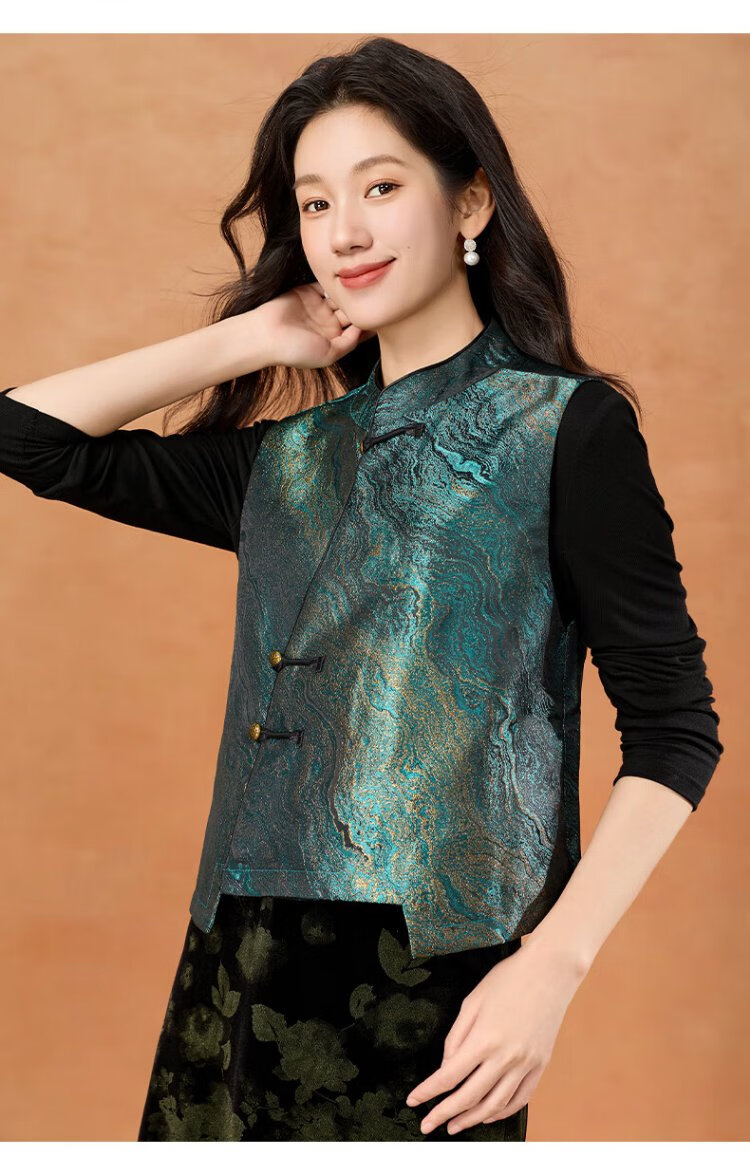 Kebel New Chinese Style Ambilight Retro Vest Top Women's 2025 New Autumn Stand Collar Button Sleeveless Jacket 2XL