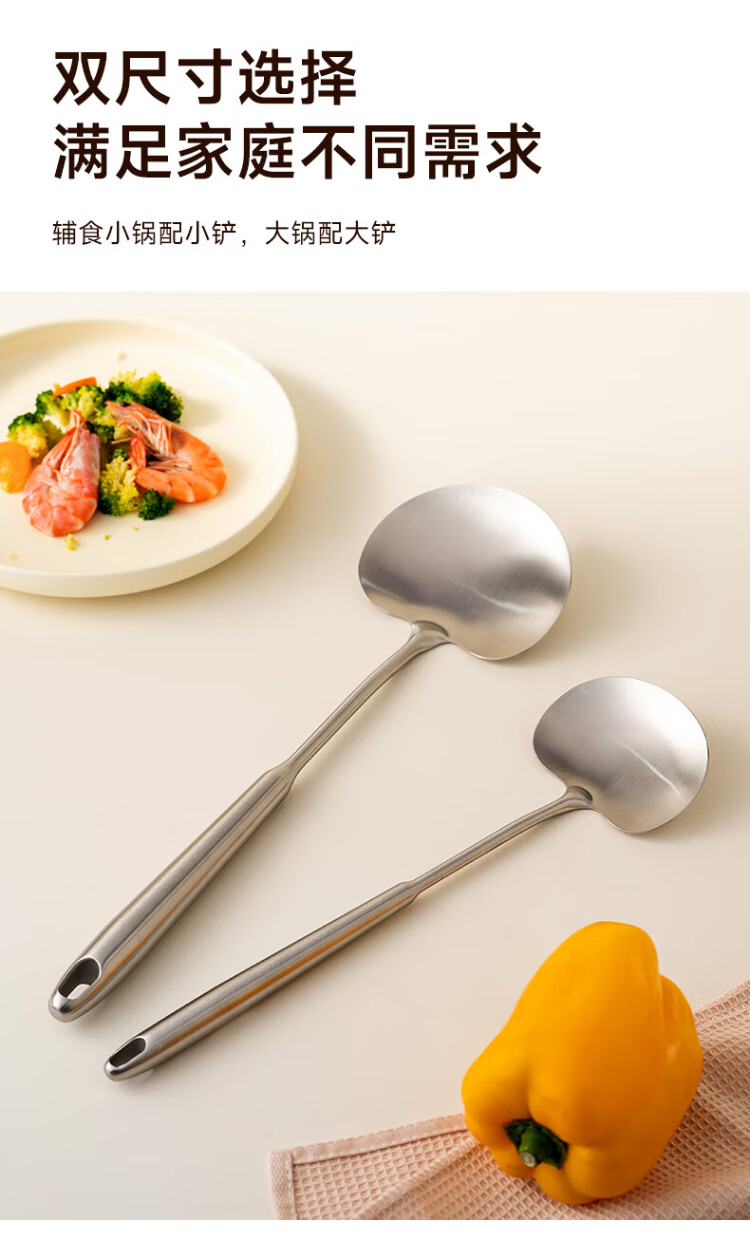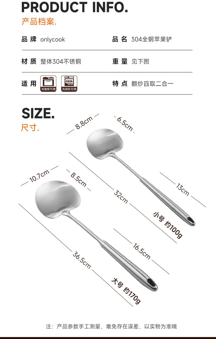 Onlycook spatula cooking spatula food grade 304 stainless steel household spatula all-steel one-handle mushroom soup spoon