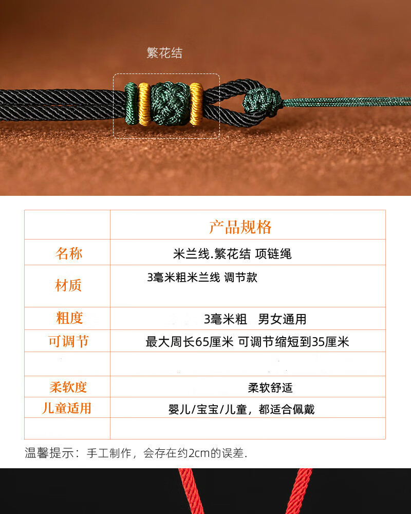Baoxiayue hand-woven adjustable pendant lanyard with flower knot men and women necklace rope rough jade pendant jade pendant rope adjustable full coffee rope flower knot 3 mm thick