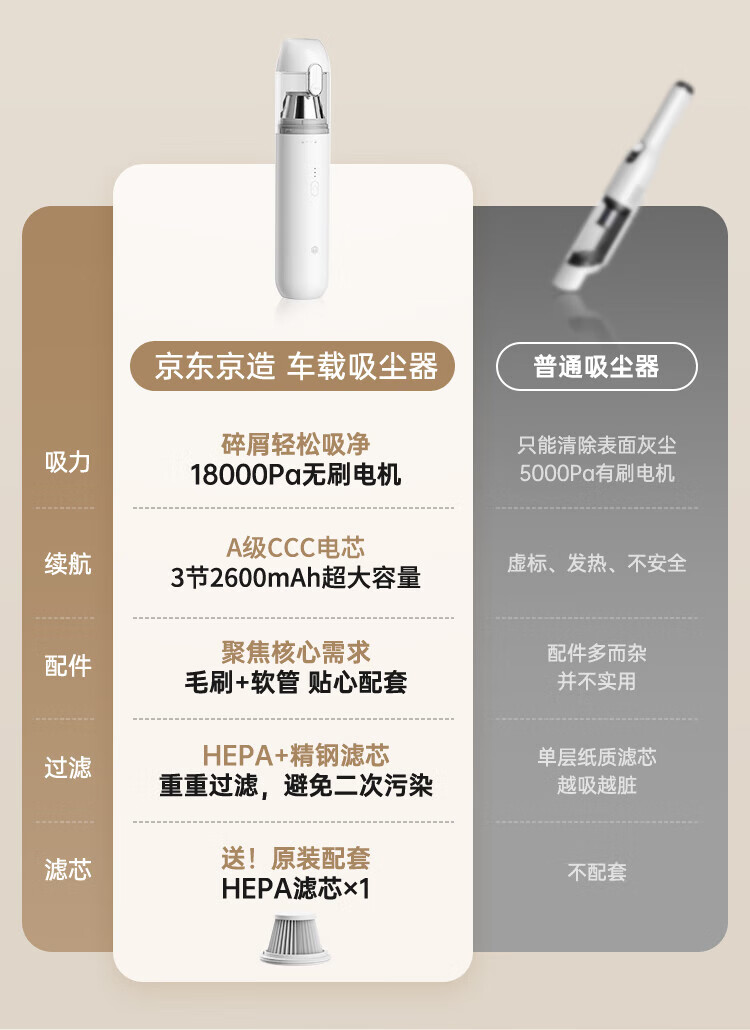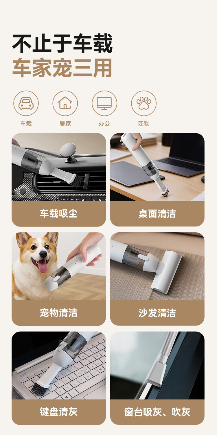 Car-mounted vacuum cleaner made by Jingdong, hand-held wireless high suction, long-lasting battery life, blowing and sucking in one, car-mounted, home desktop, window sill, pet dust removal, mini portable vacuum cleaner
