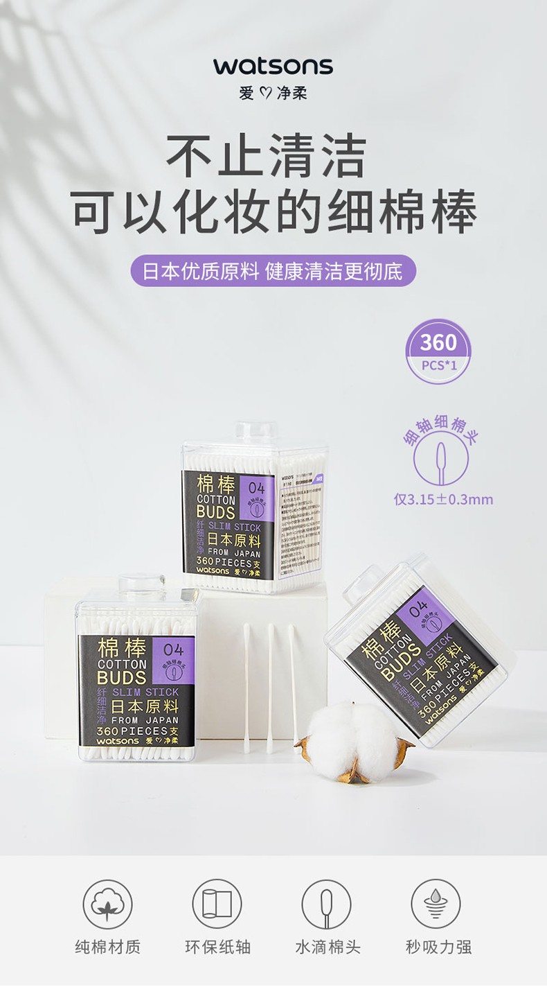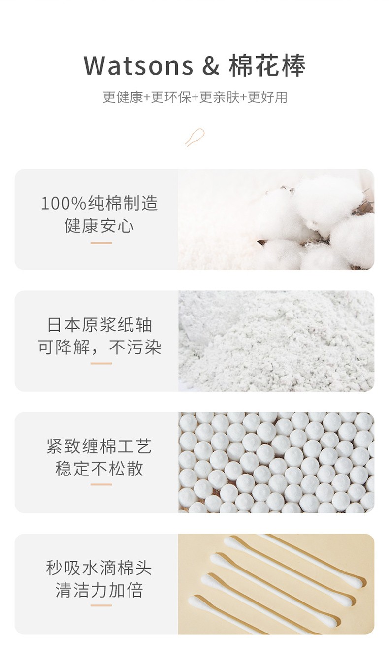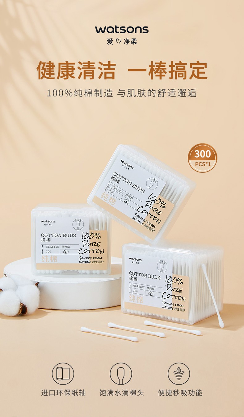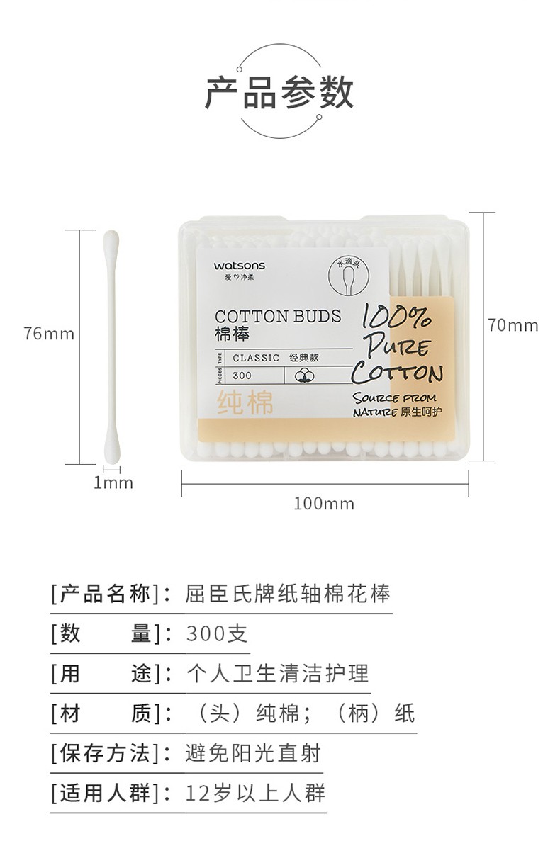 Watsons Watsons sanitary cotton swabs home cotton swabs paper shaft cotton swabs 300 pieces newly upgraded