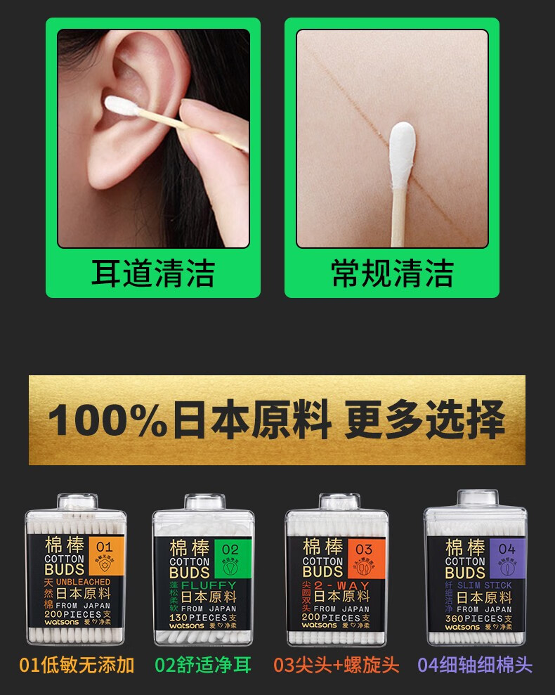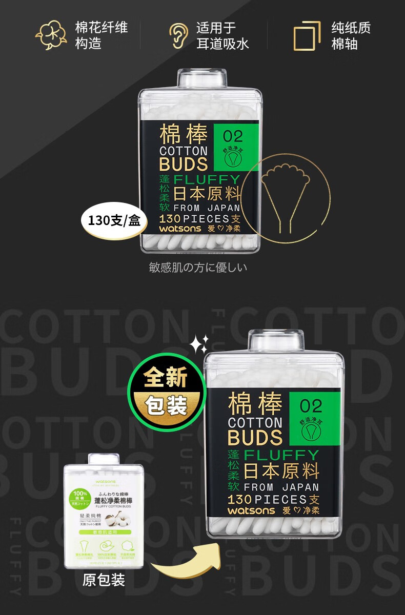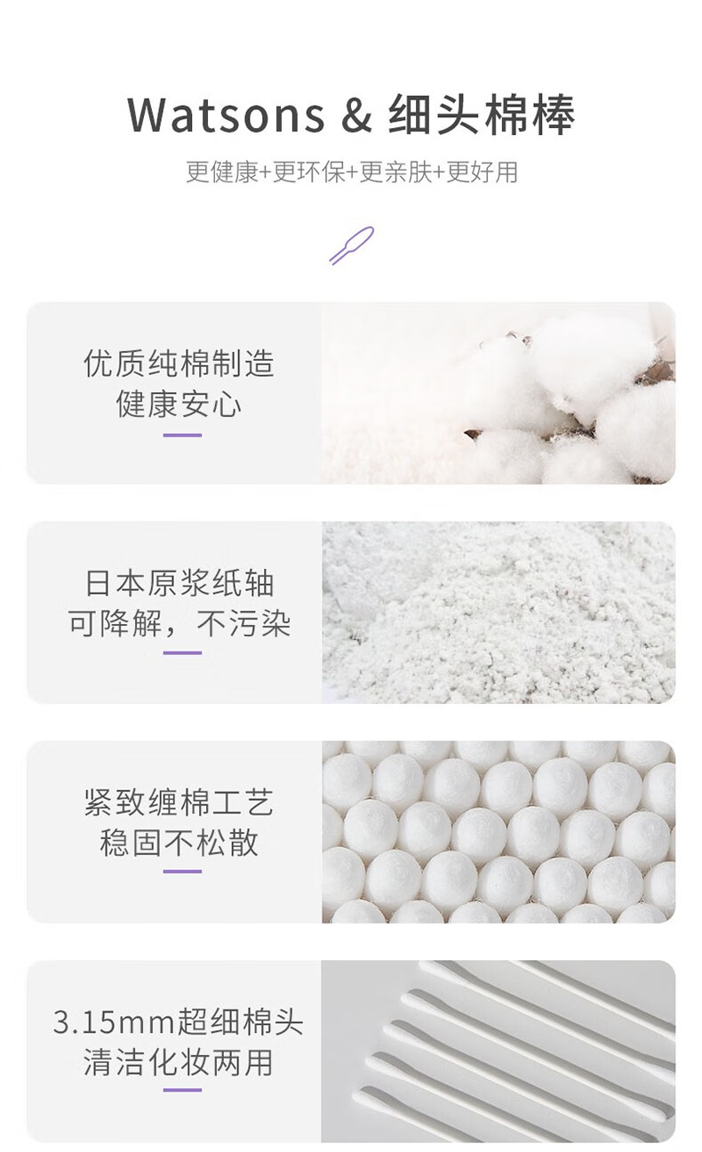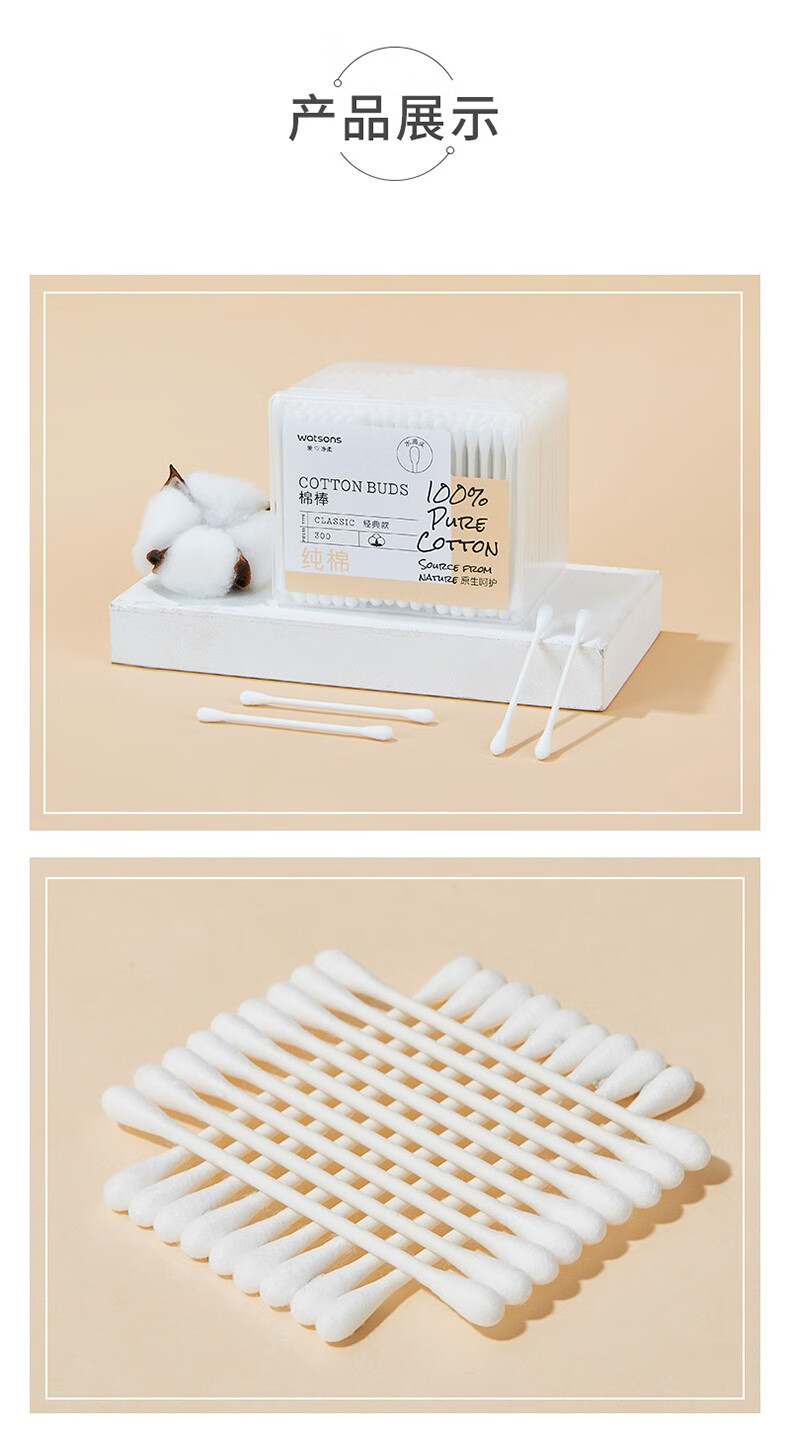 Watsons Watsons sanitary cotton swabs home cotton swabs paper shaft cotton swabs 300 pieces newly upgraded