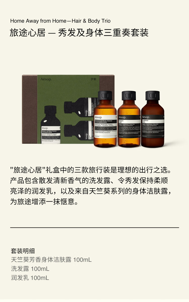 Aesop Travel Heart Shower Gel Shampoo Conditioner Washing Care Set Travel Pack Portable Gift Double 11