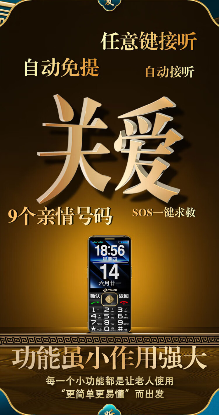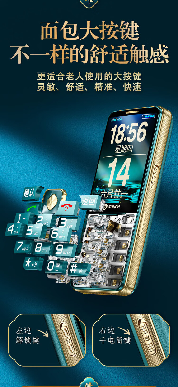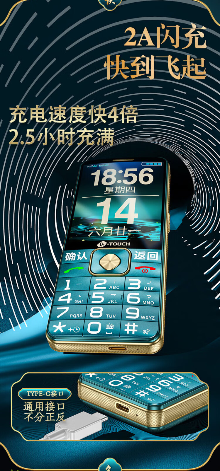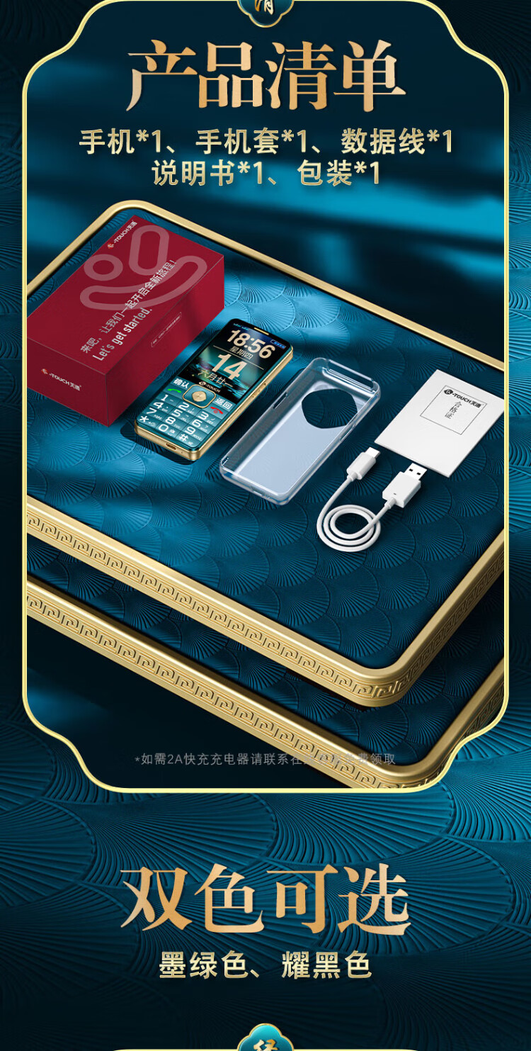 Tianyu U20 mobile phone for the elderly, 2A, fast charging, 5000mAh, full network communication, 4G, ultra-long standby, loud sound, large screen, large characters, buttons, students only make calls, special function mobile phone for the elderly, Cangfeng Black