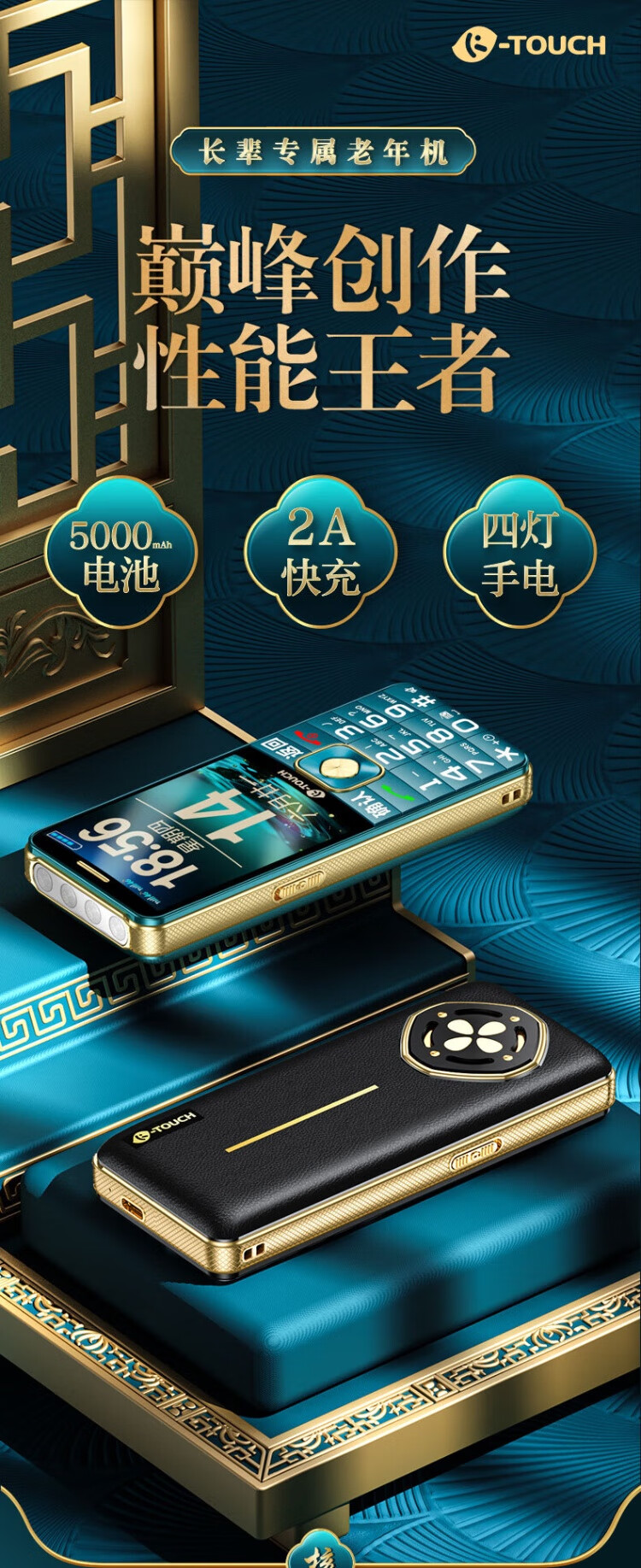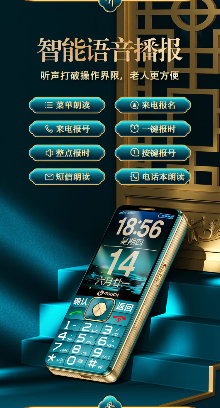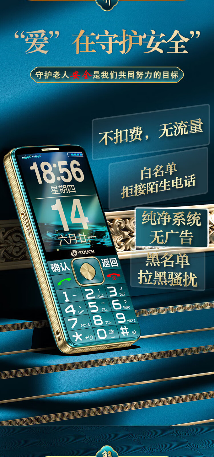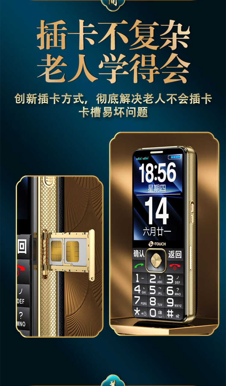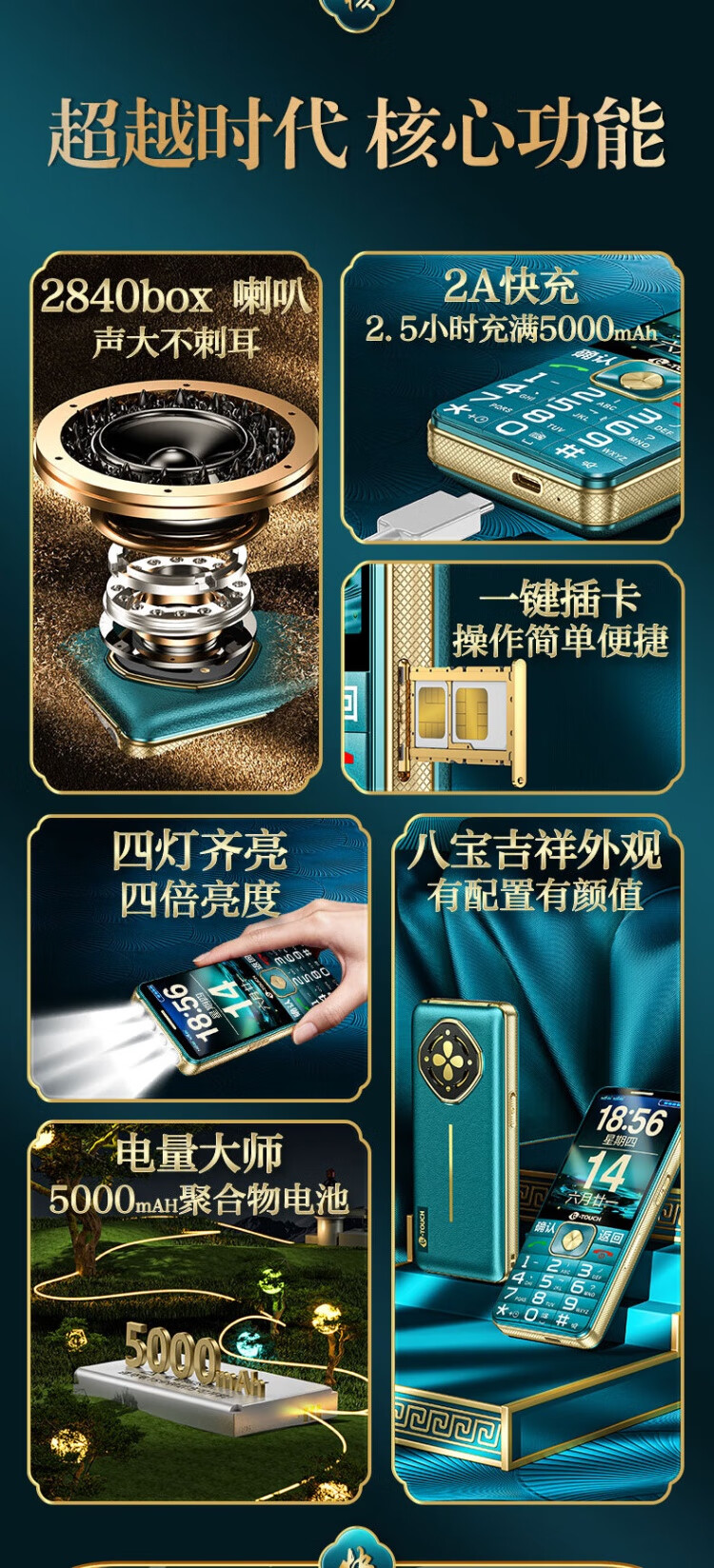 Tianyu U20 mobile phone for the elderly, 2A, fast charging, 5000mAh, full network communication, 4G, ultra-long standby, loud sound, large screen, large characters, buttons, students only make calls, special function mobile phone for the elderly, Cangfeng Black