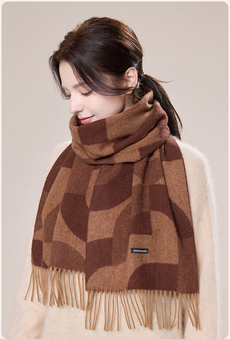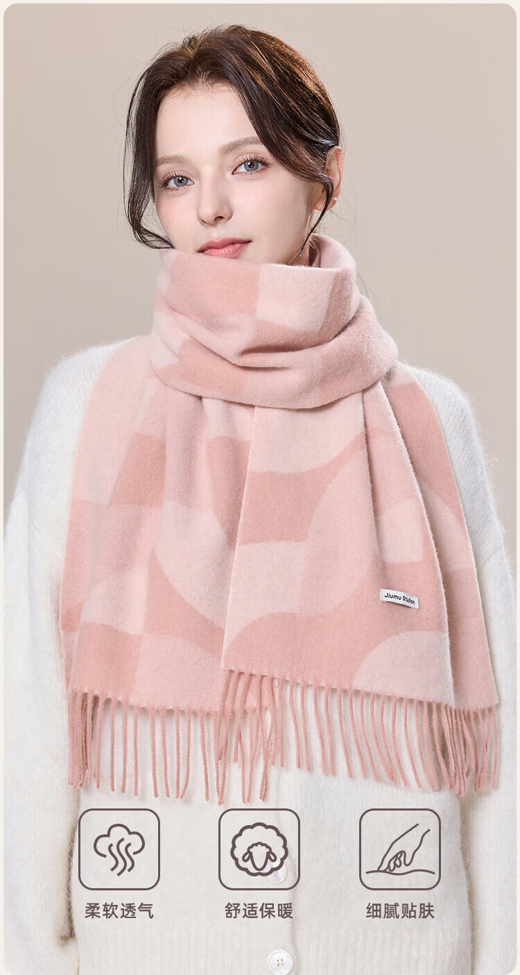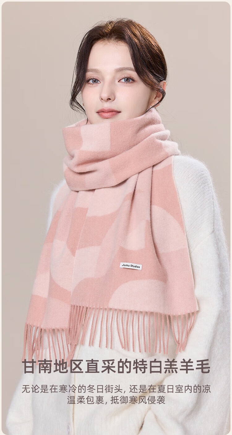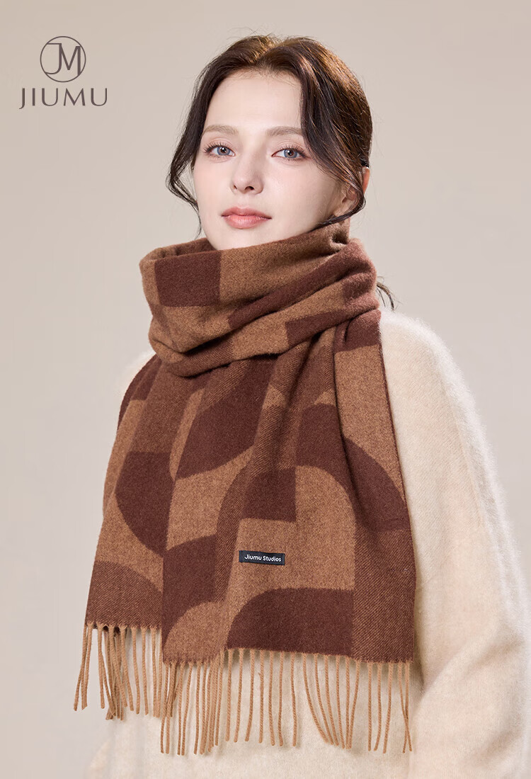 JIUMU pure wool scarf women's autumn and winter shawl women's warm scarf birthday Christmas gift for girls gift box