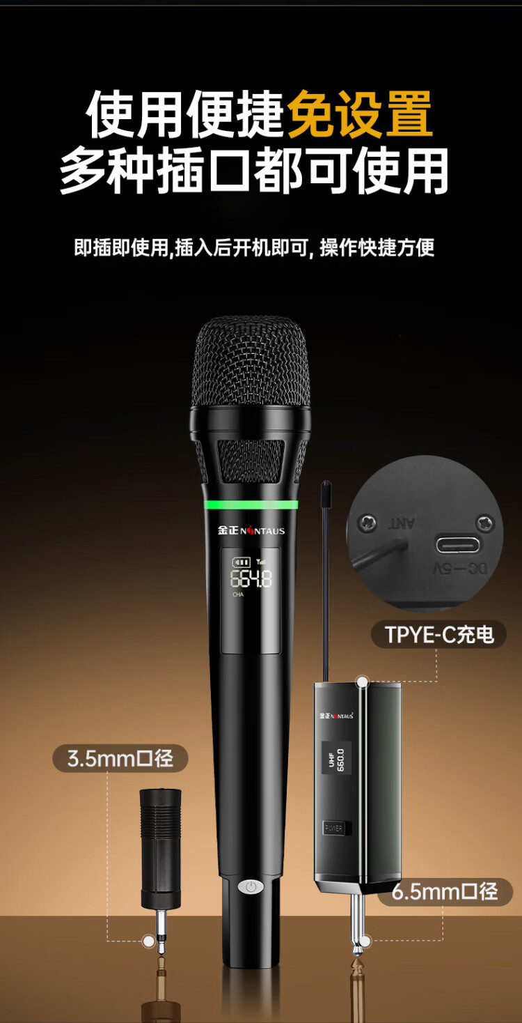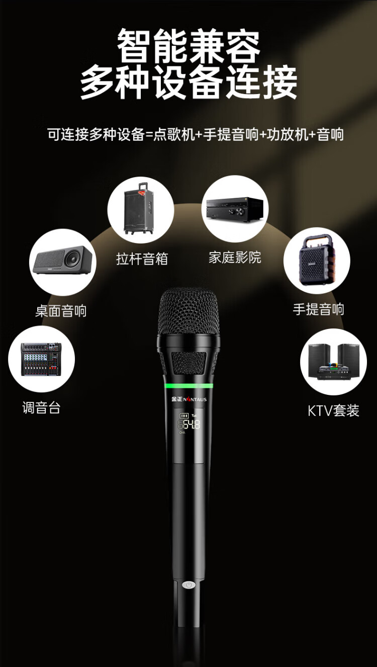 Jinzheng wireless microphone one-to-two microphone karaoke home handheld microphone universal rechargeable wireless microphone karaoke professional singing audio speaker dedicated single microphone OK-16S