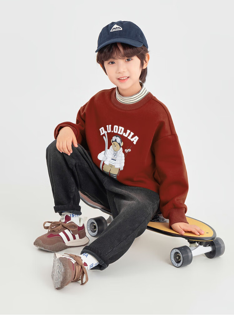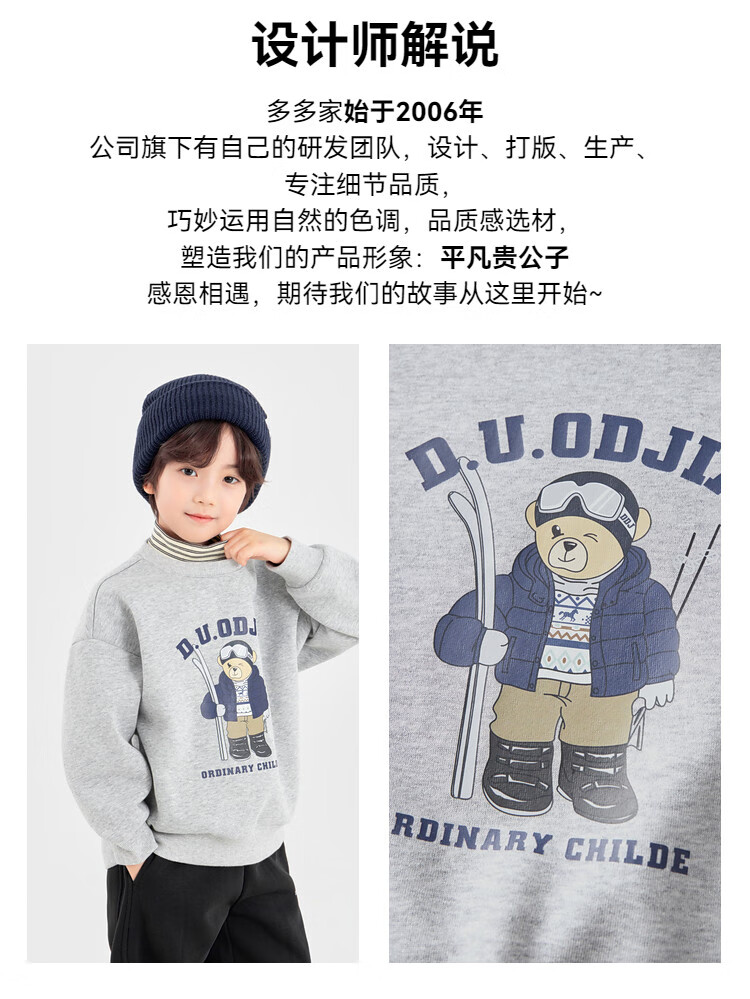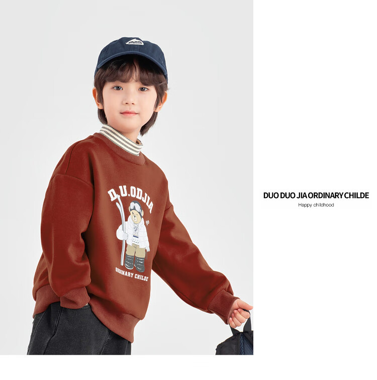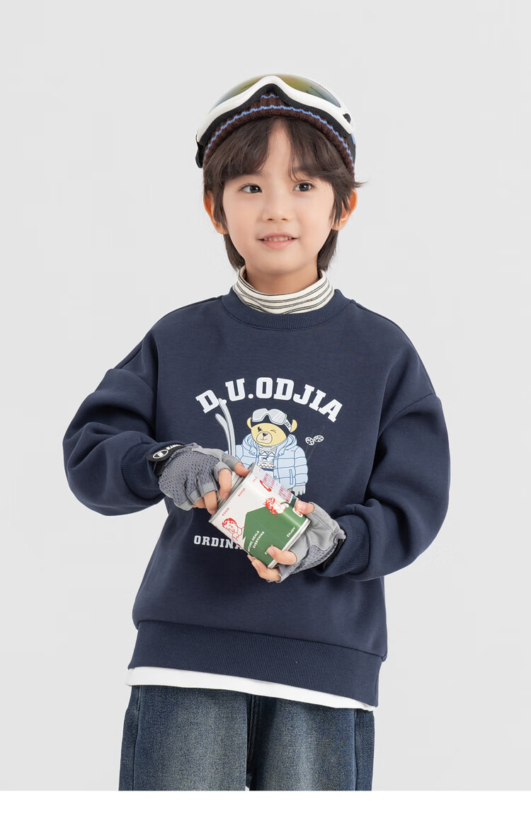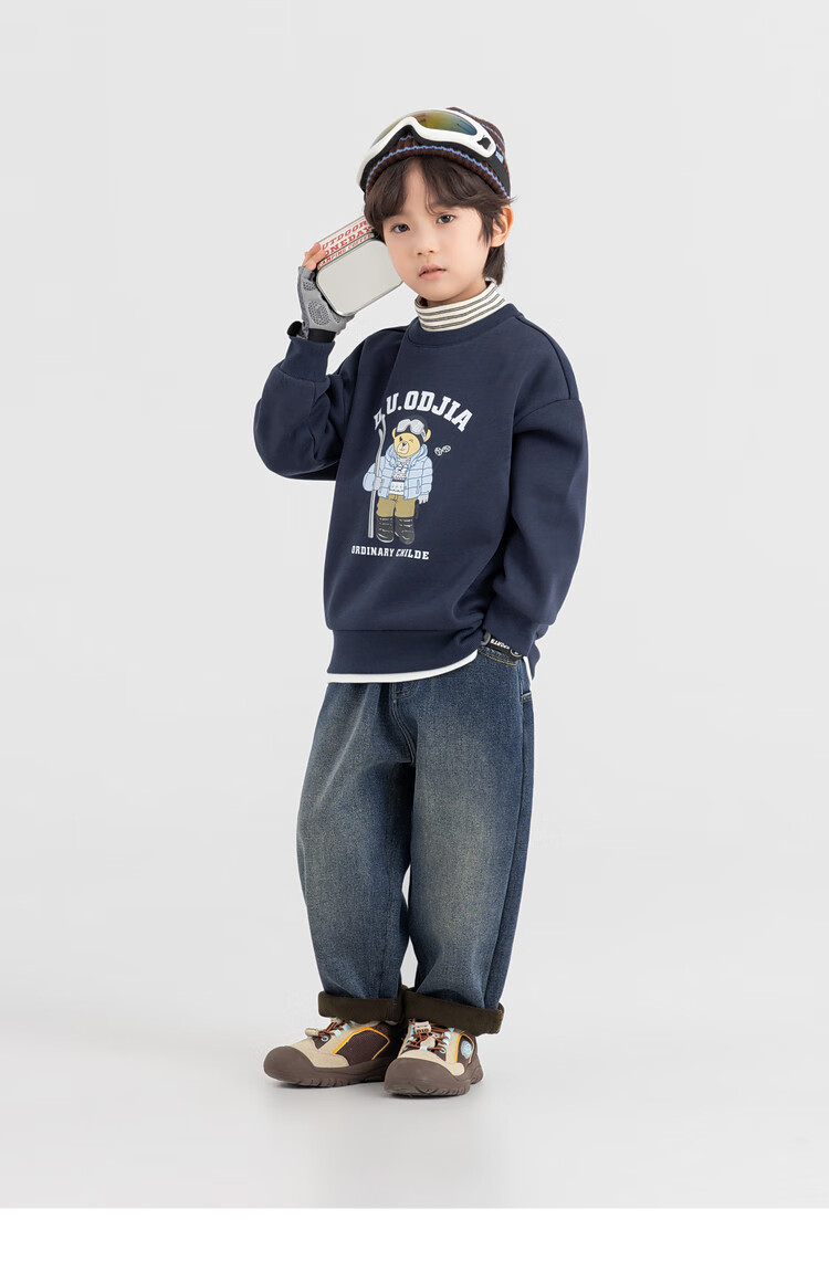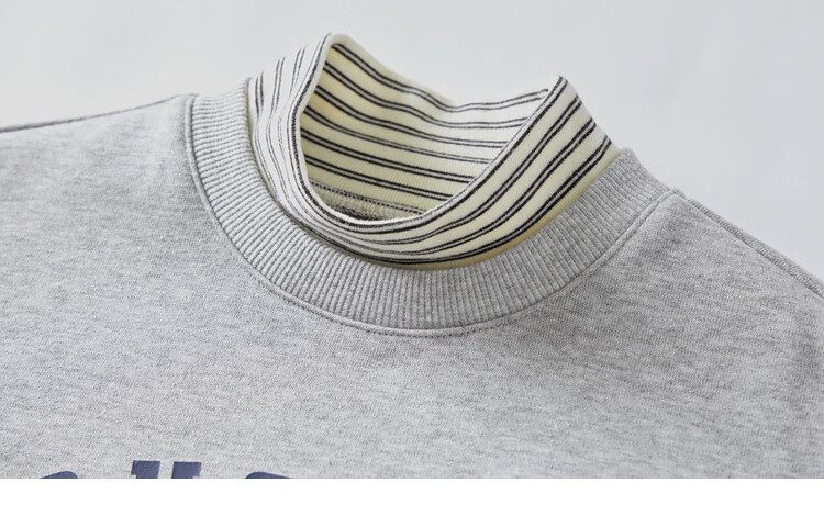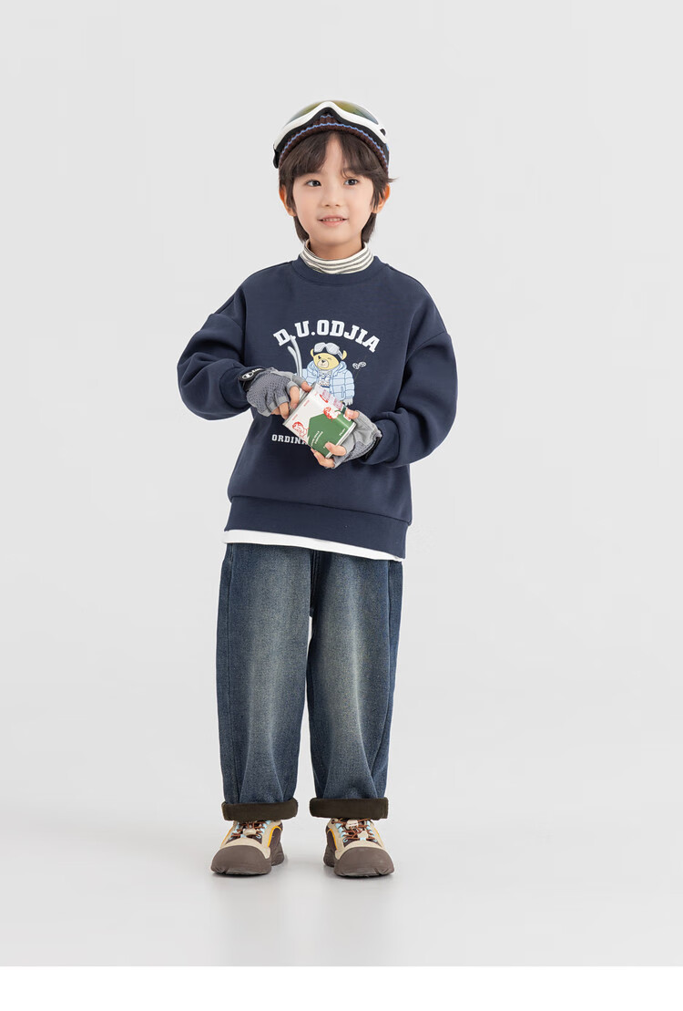 Duojia Ski Bear Boys' Fleece Sweater Winter Windproof Half Turtle Collar Casual Top Children's Fashion Fake Two Pieces