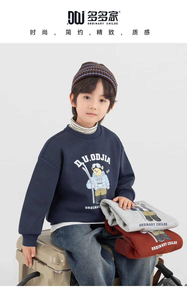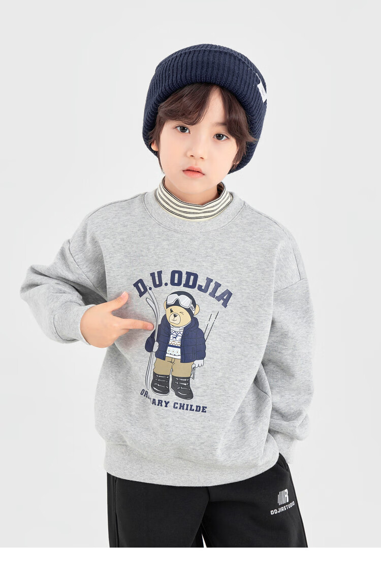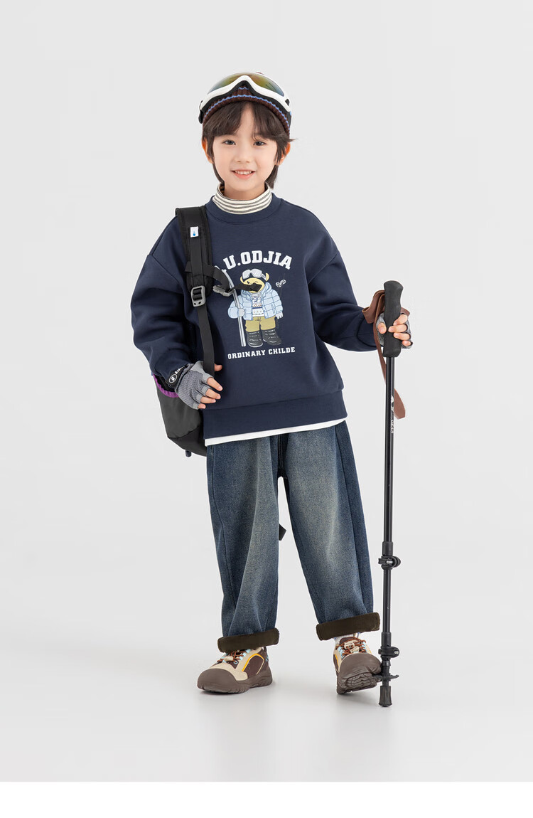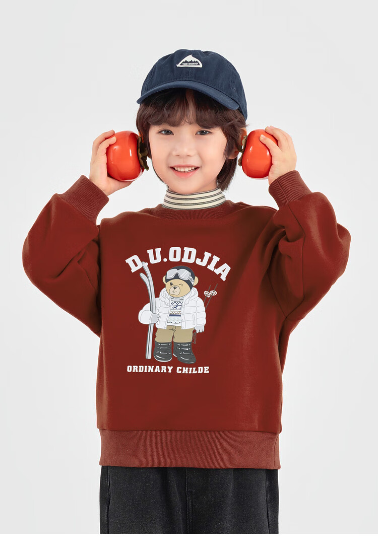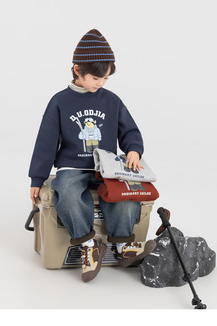 Duojia Ski Bear Boys' Fleece Sweater Winter Windproof Half Turtle Collar Casual Top Children's Fashion Fake Two Pieces