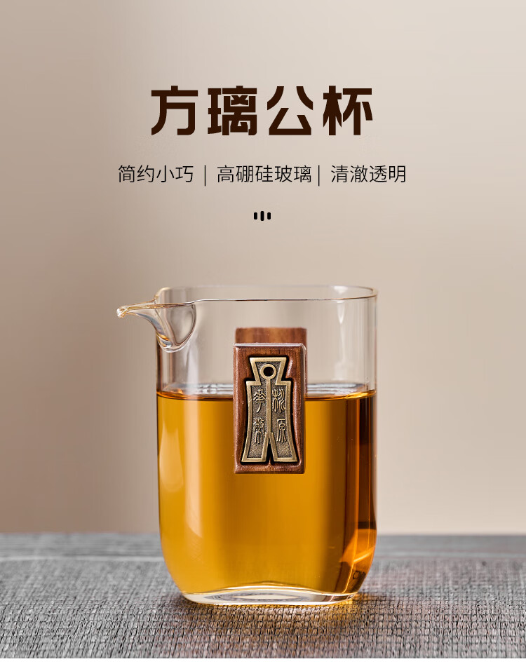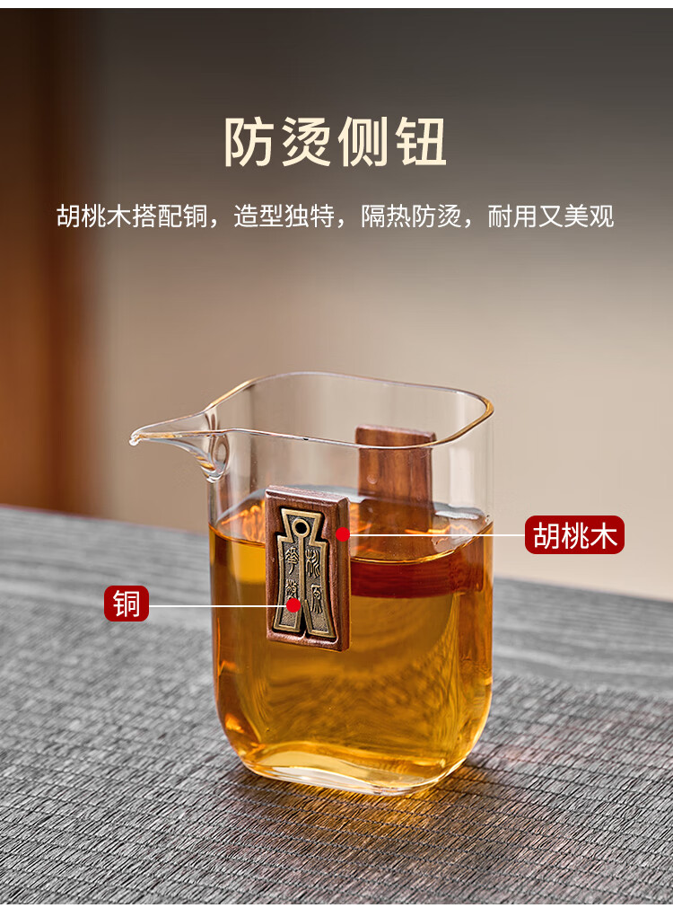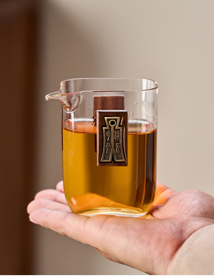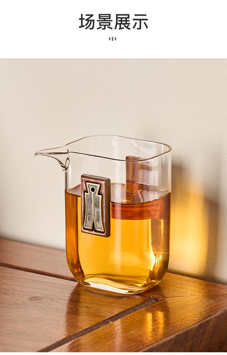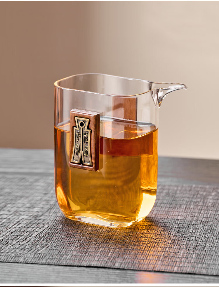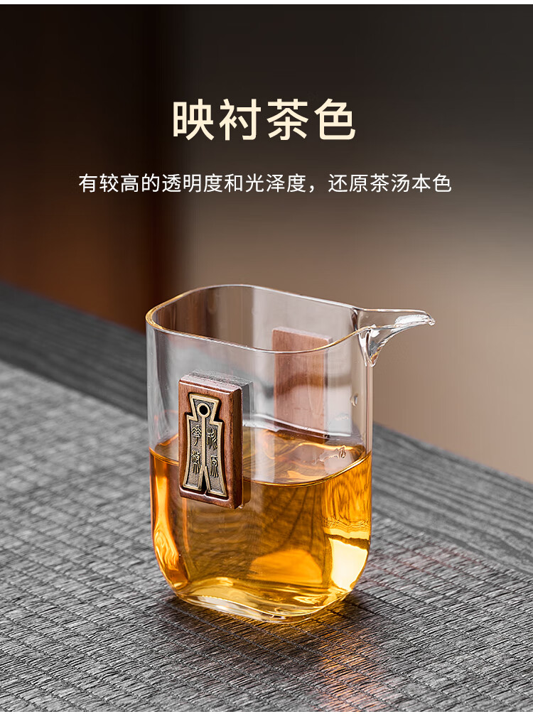 Gold-inlaid jade glass fair cup, household tea-making tea dispenser, tea set accessories, high temperature resistance, thickened tea sea, square glass