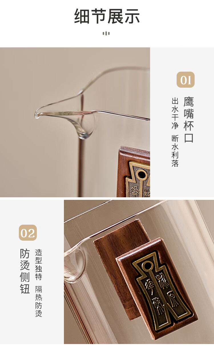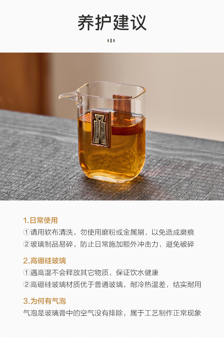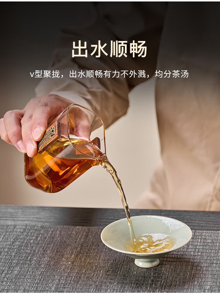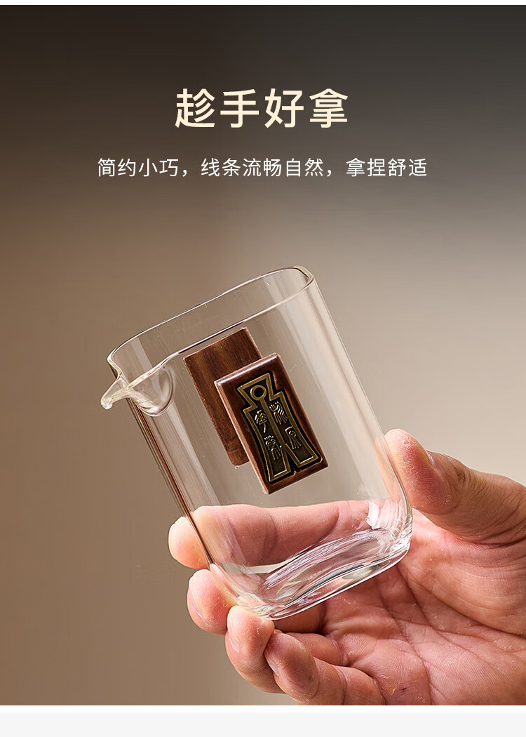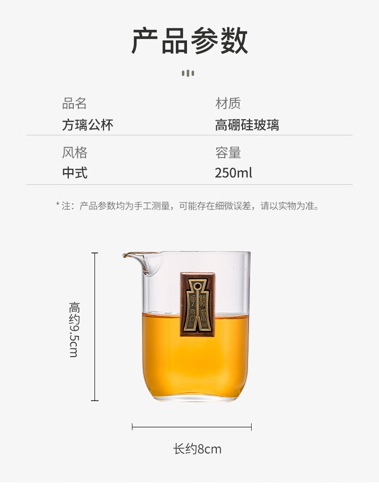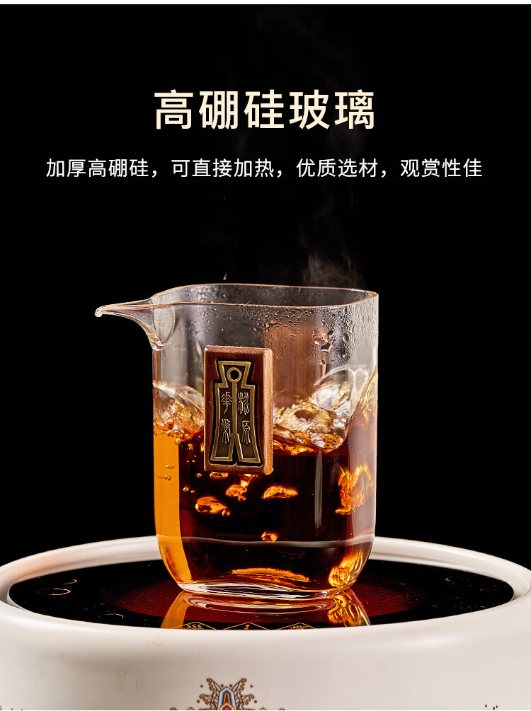 Gold-inlaid jade glass fair cup, household tea-making tea dispenser, tea set accessories, high temperature resistance, thickened tea sea, square glass