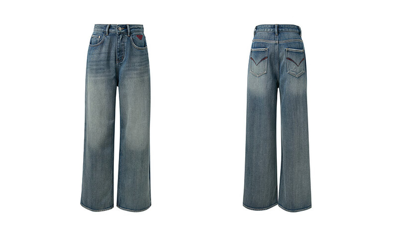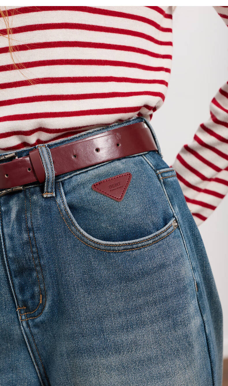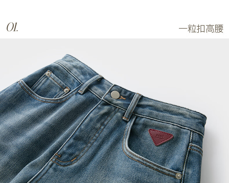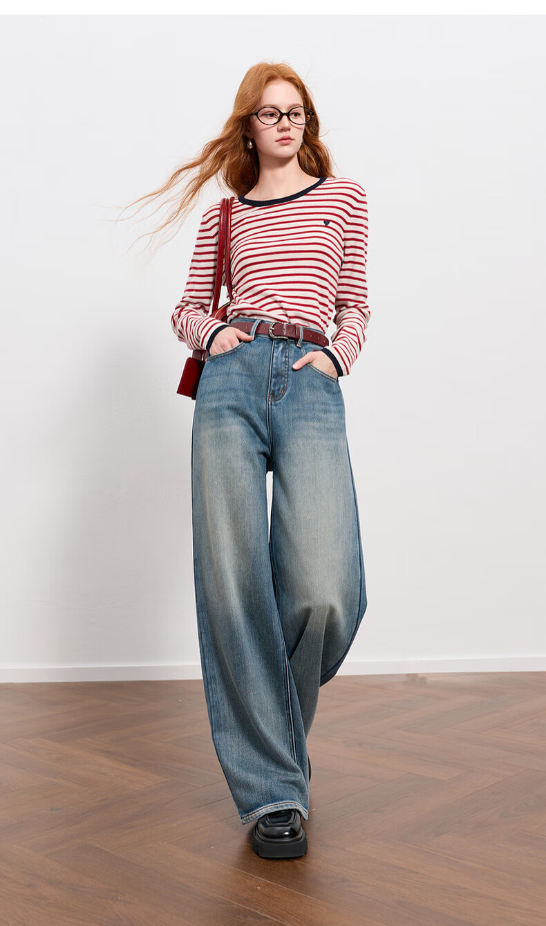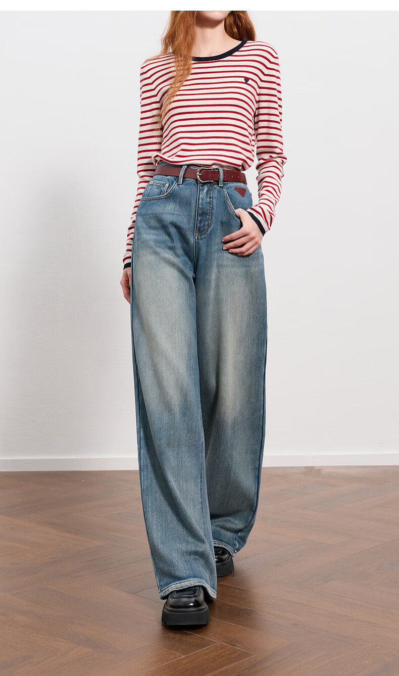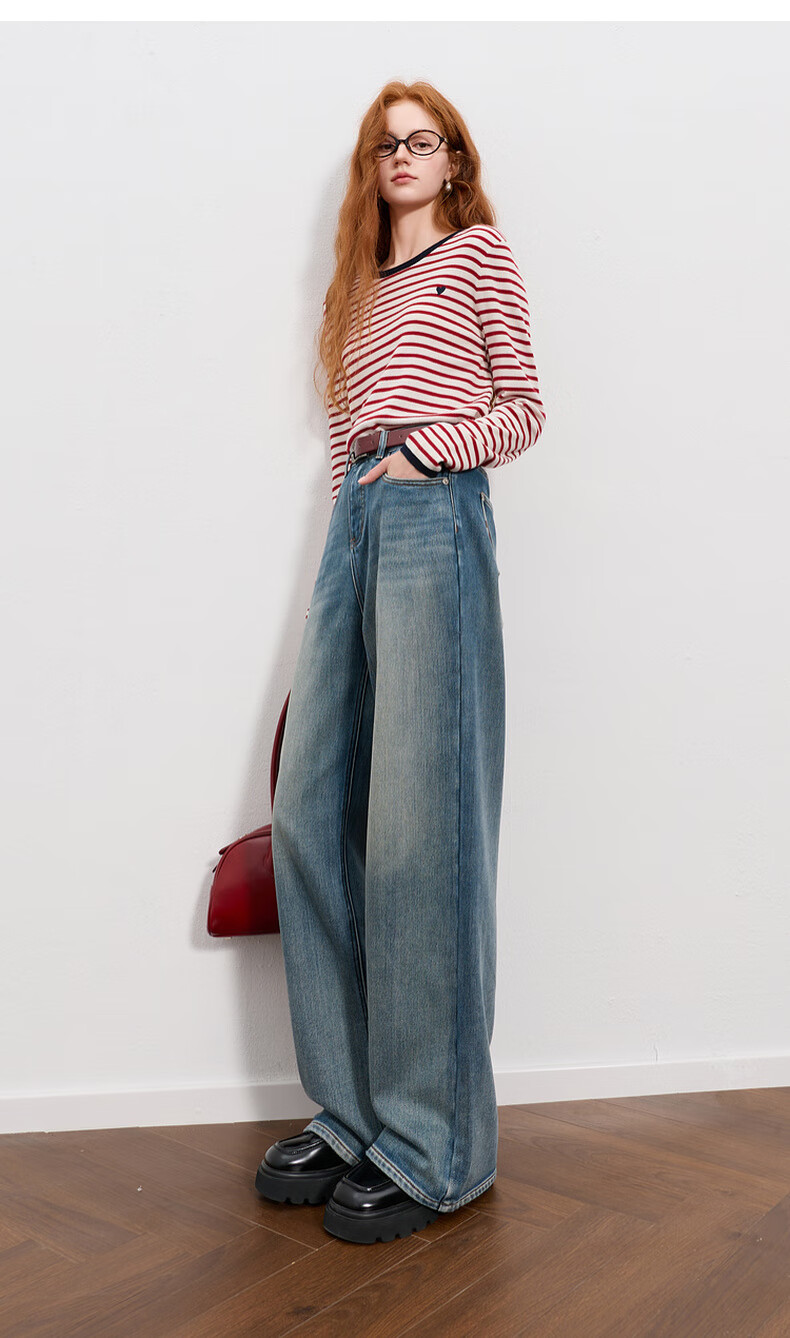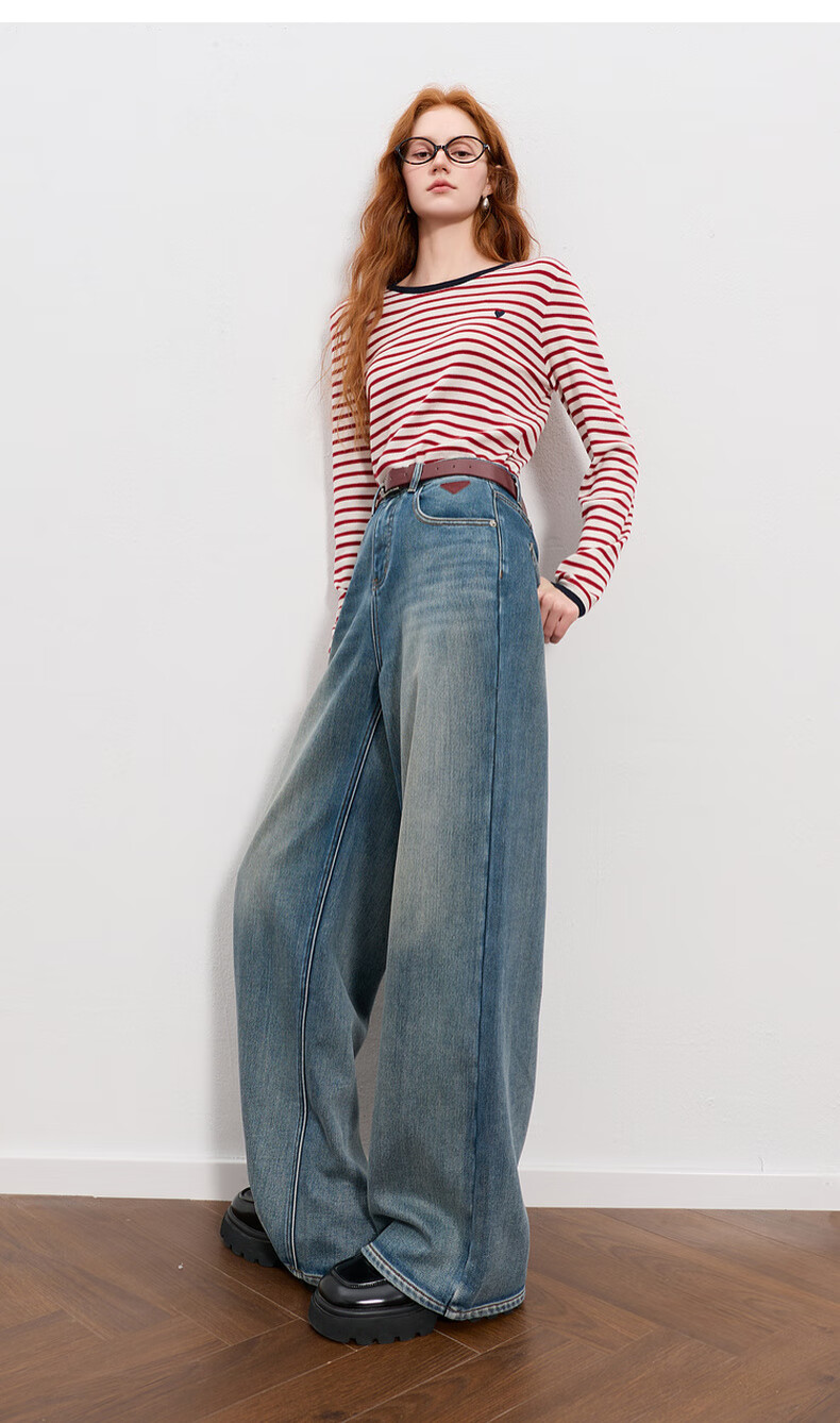 Sancai 2025 winter new one-piece velvet brushed jeans high-waisted wide-leg pants loose M