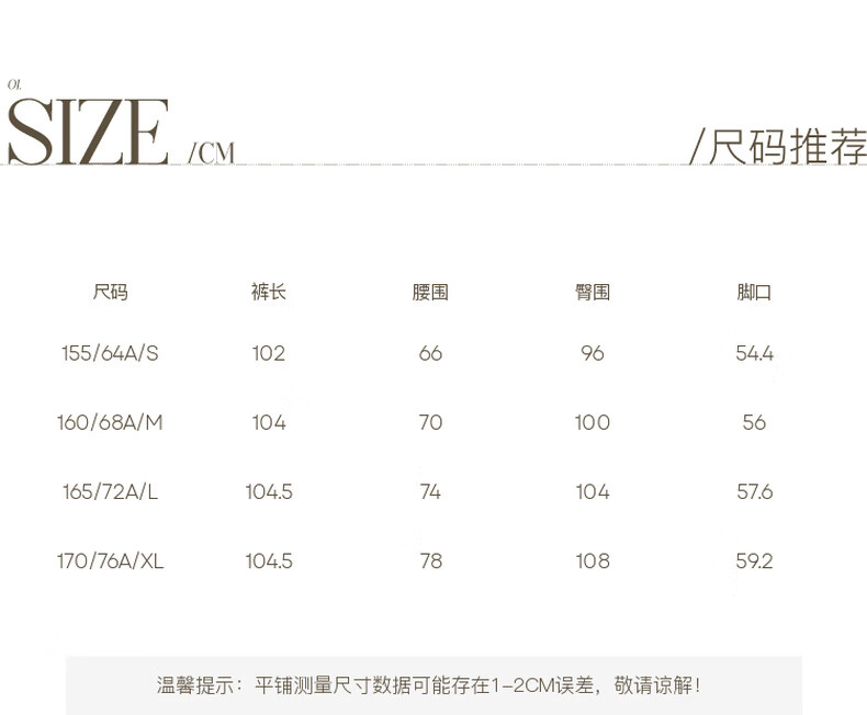 Outseam (cm) 99 cm 101.5 cm 104 cm 106.5 cm 109 cm