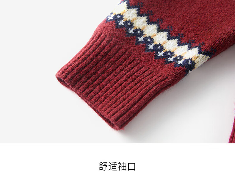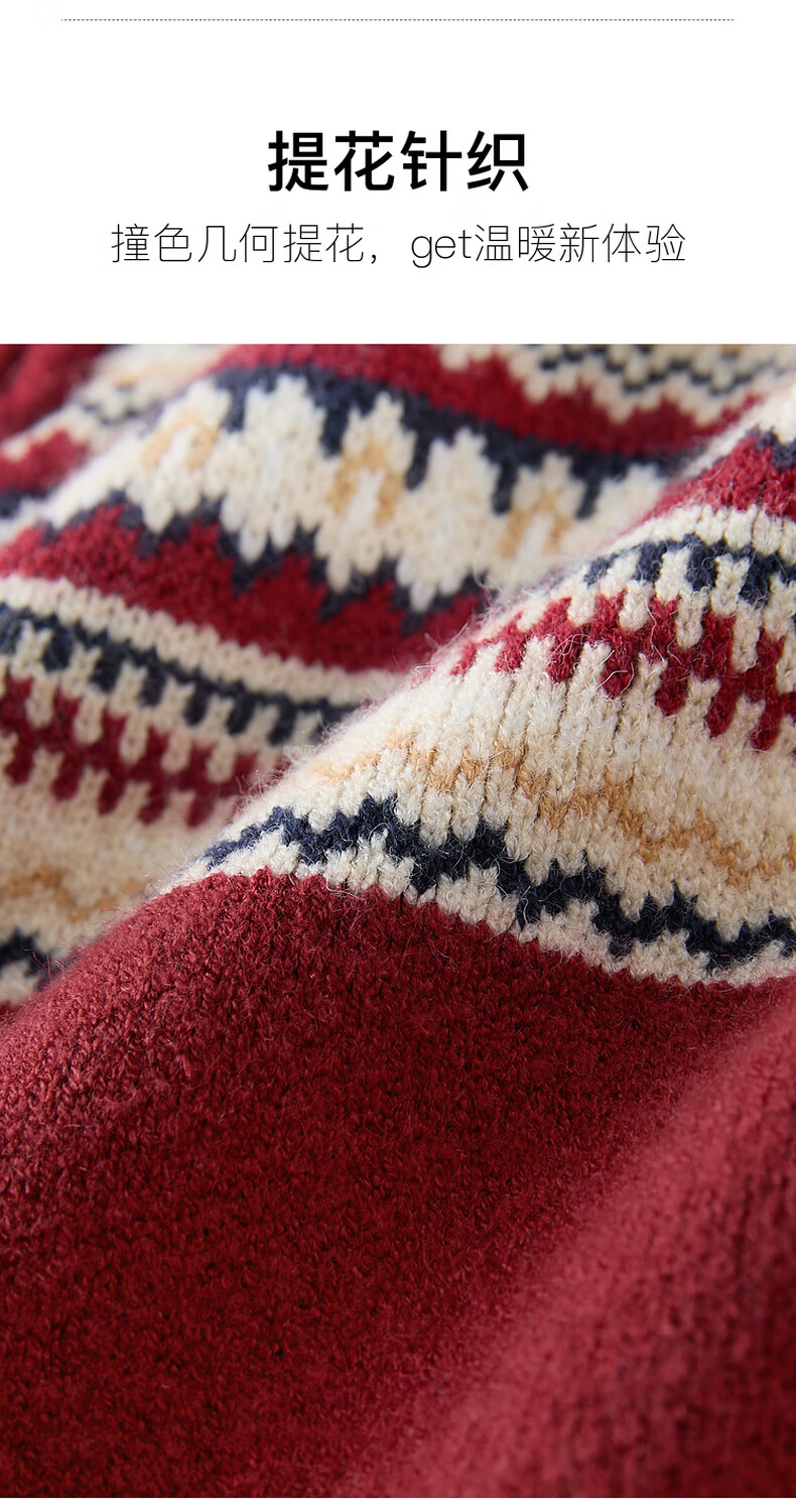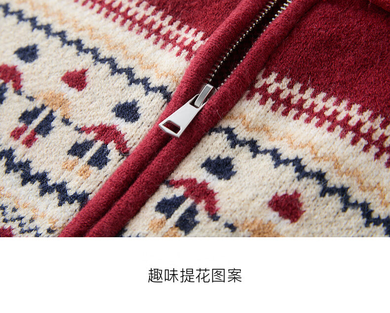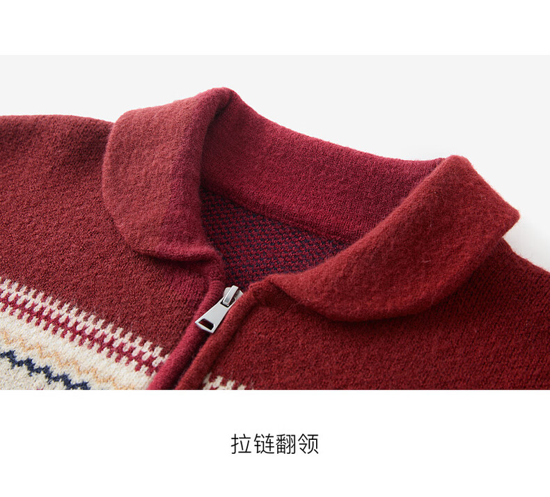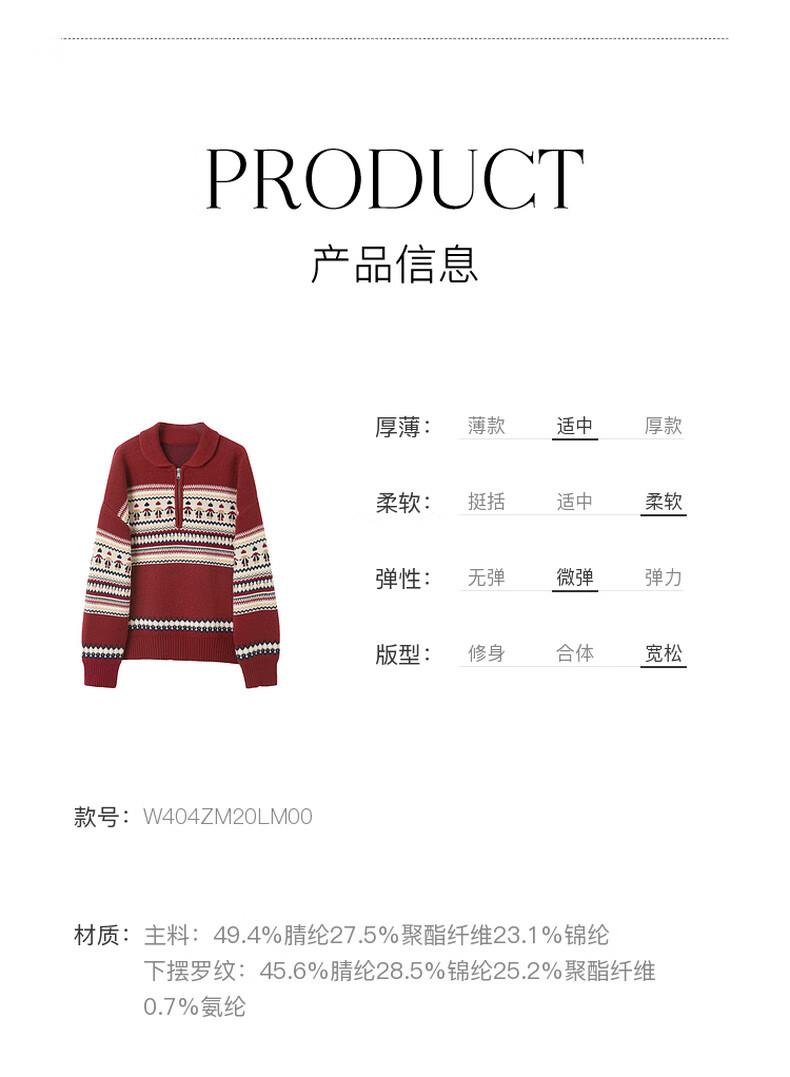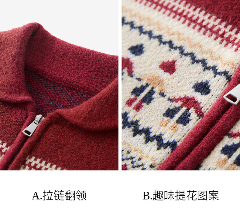 Sancai 2025 winter new red zipper lapel atmospheric jacquard sweater loose shoulder sleeves M