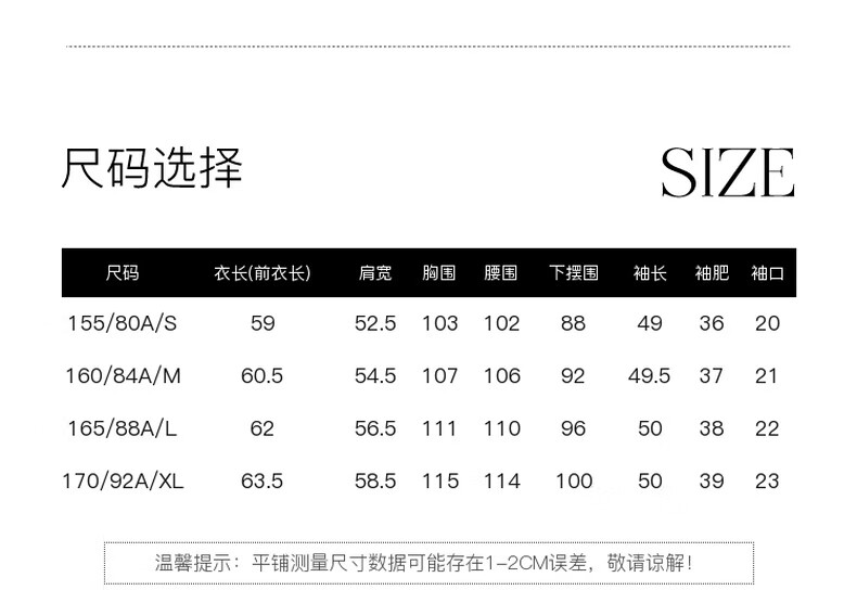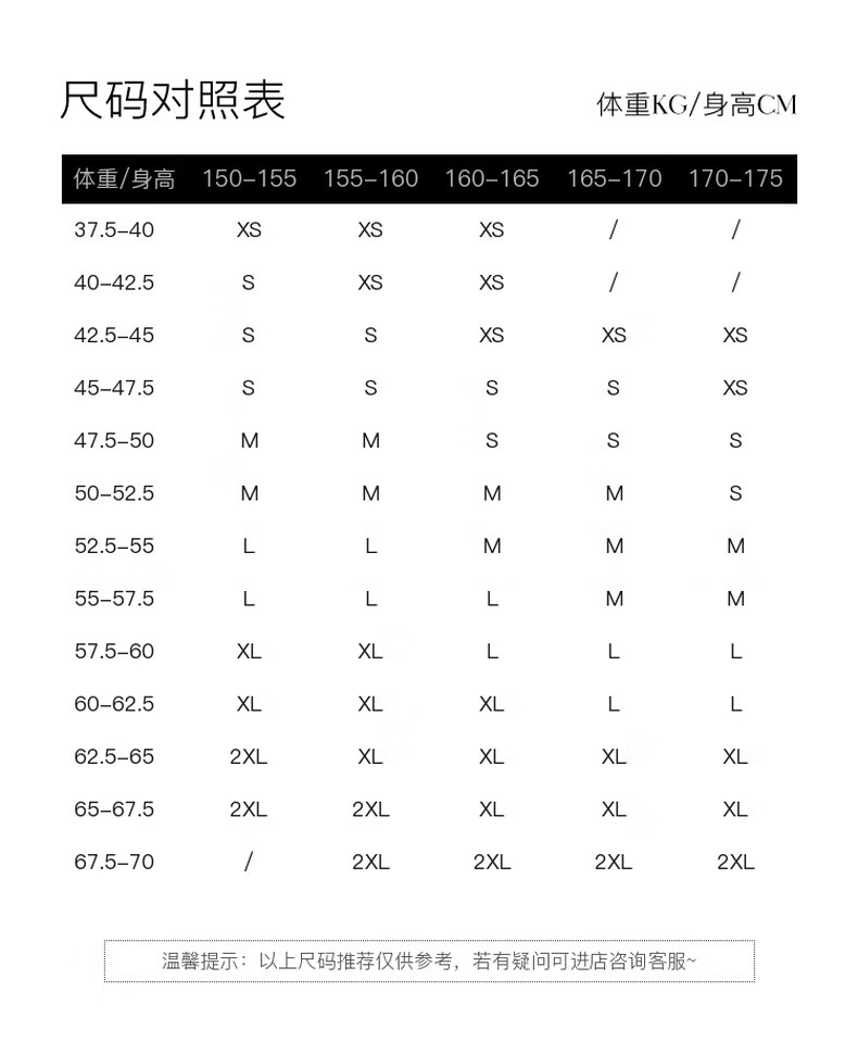 China (cm) 160-165/84-86 165-170 / 88-90 167-172 / 92-96 168-173 / 98-102 170-176 / 106-110