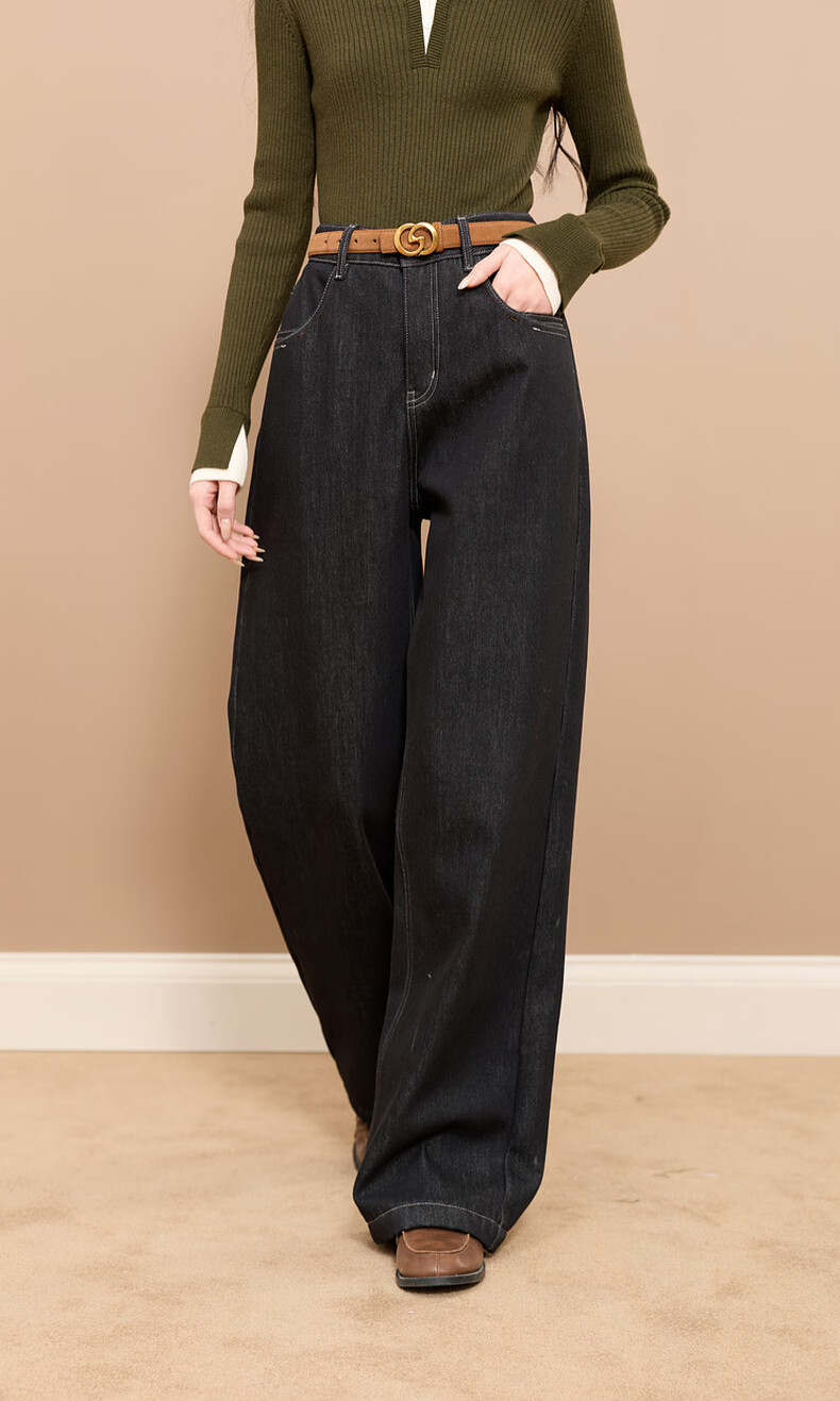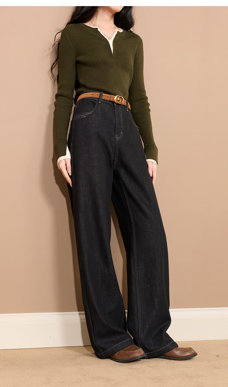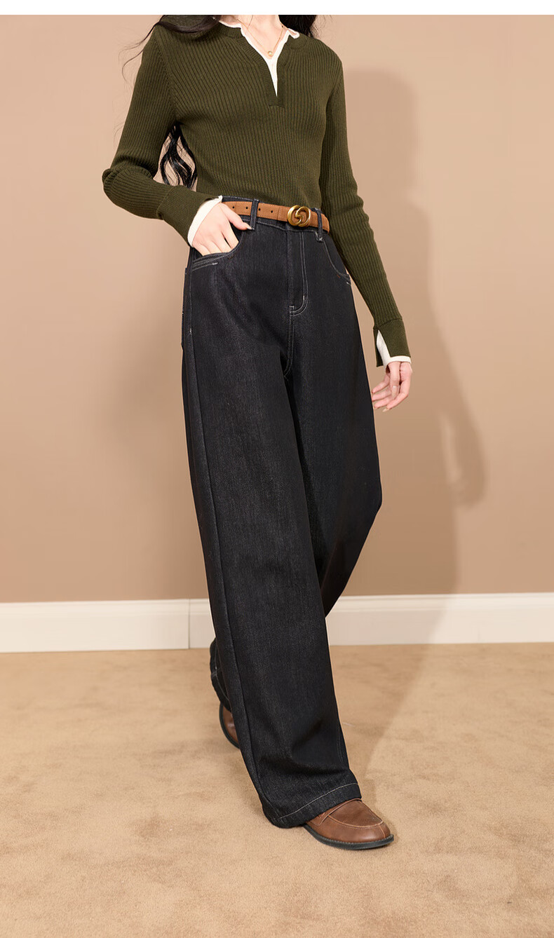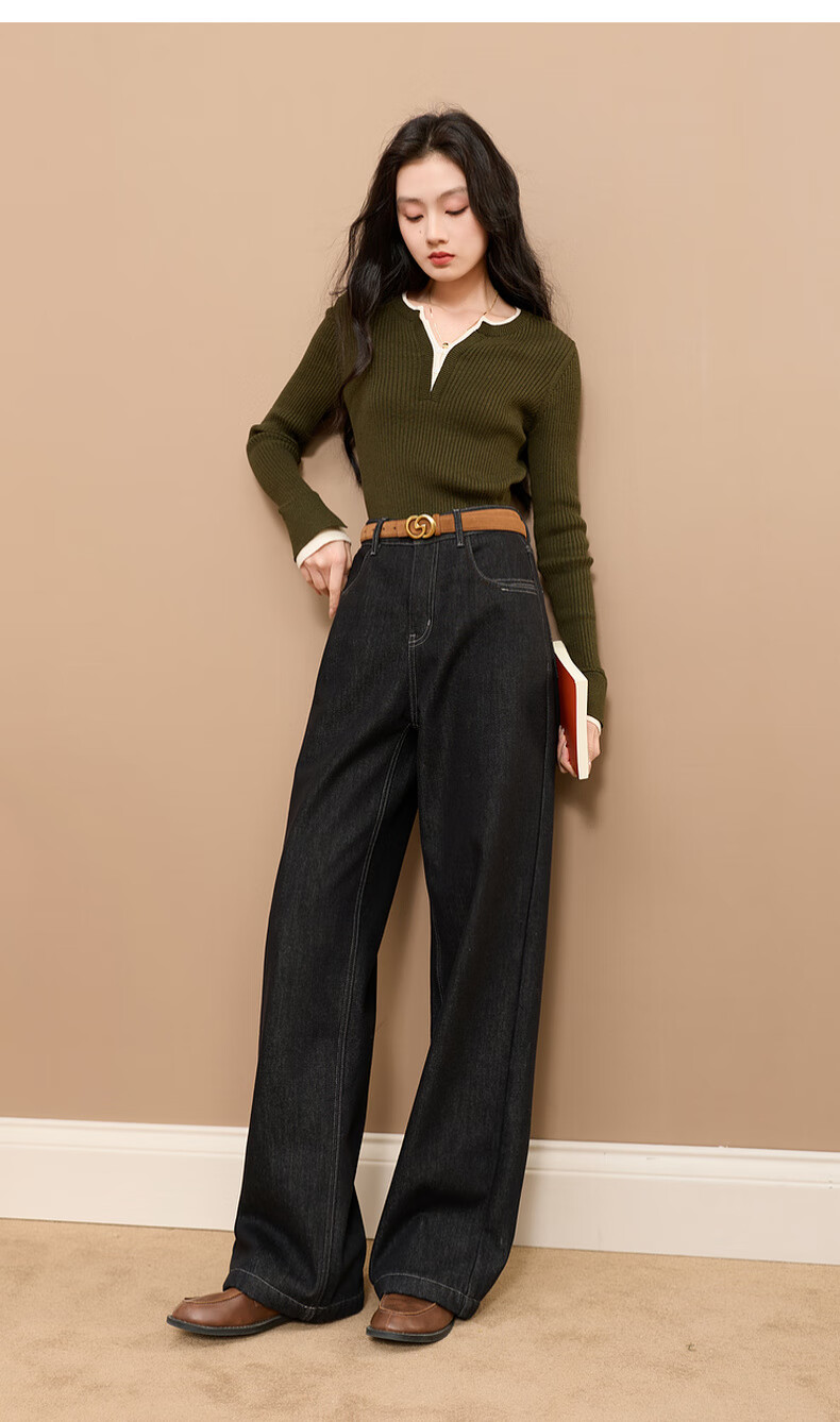 Sancai 2025 new winter casual jeans Ollie velvet straight pants loose trousers S