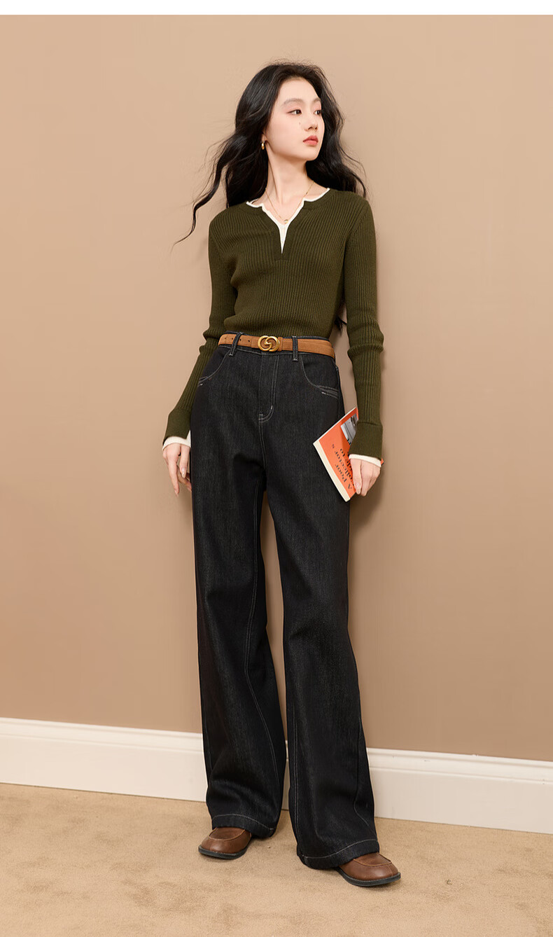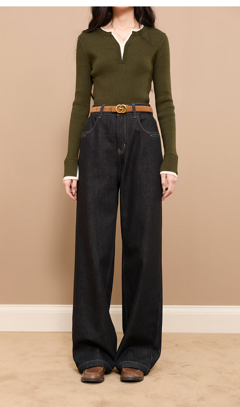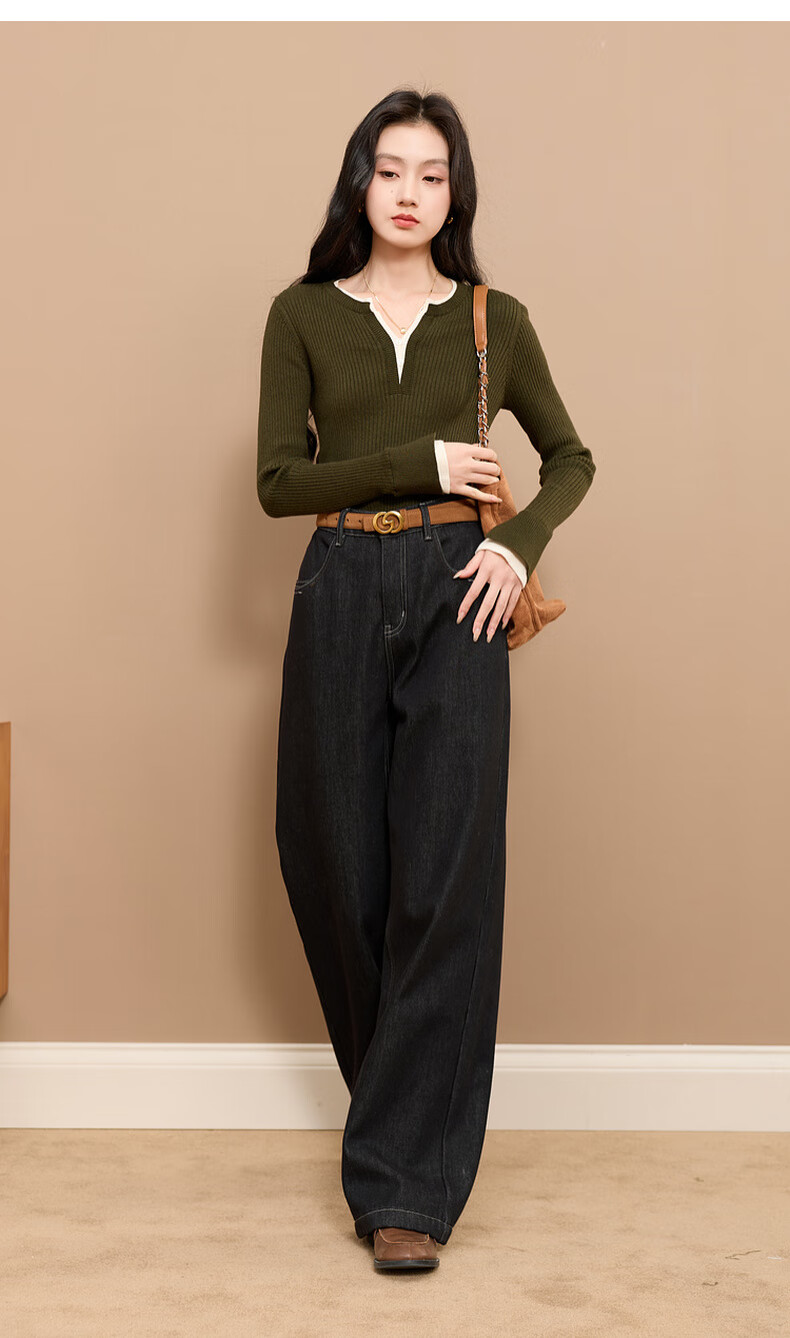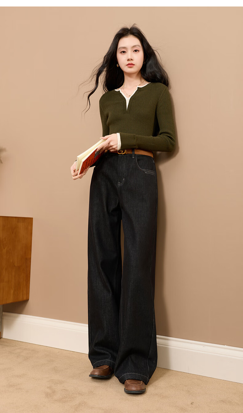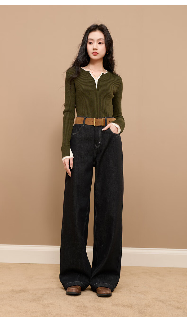 Sancai 2025 new winter casual jeans Ollie velvet straight pants loose trousers S