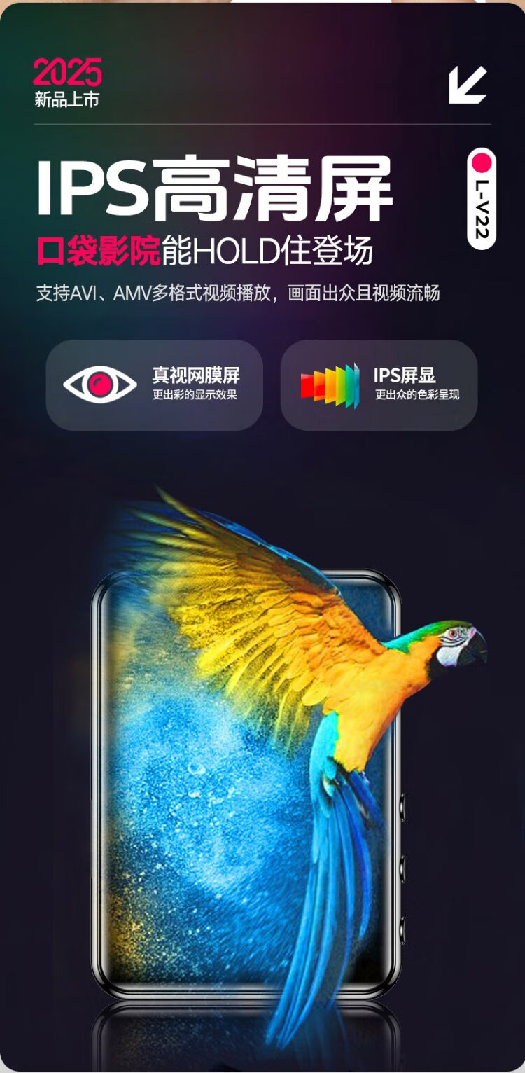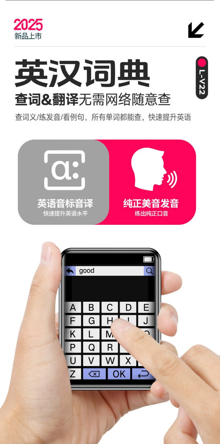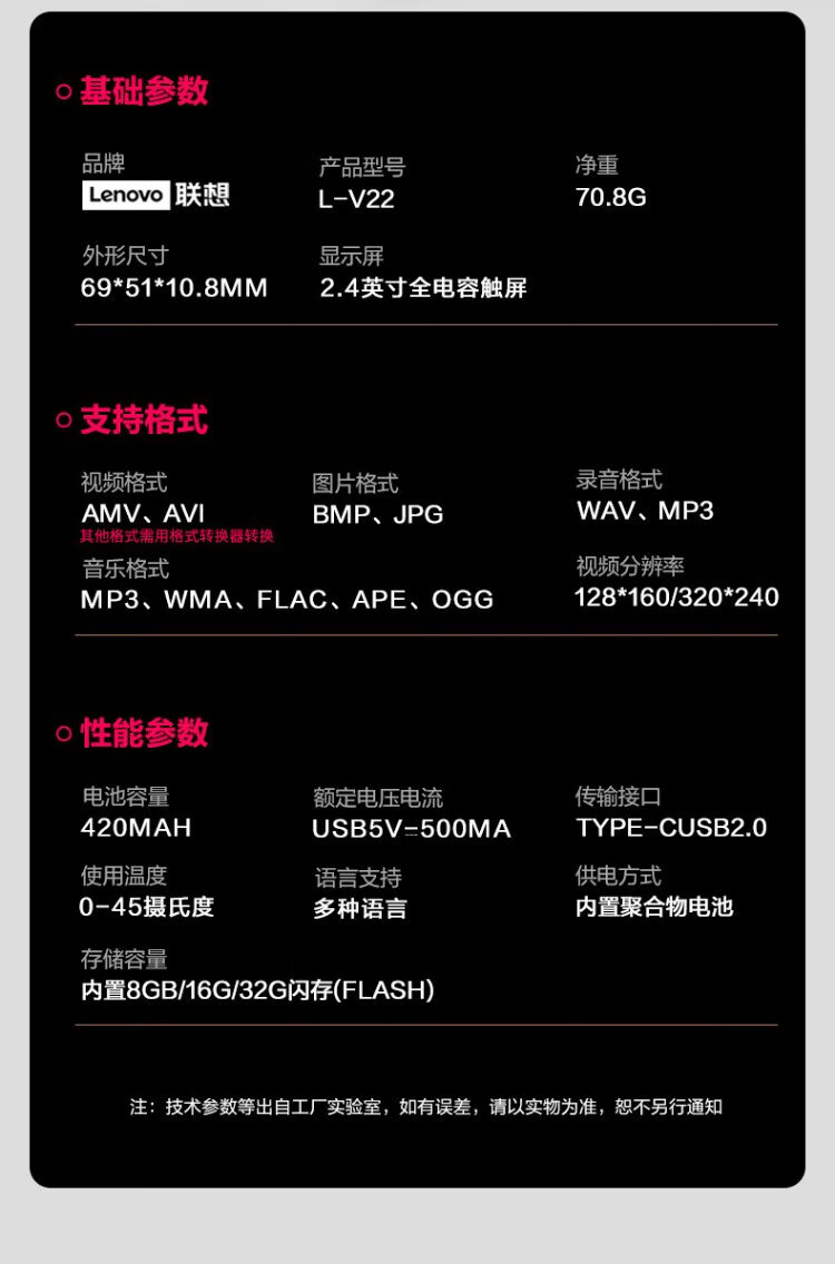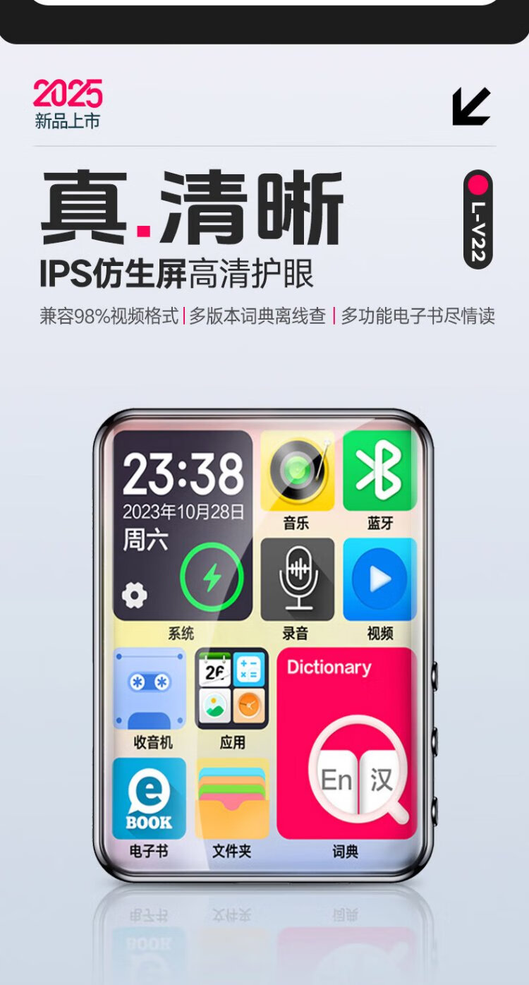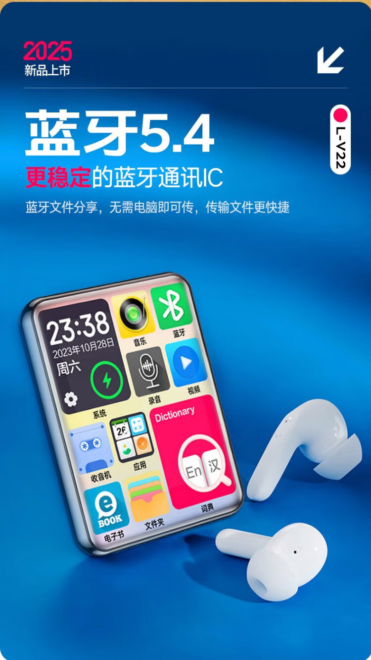 Lenovo V22 64G MP4/MP3 player Bluetooth lossless music walkman student dictionary e-book recording pen 2.4-inch touch screen