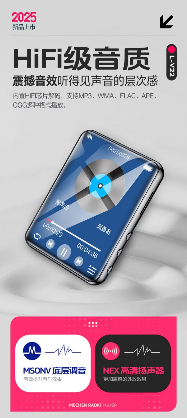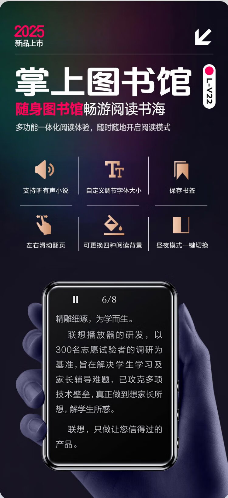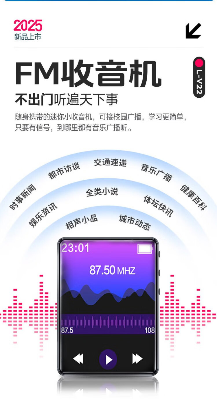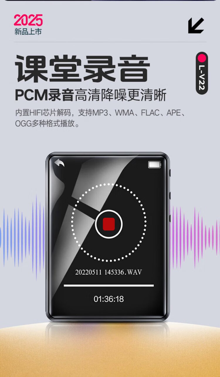 Lenovo V22 64G MP4/MP3 player Bluetooth lossless music walkman student dictionary e-book recording pen 2.4-inch touch screen