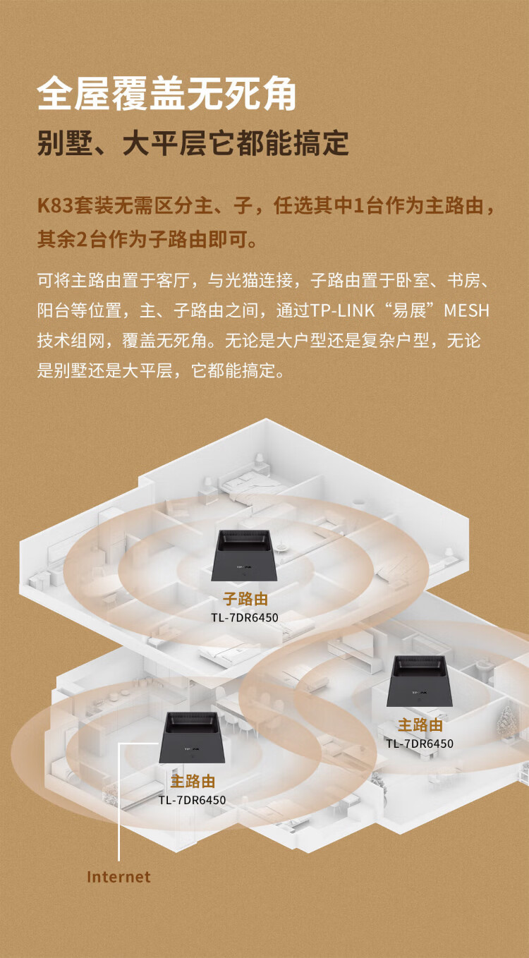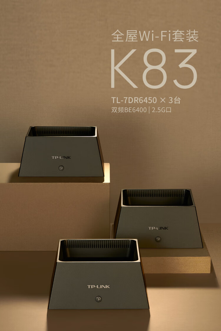 Pulian (TP-LINK) whole house router BE6400 5G WiFi7 sub-master router distributed three-pack K83 Gigabit wireless dual-band 2.5G network port large apartment easy to expand plug and play