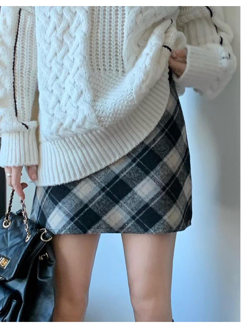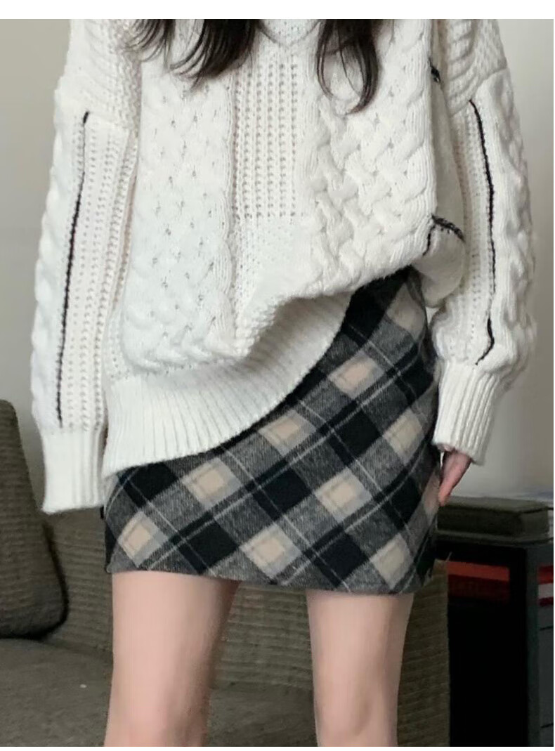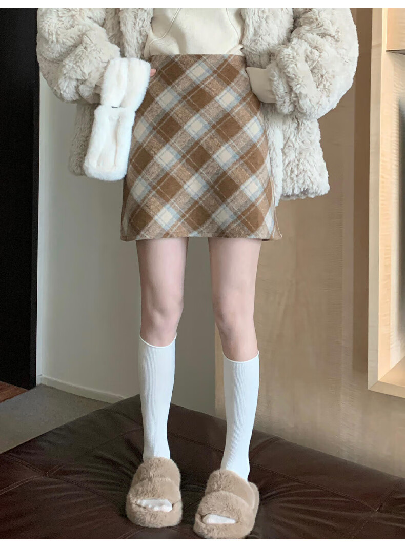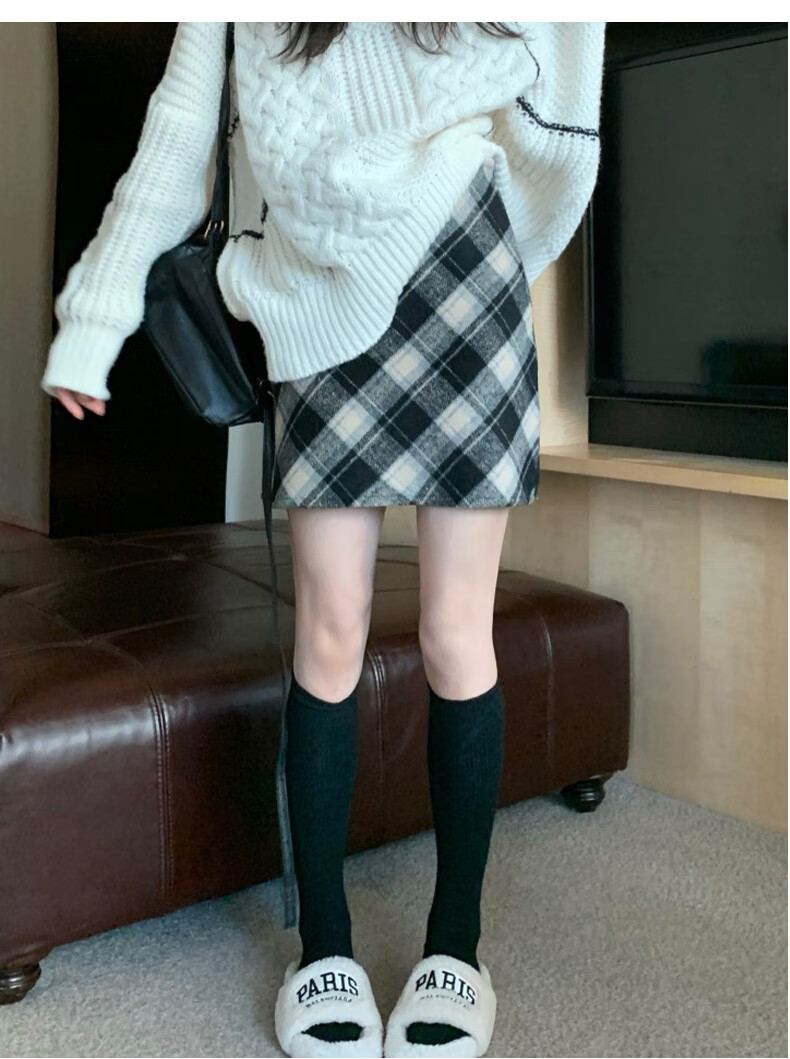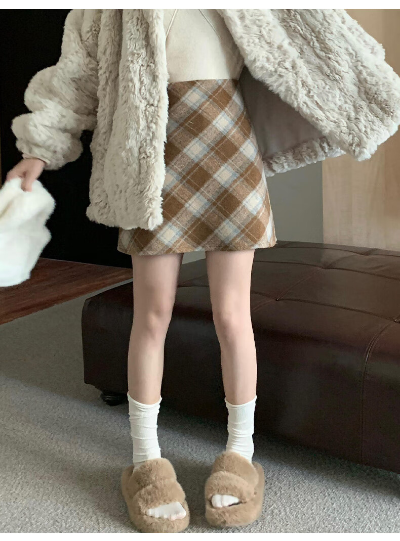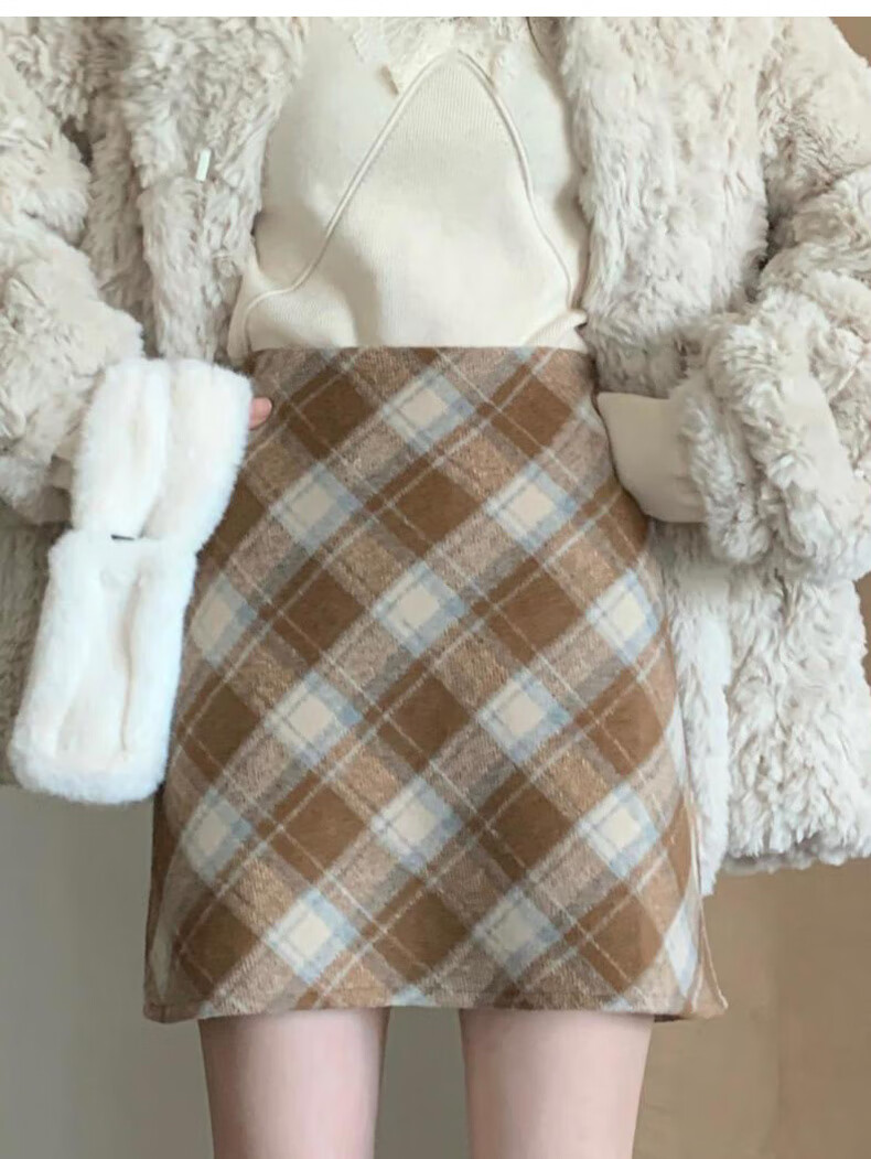 Langsha Woolen Plaid Skirt Women's Winter 2025 New Slim High Waist A-Line Hip Skirt Small Skirt