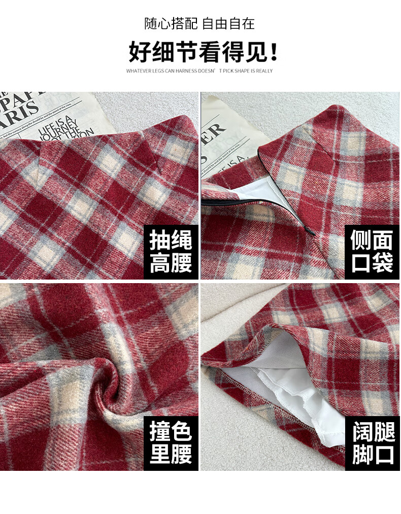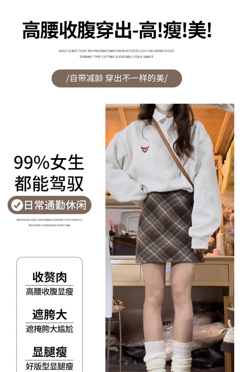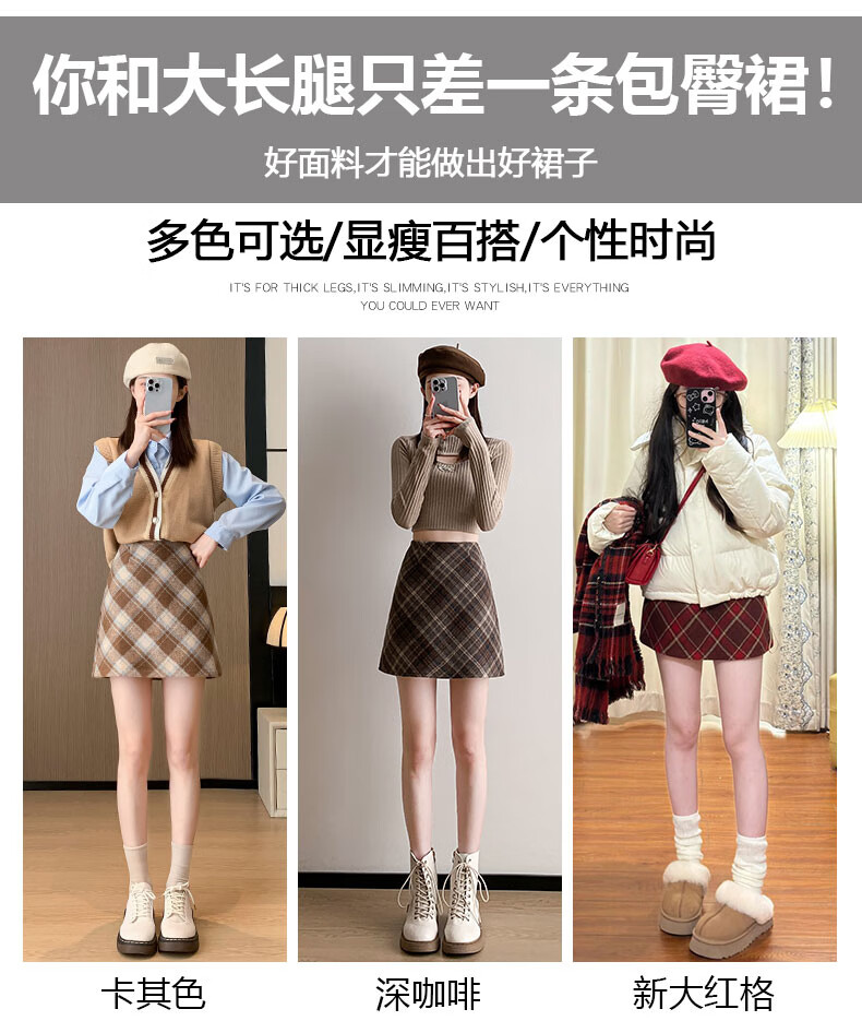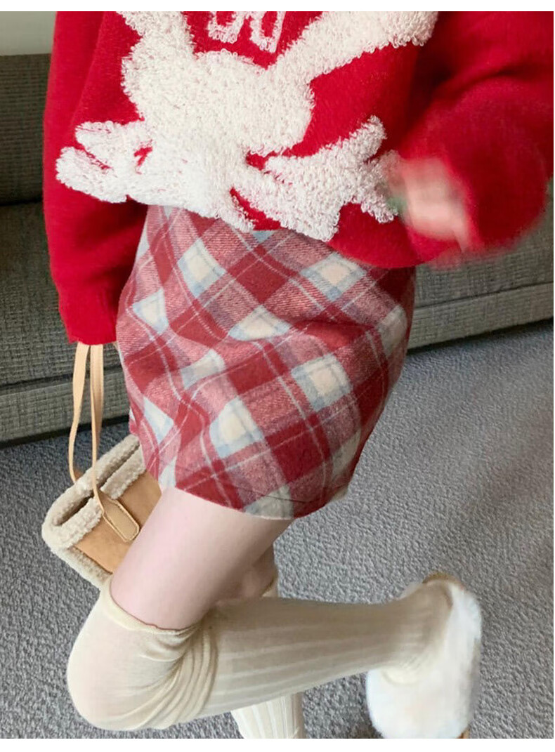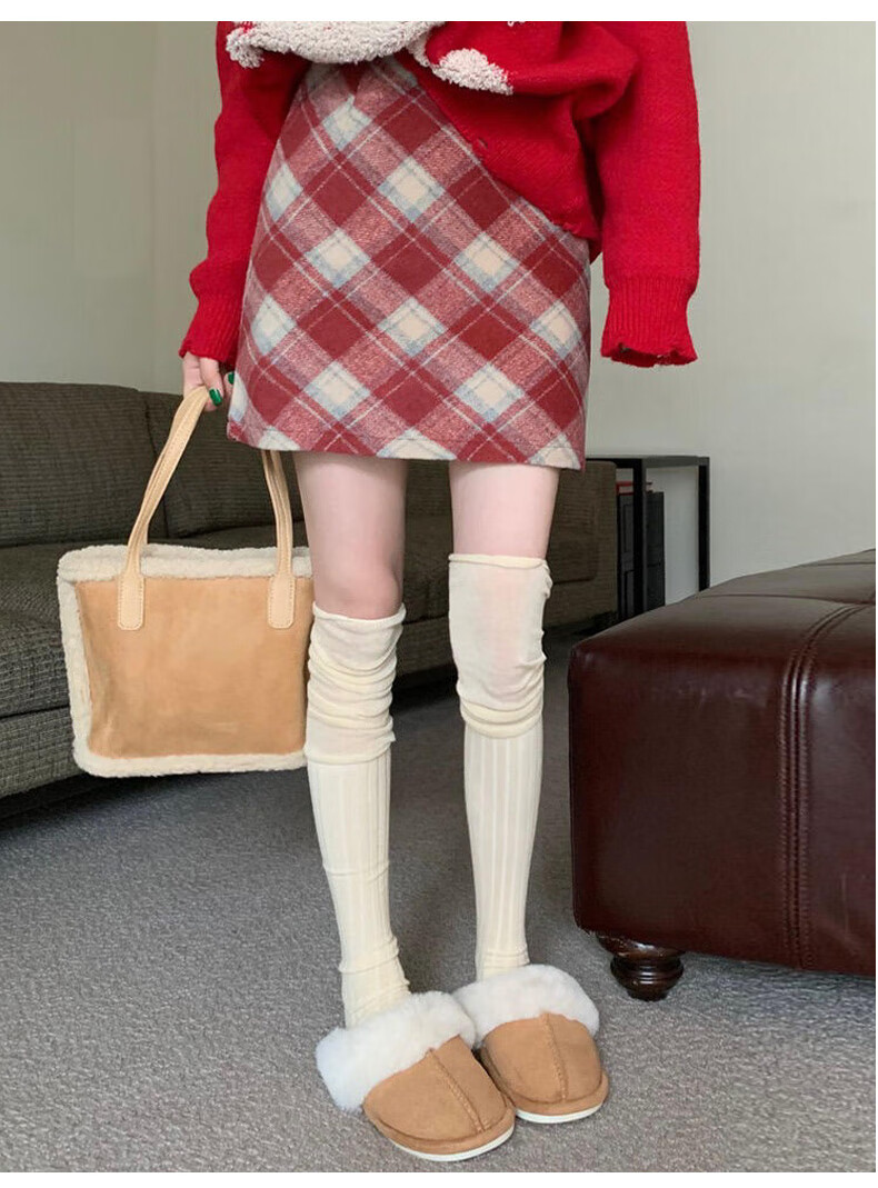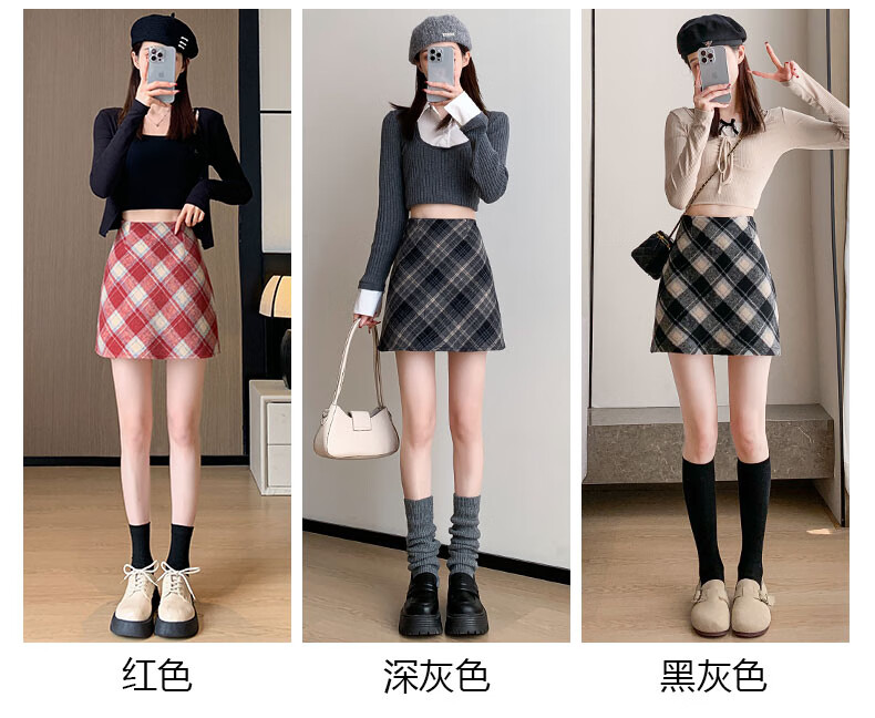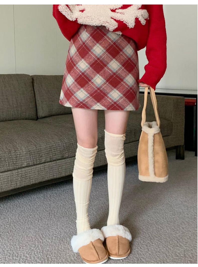 Langsha Woolen Plaid Skirt Women's Winter 2025 New Slim High Waist A-Line Hip Skirt Small Skirt