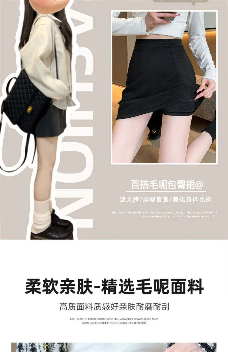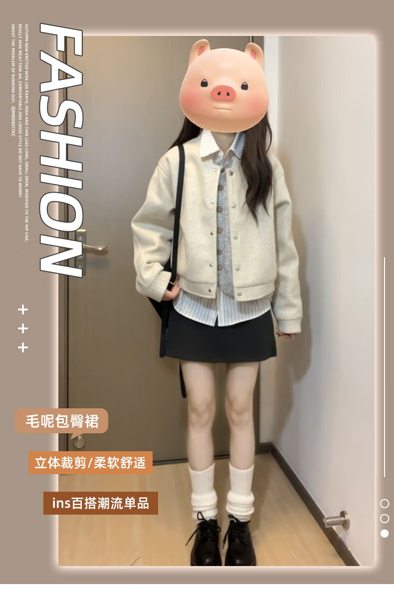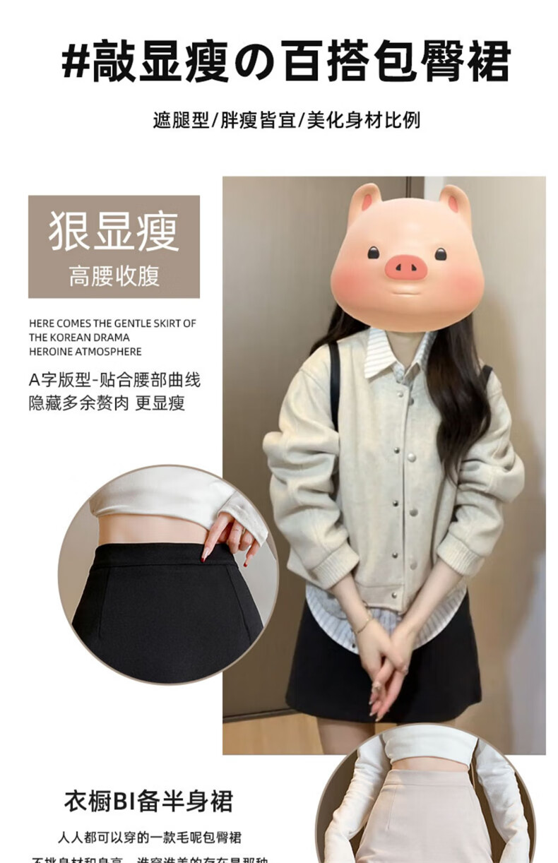 Langsha gray woolen short skirt women's skirt winter 2025 new high-waisted slimming A-line skirt tight hot girl hip skirt
