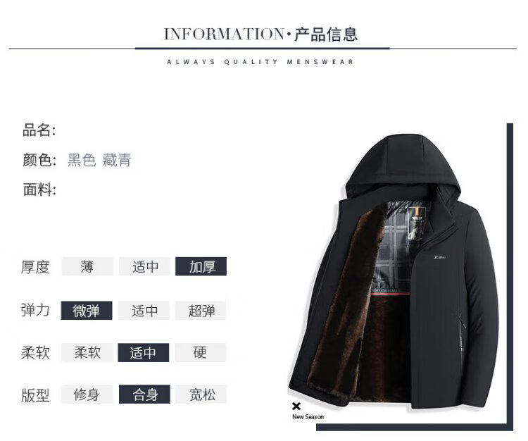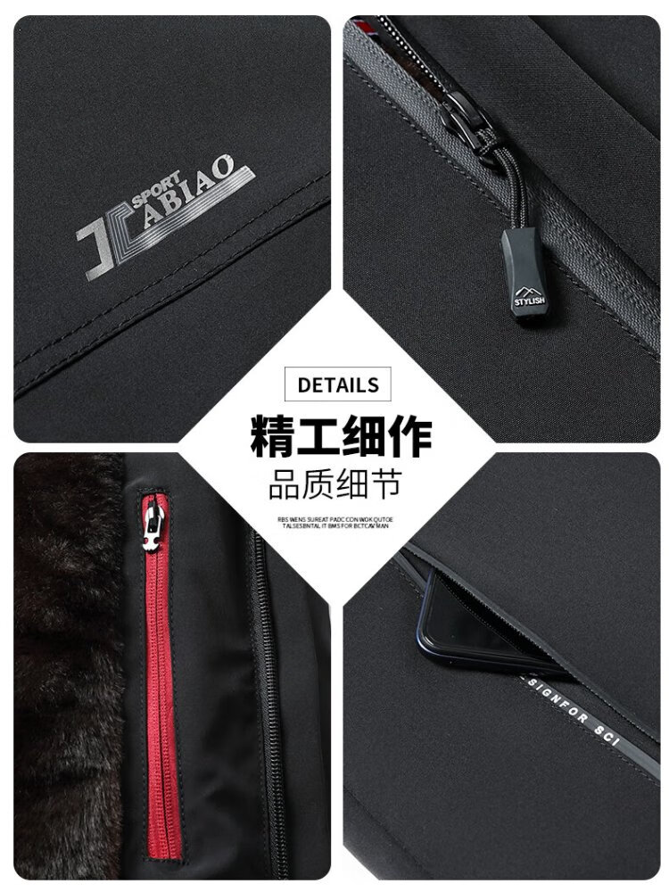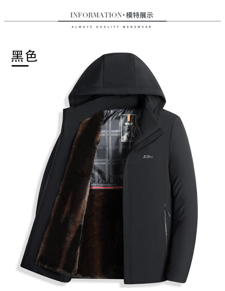 Woodpecker (TUCANO) winter men's velvet and thickened daddy cotton coats for middle-aged and elderly people, warm removable hooded jackets for men
