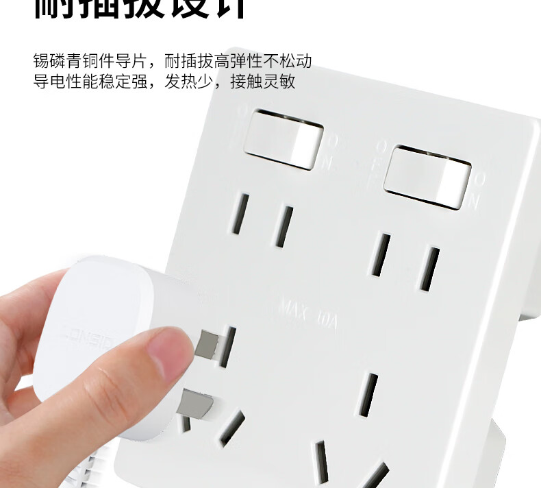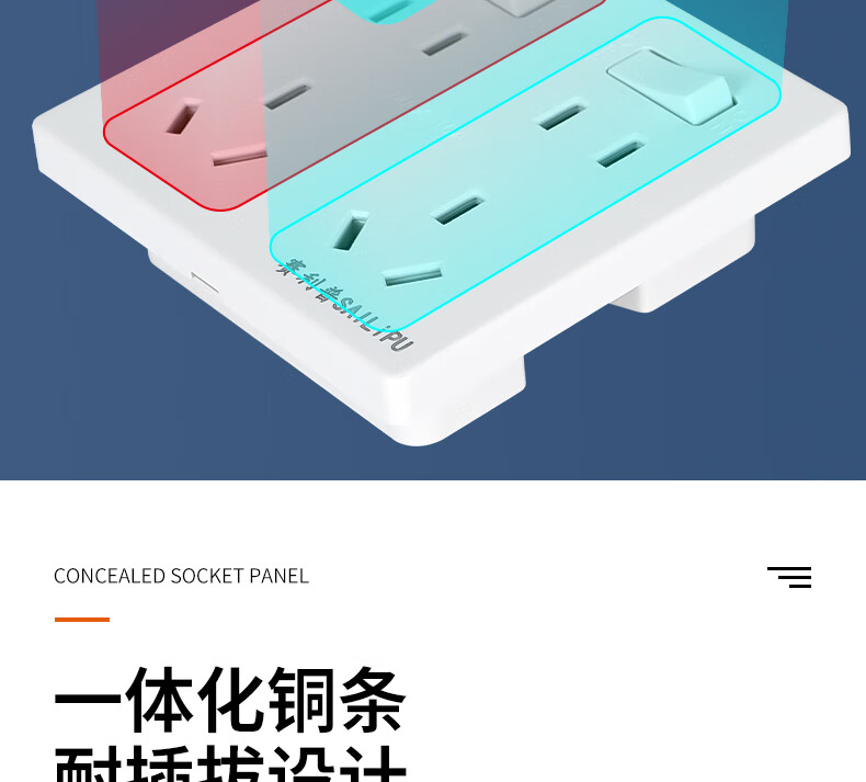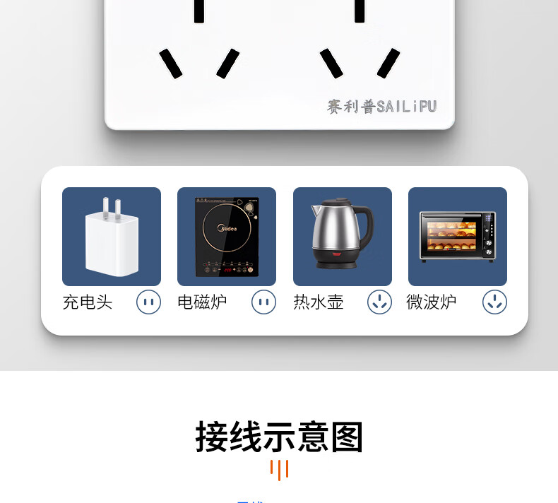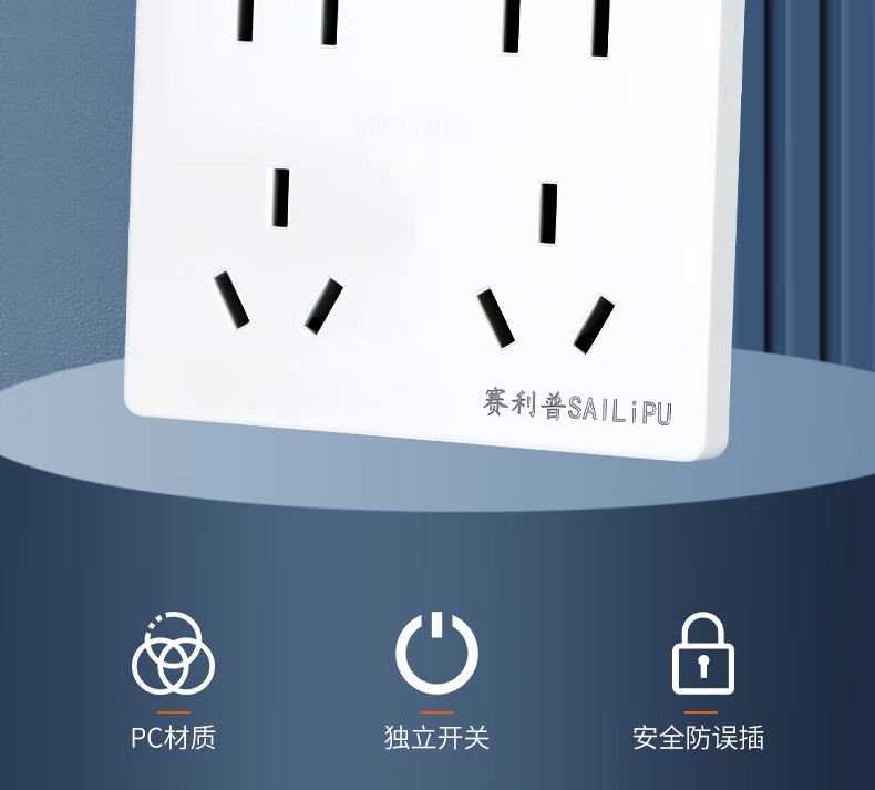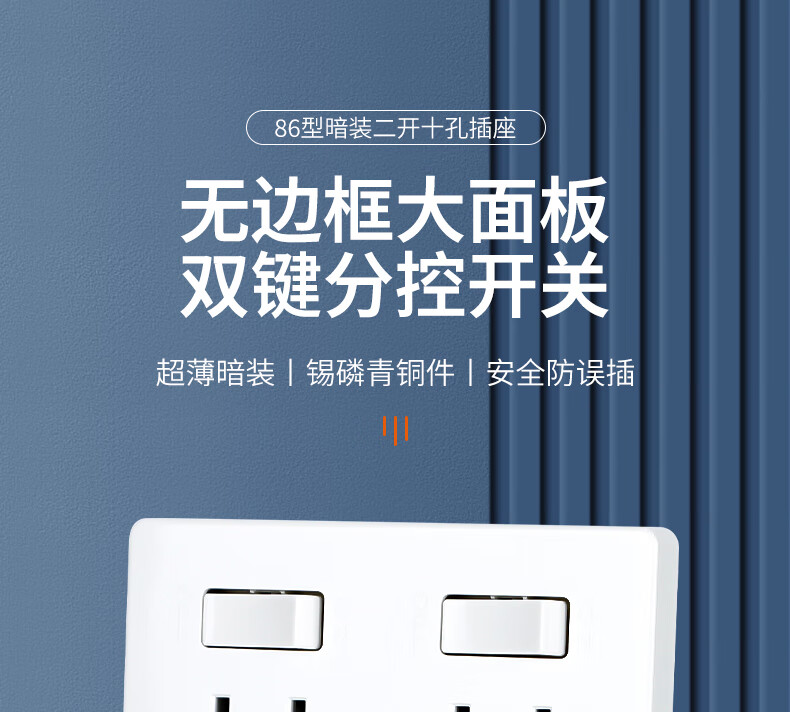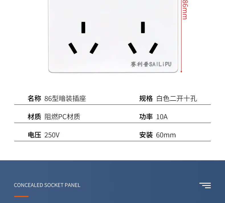 SAILiPU type 86 switch socket, wall concealed porous power supply panel, two or three plugs and ten hole sockets, household double five hole socket with switch, two openings and ten holes, white
