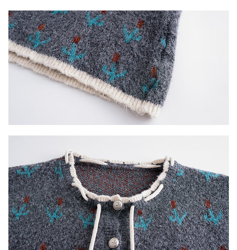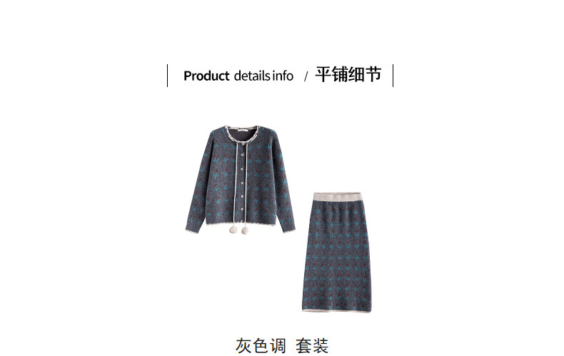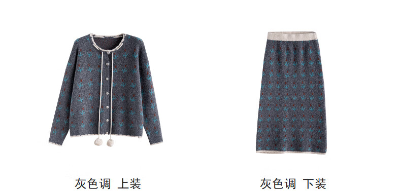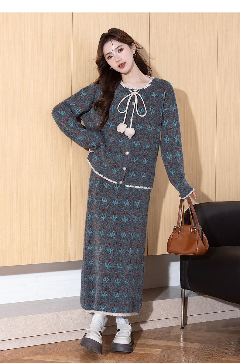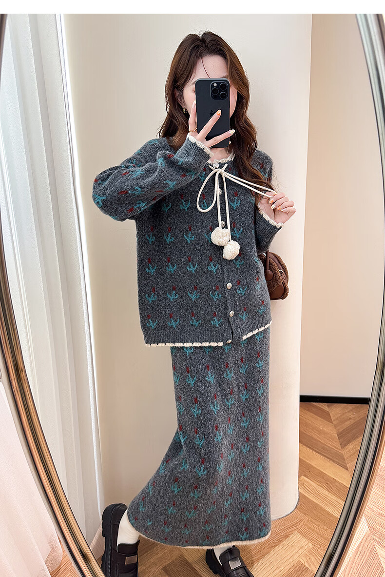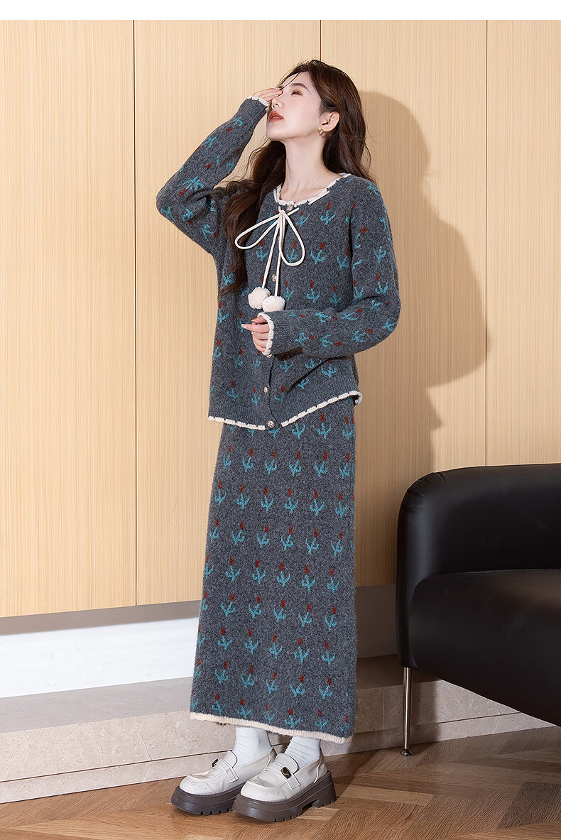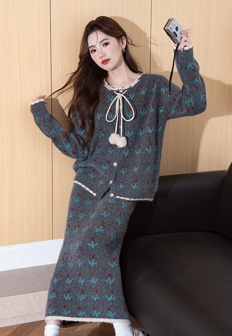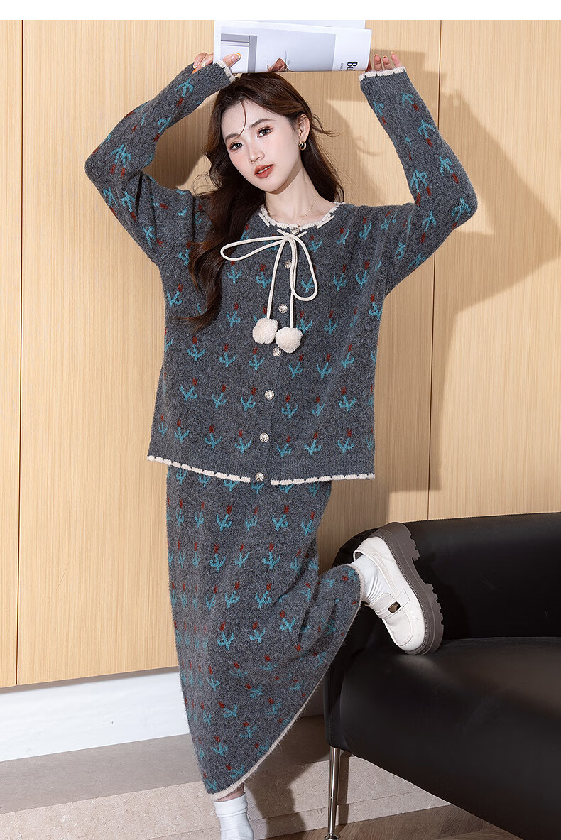 TonLion 2025 autumn and winter retro style pattern cardigan sweater and skirt two-piece women's suit