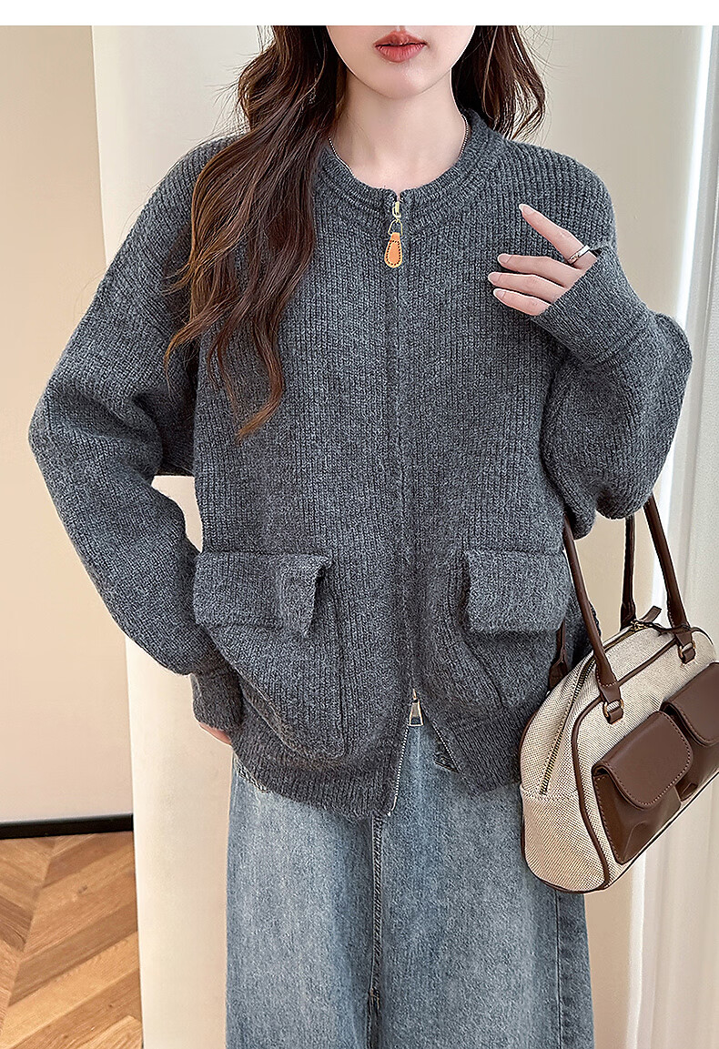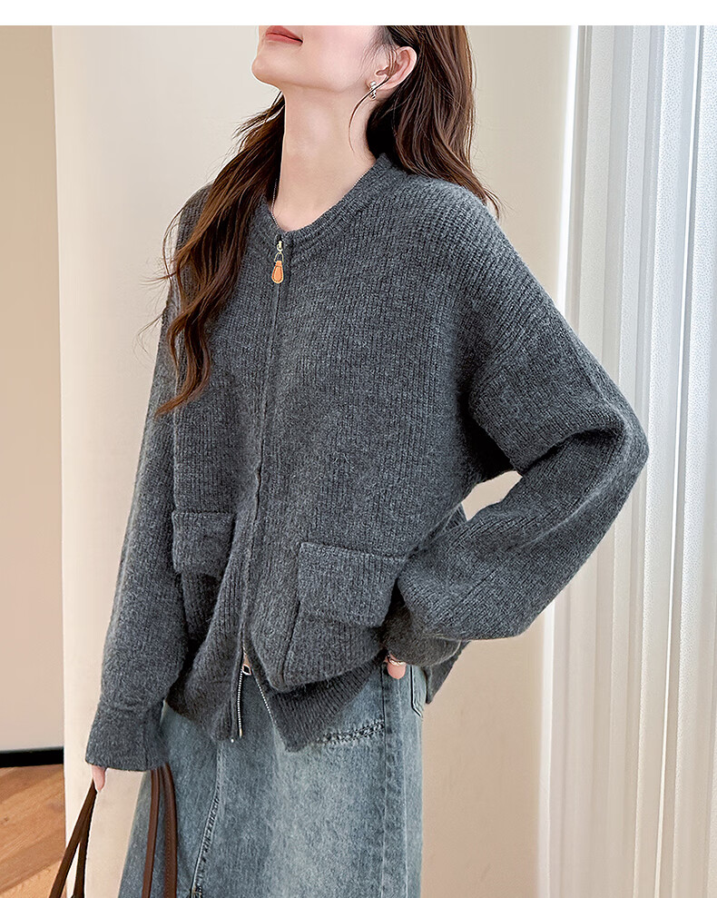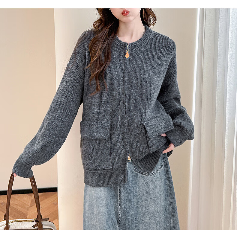 TonLion 2025 Autumn and Winter Casual Simple Style Zipper Cardigan Sweater for Women