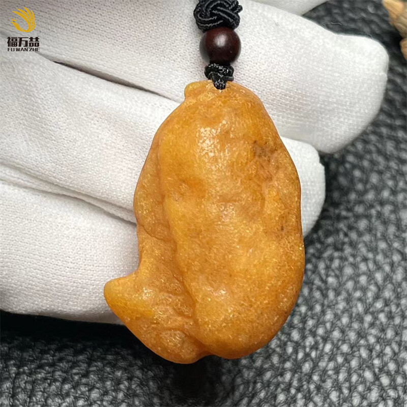 Fuwanzhe Natural Beeswax Raw Stone Pendant Baltic Sea Raw Mineral Amber Fish-shaped Sea Float Pendant 10.15g