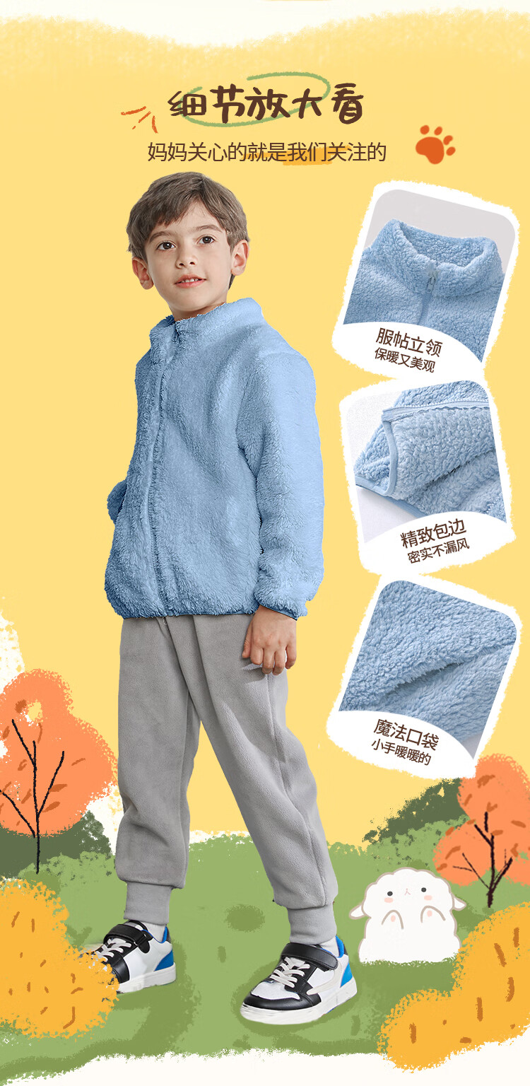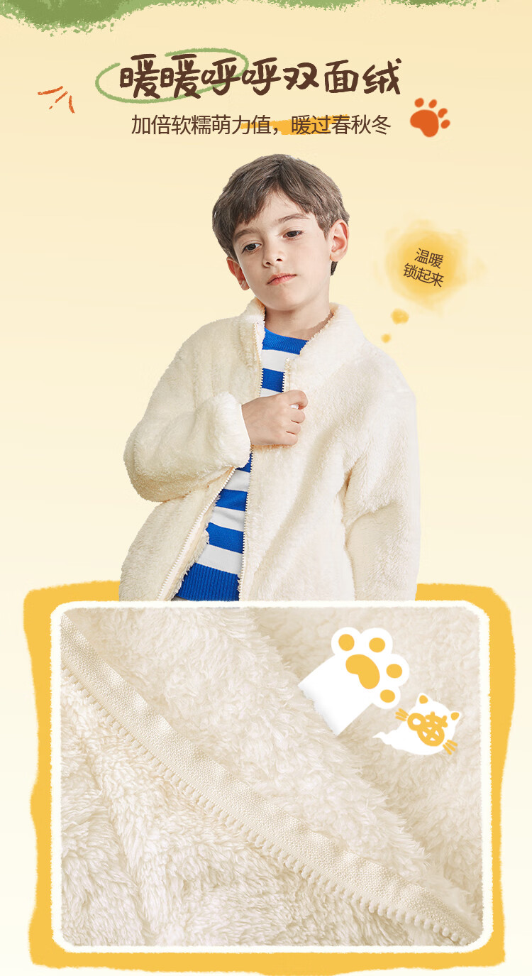 Jeanswest Children's Clothes Children's Jackets Autumn and Winter 2025 New Boys' Polar Fleece Cardigan Warm Clothes Girls' Winter Tops