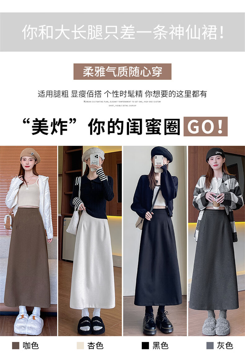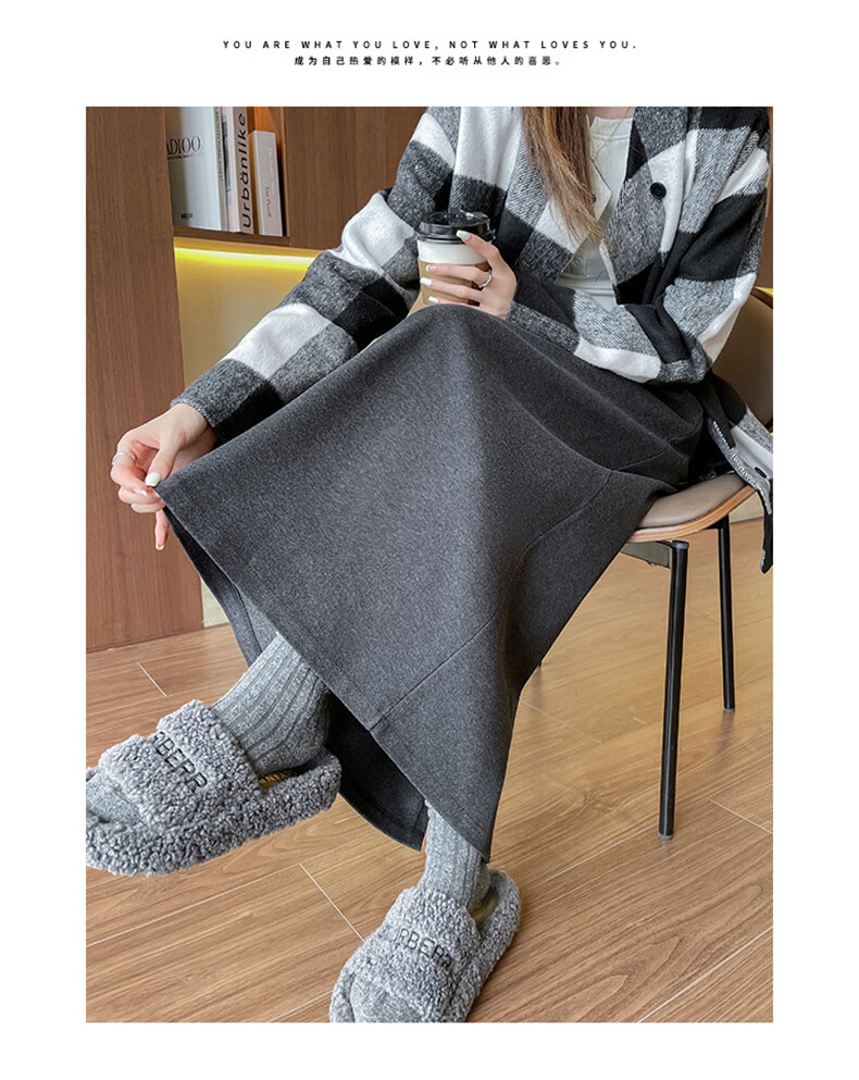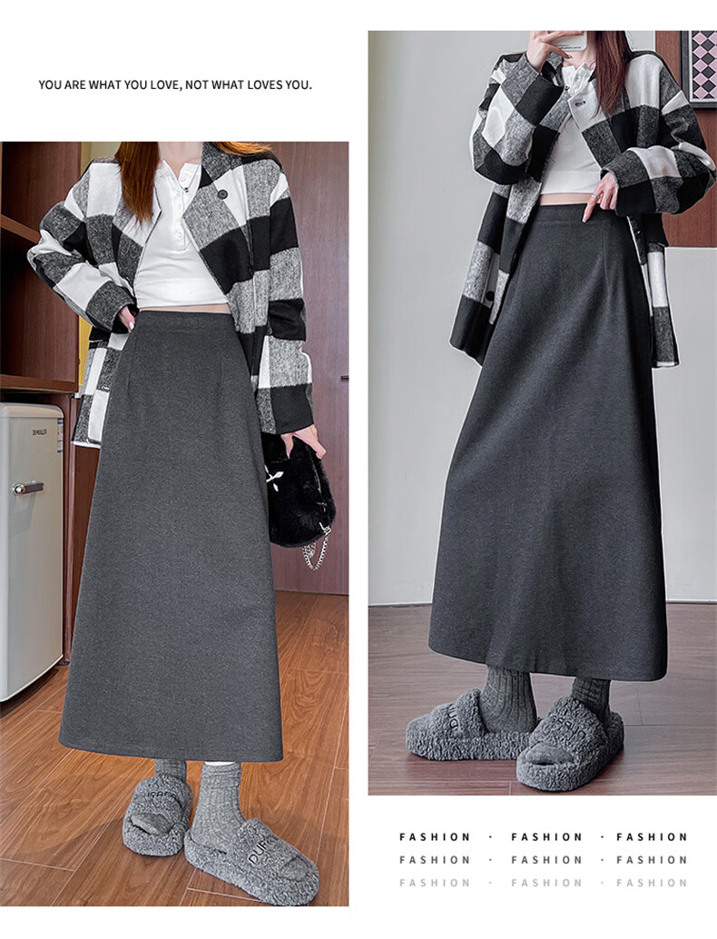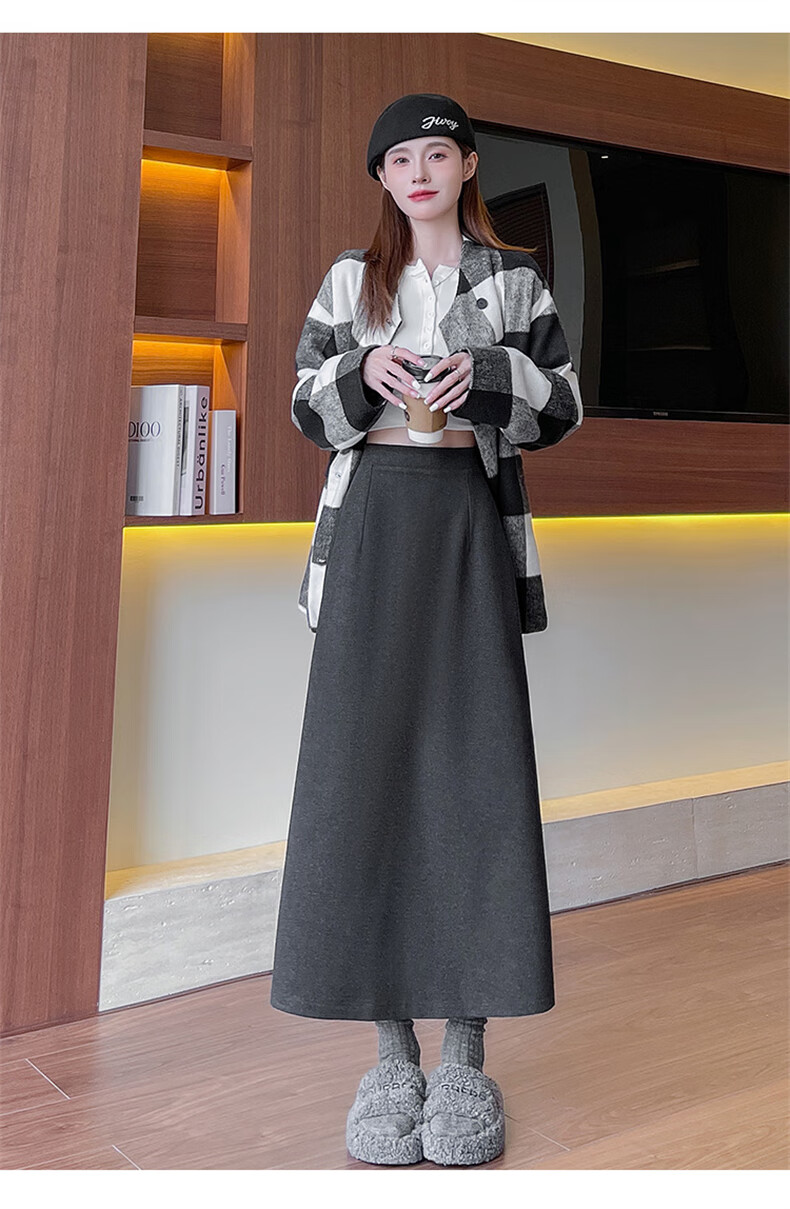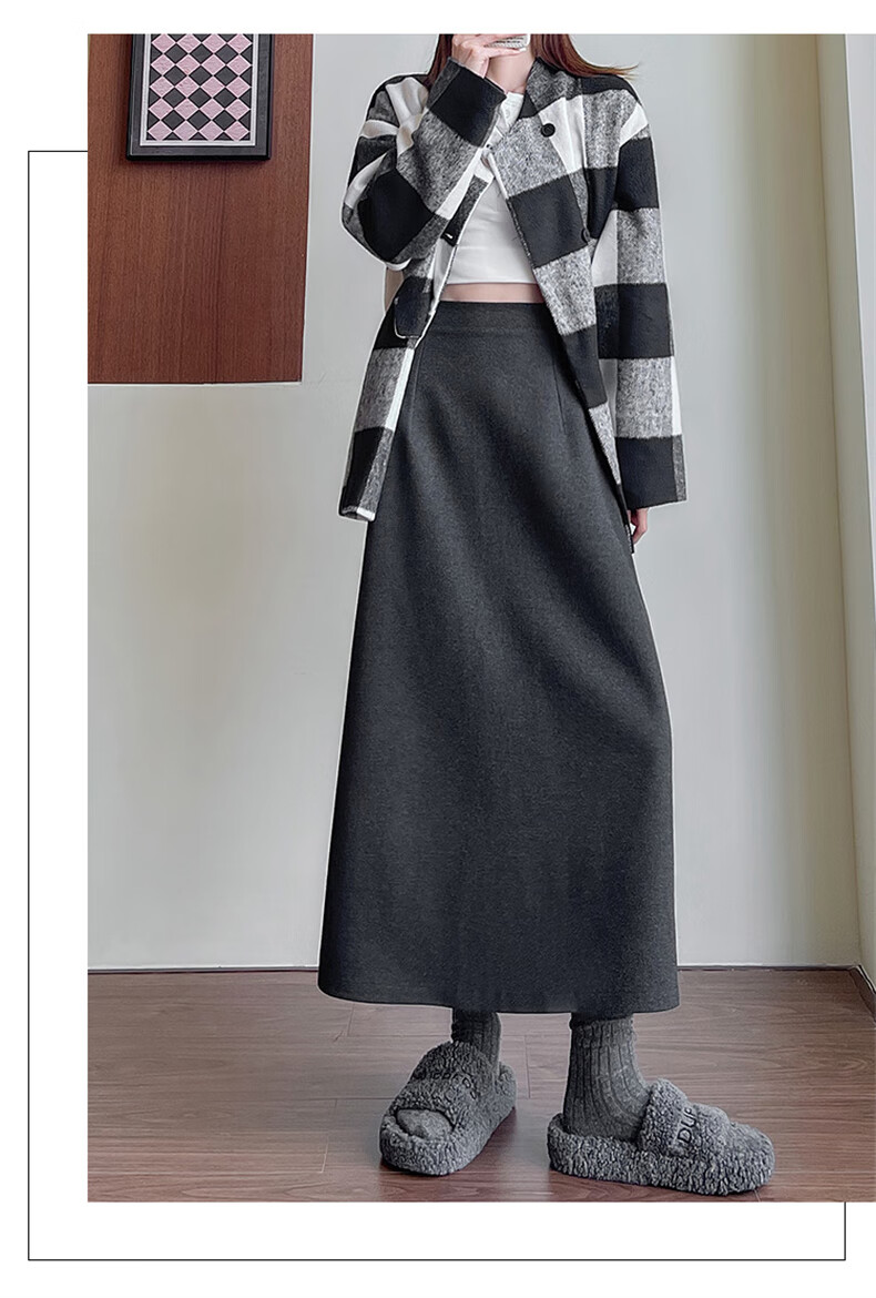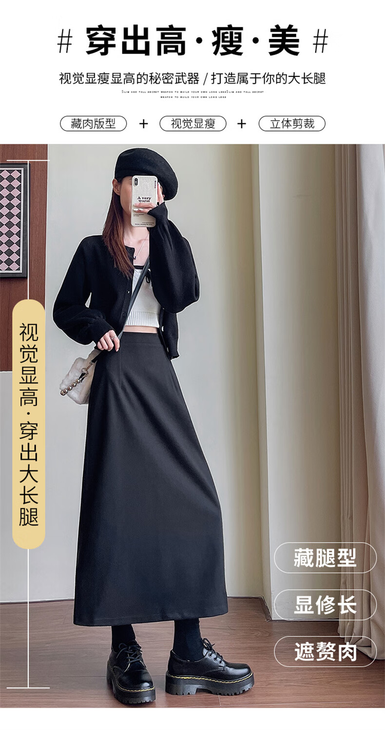 Langsha black woolen skirt for women winter 2025 new mid-length high-waisted A-line slit Korean version slimming hip skirt