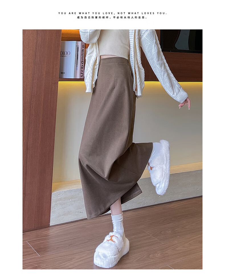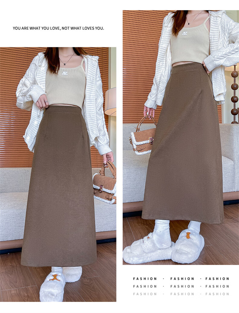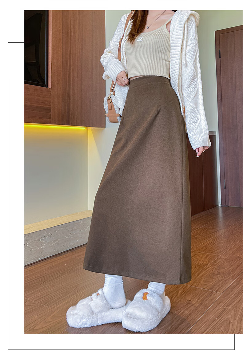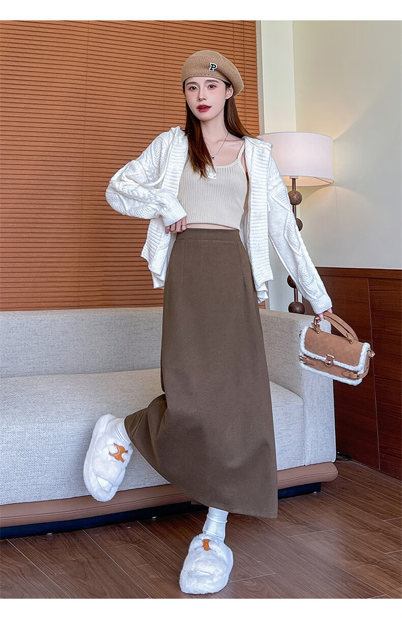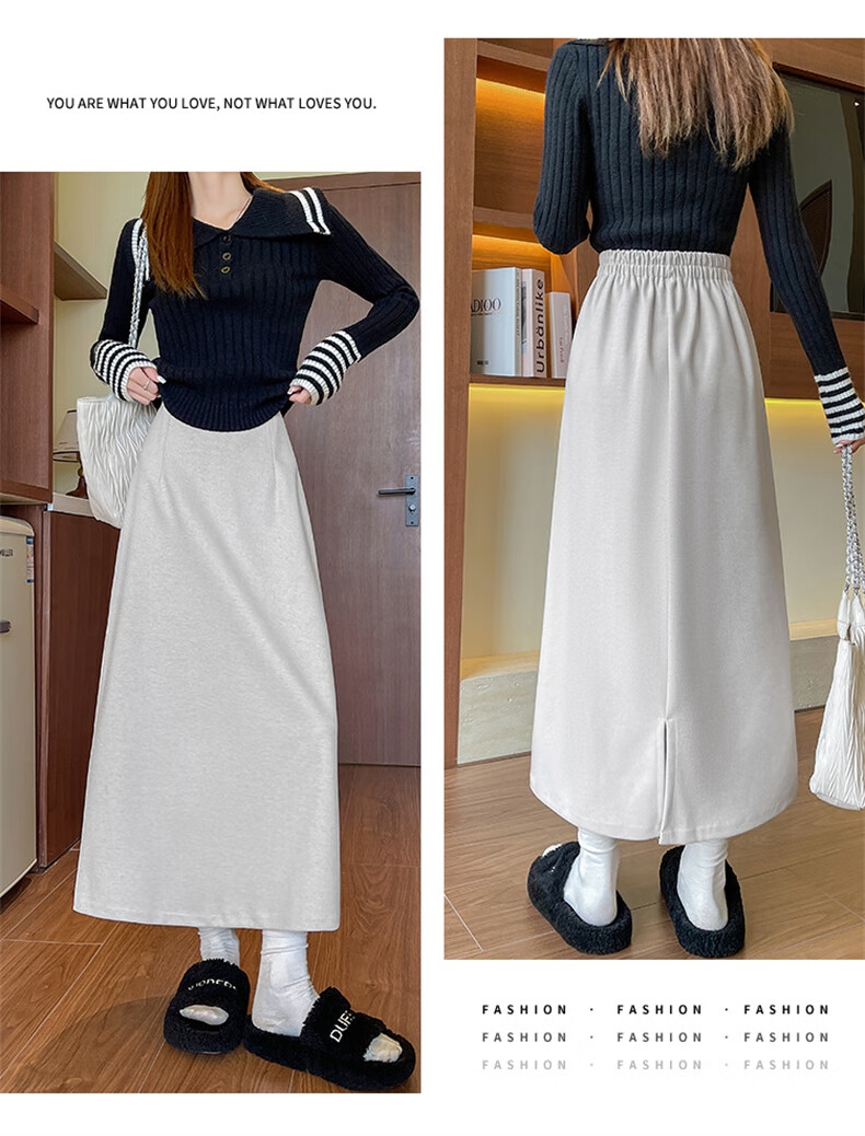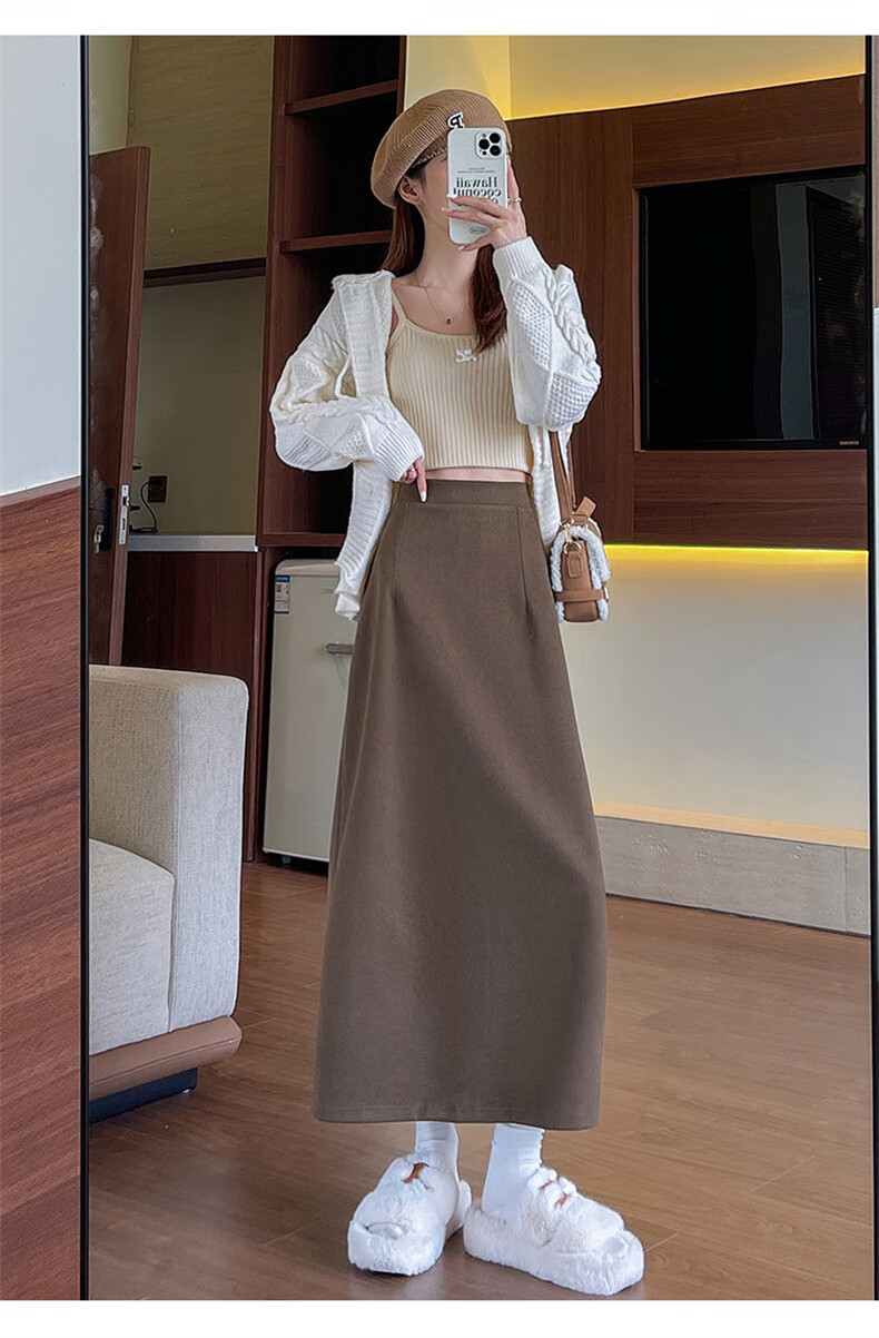 Langsha black woolen skirt for women winter 2025 new mid-length high-waisted A-line slit Korean version slimming hip skirt