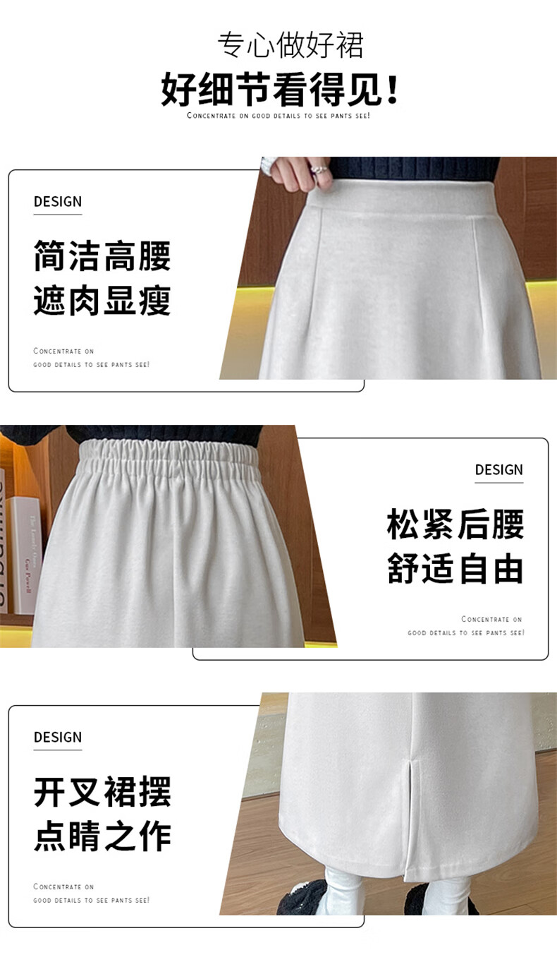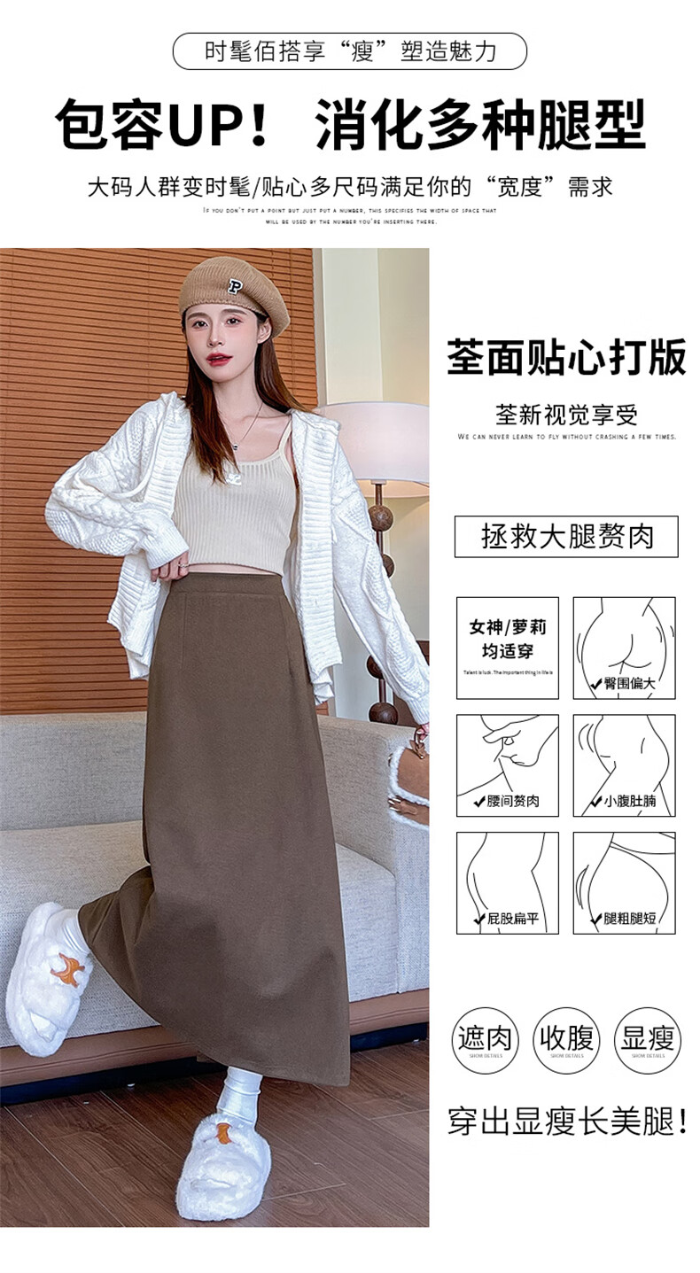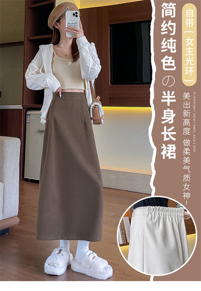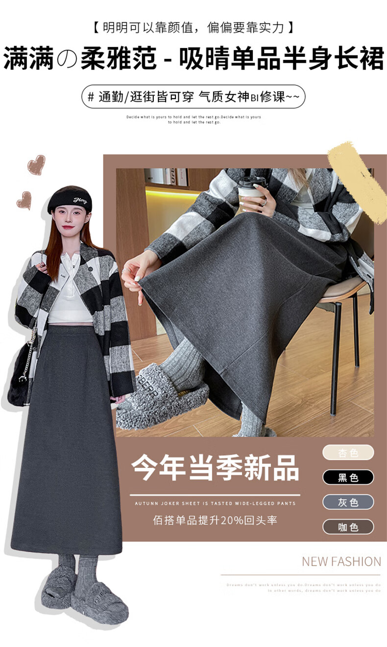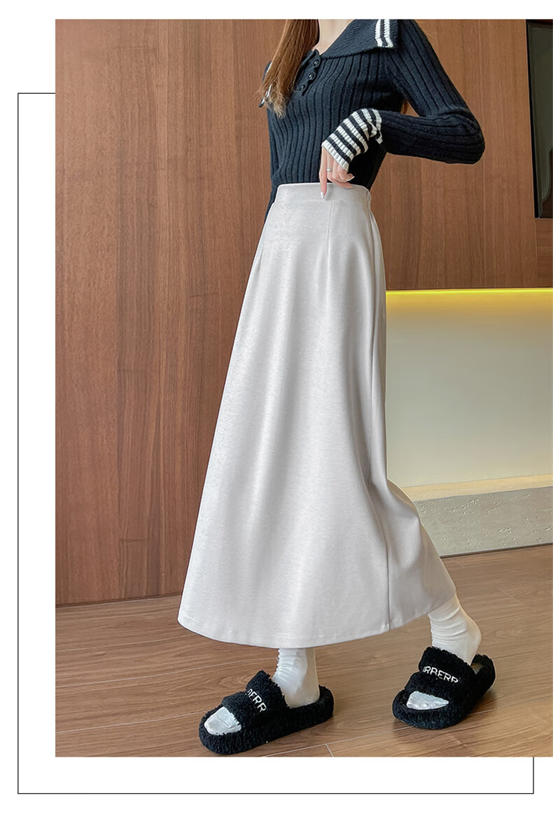 Langsha black woolen skirt for women winter 2025 new mid-length high-waisted A-line slit Korean version slimming hip skirt