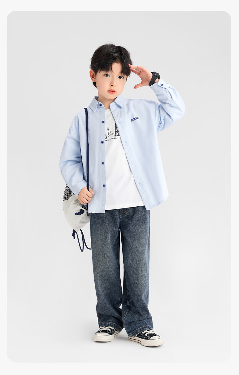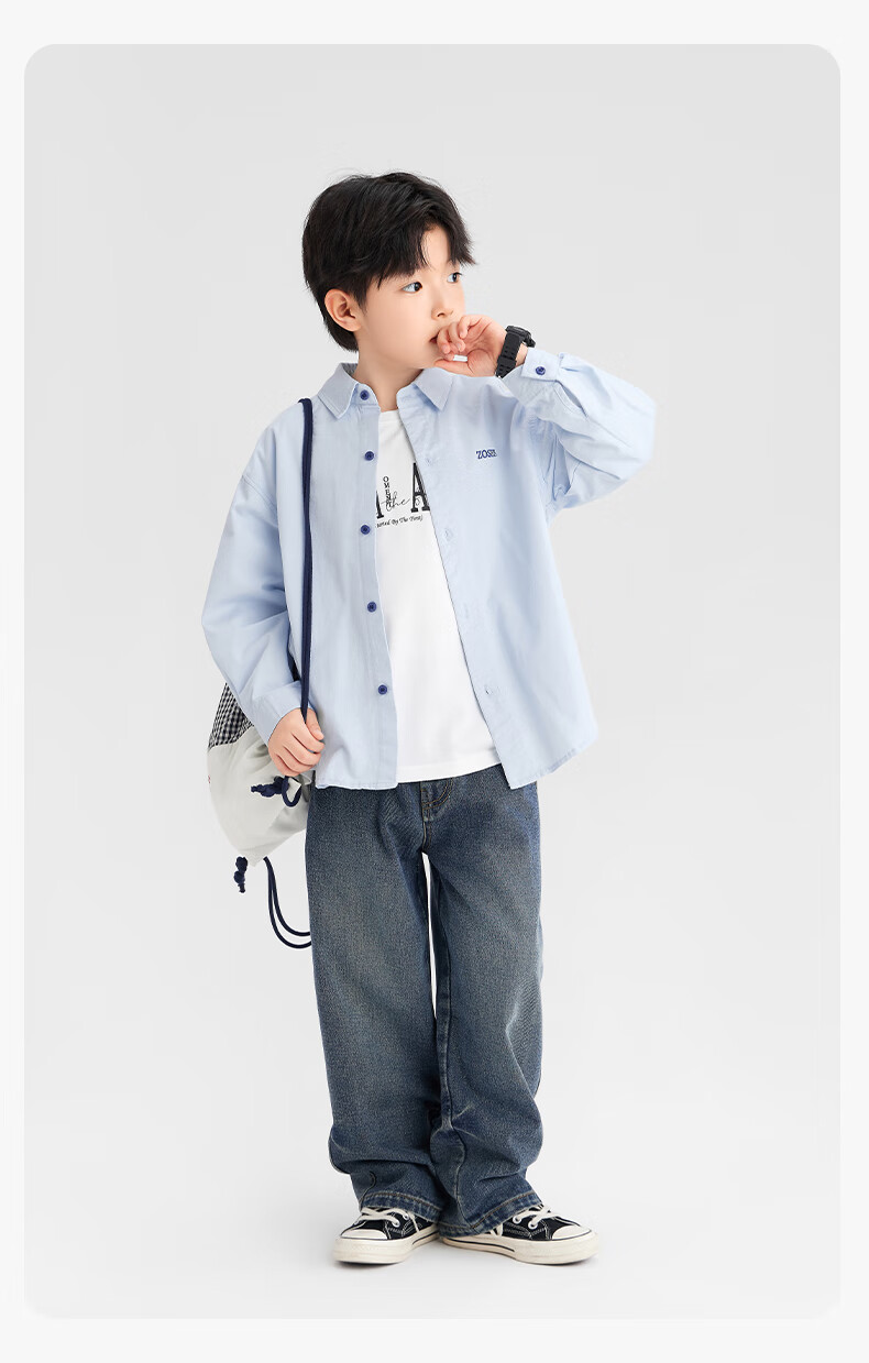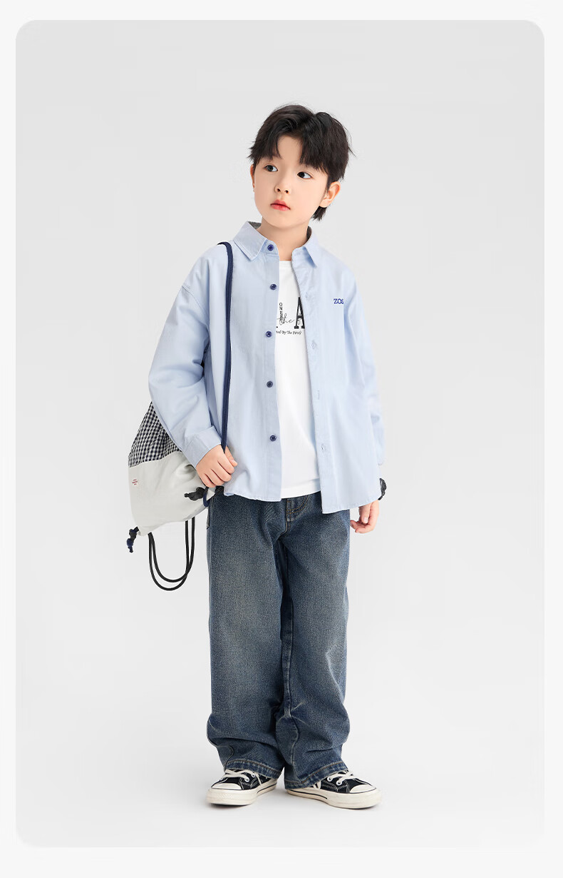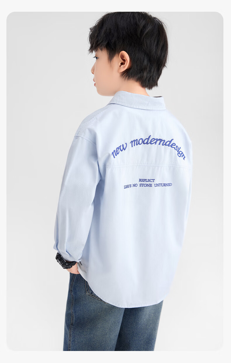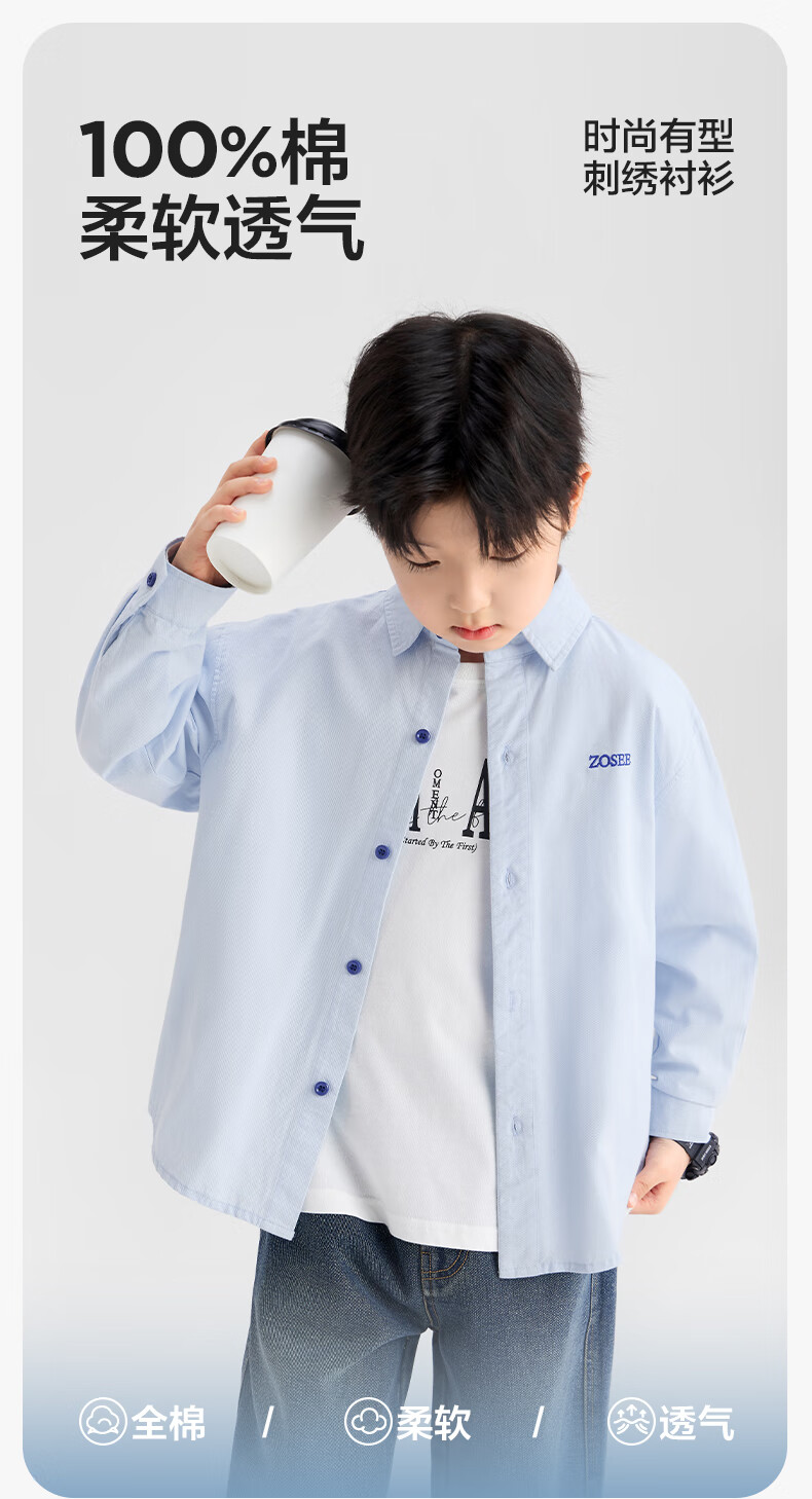 Zuoxi boys' shirts children's shirts spring and autumn thin coat pure cotton 2025 new style boys' inner wear blue 170