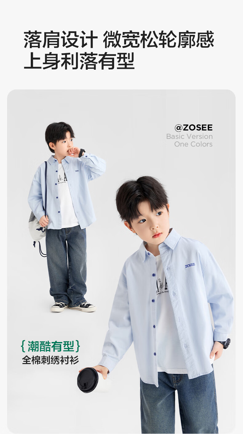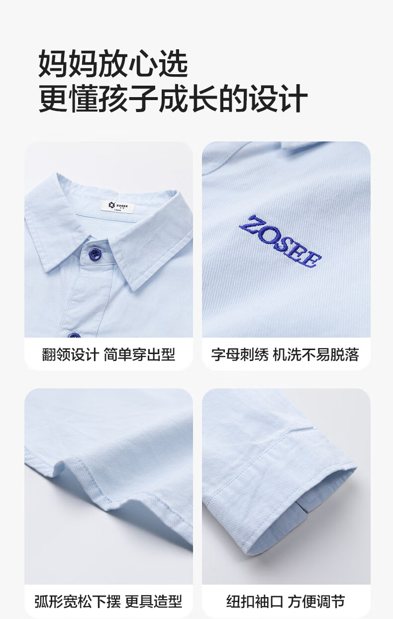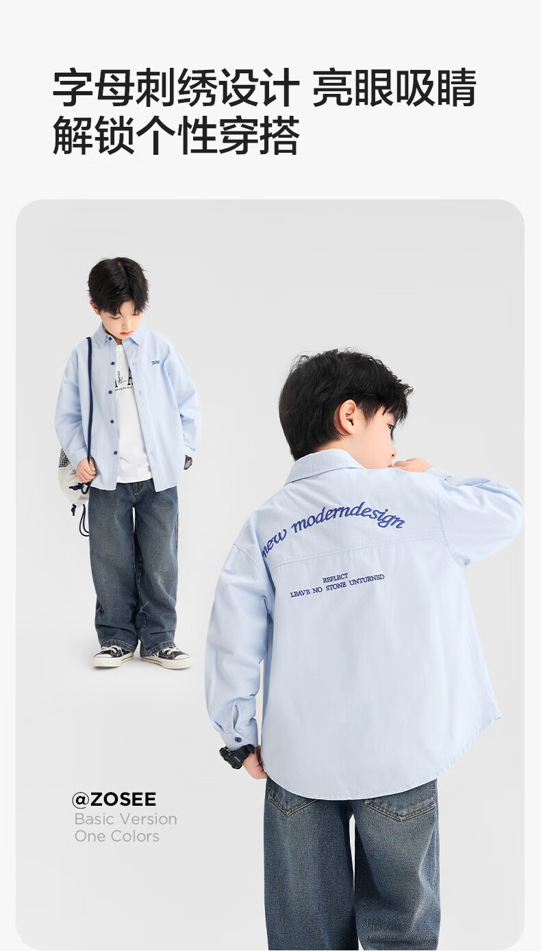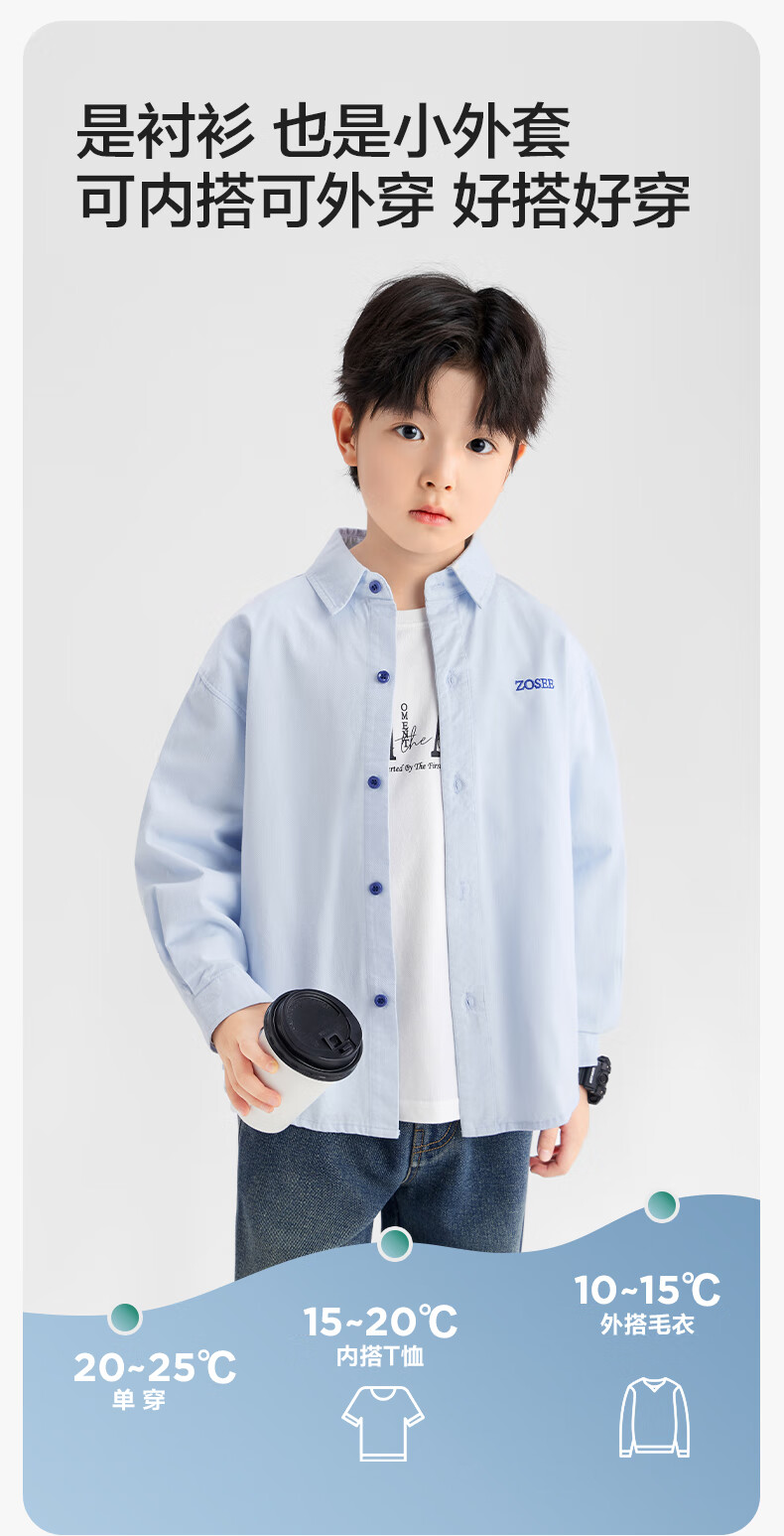 Zuoxi boys' shirts children's shirts spring and autumn thin coat pure cotton 2025 new style boys' inner wear blue 170