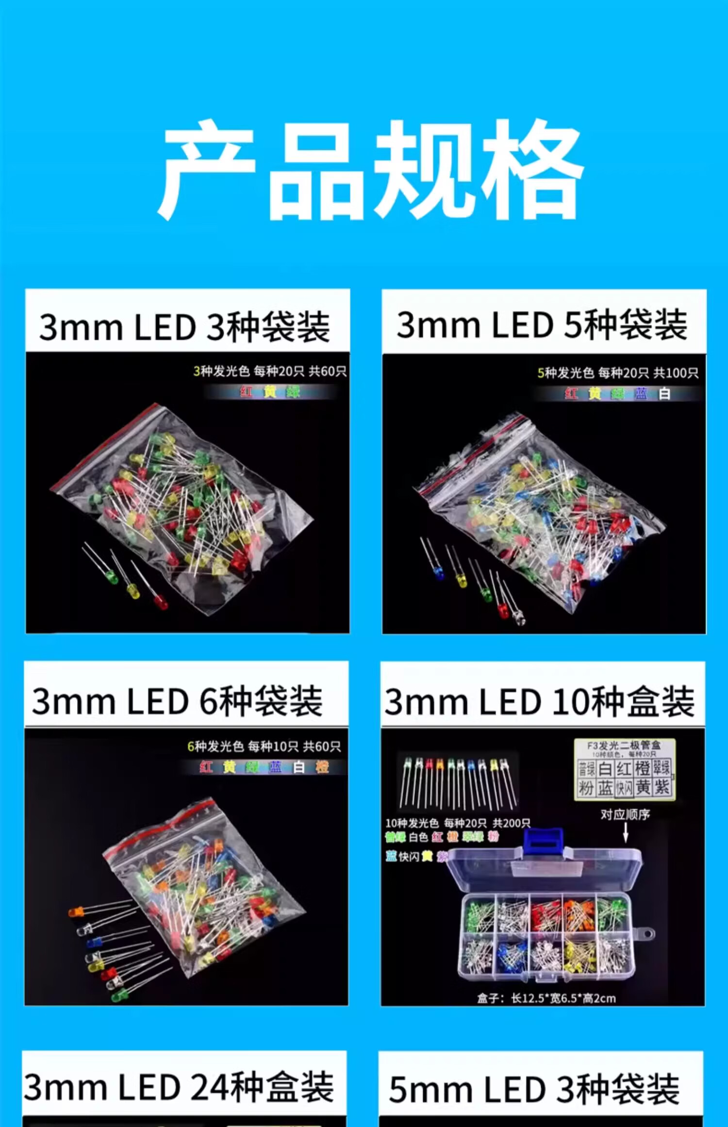 ZAVE LED lamp bead light-emitting diode 3mm 24 types in box
