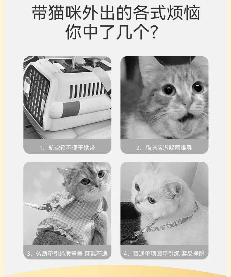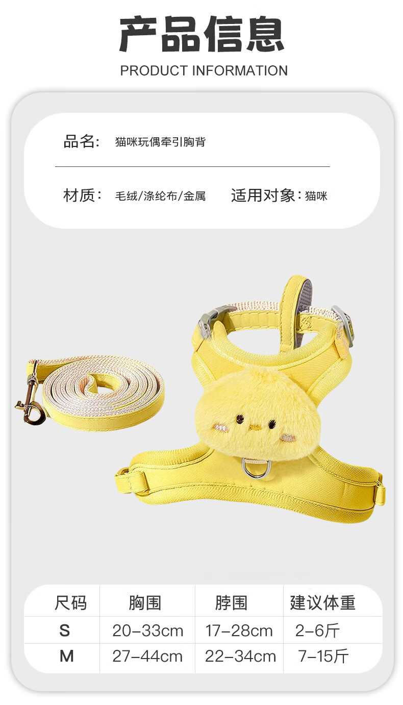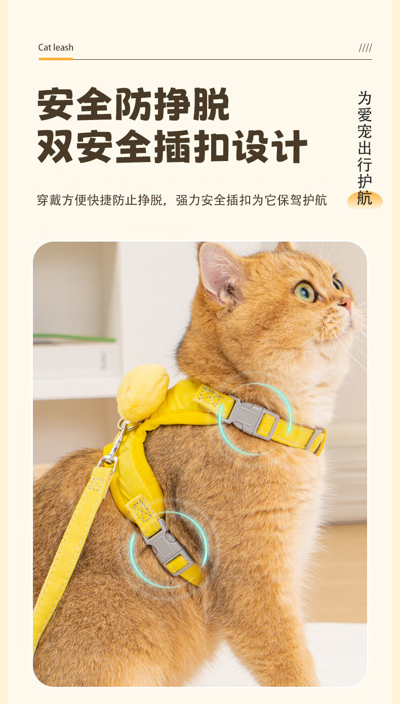 Bo Naling cat traction rope cat rope chest harness walking cat rope cat rope vest pet anti-breakaway escape harness chain