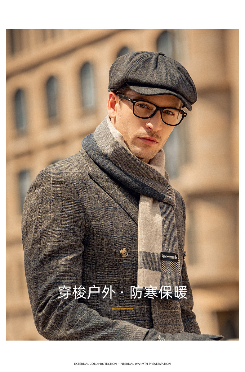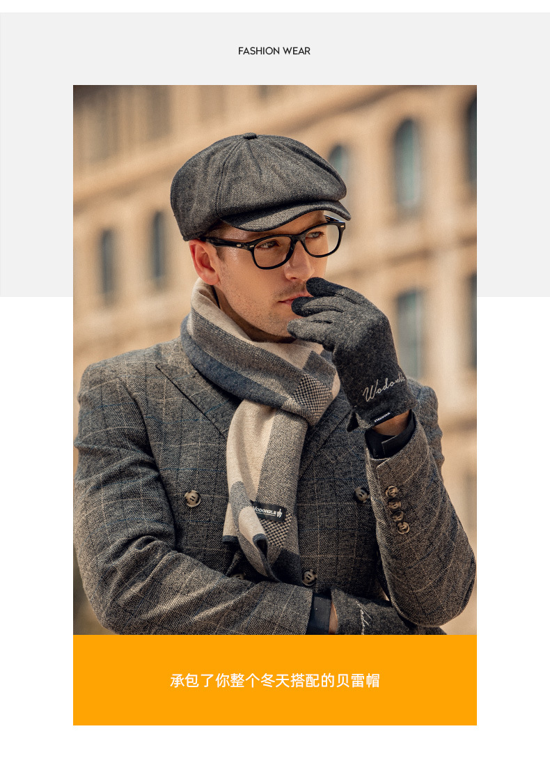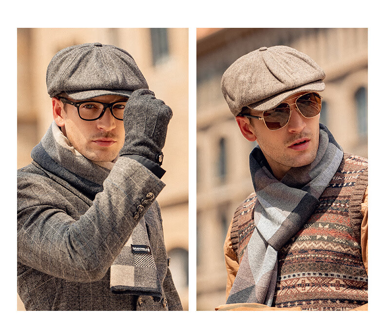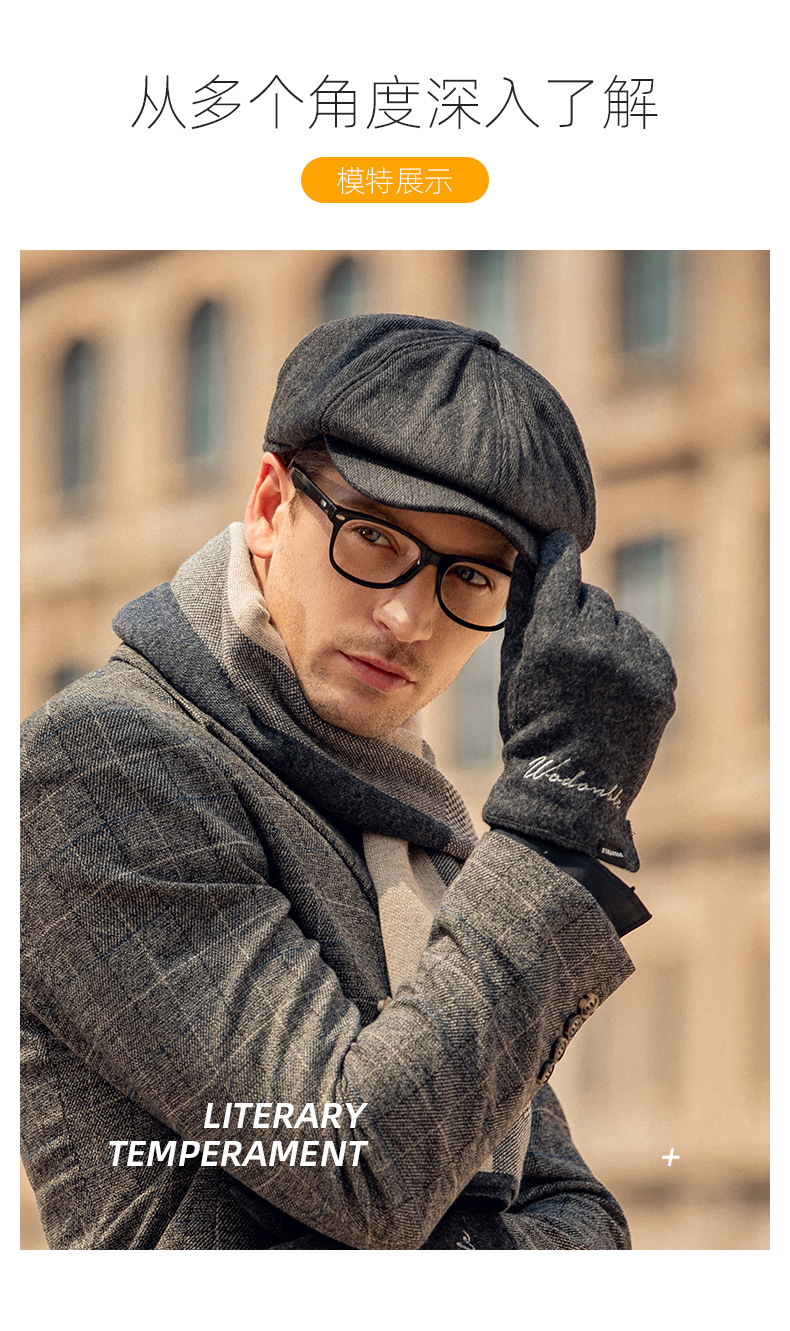 Baijichuan hat men's autumn and winter duck tongue British retro progressive hat thickened hat men's winter Korean style short-brimmed beret men's black one size
