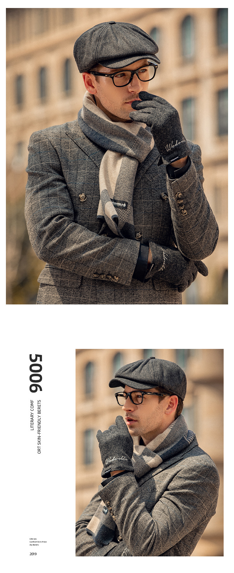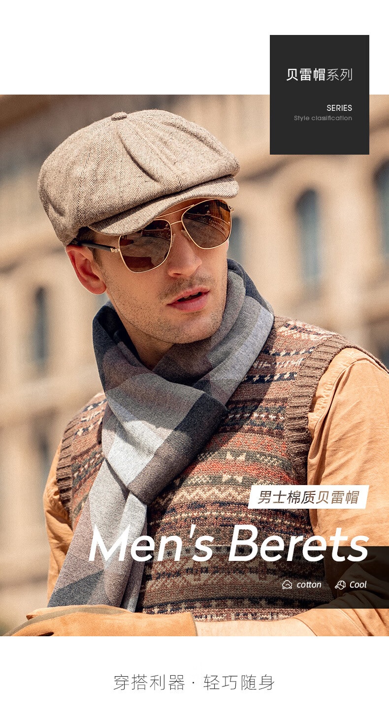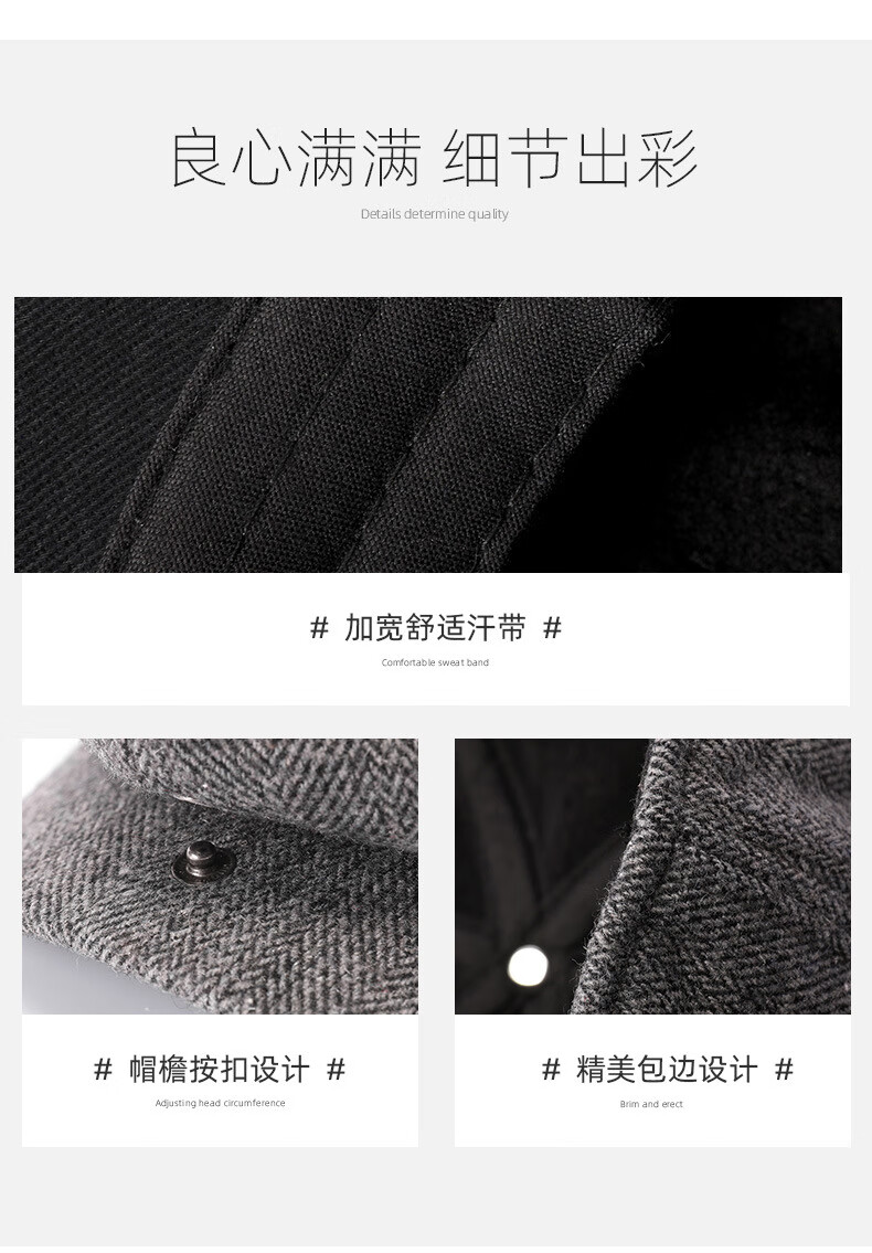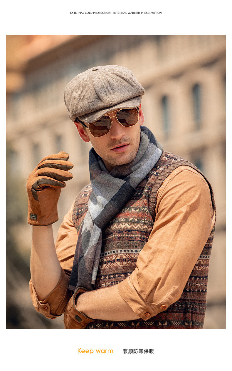 Baijichuan hat men's autumn and winter duck tongue British retro progressive hat thickened hat men's winter Korean style short-brimmed beret men's black one size