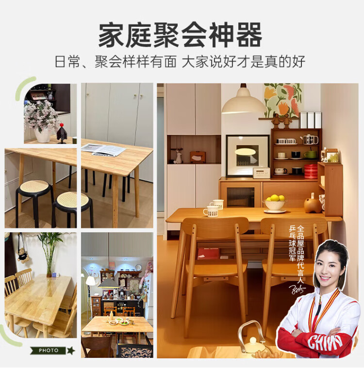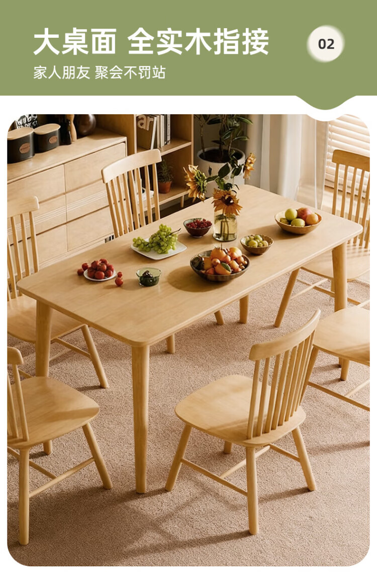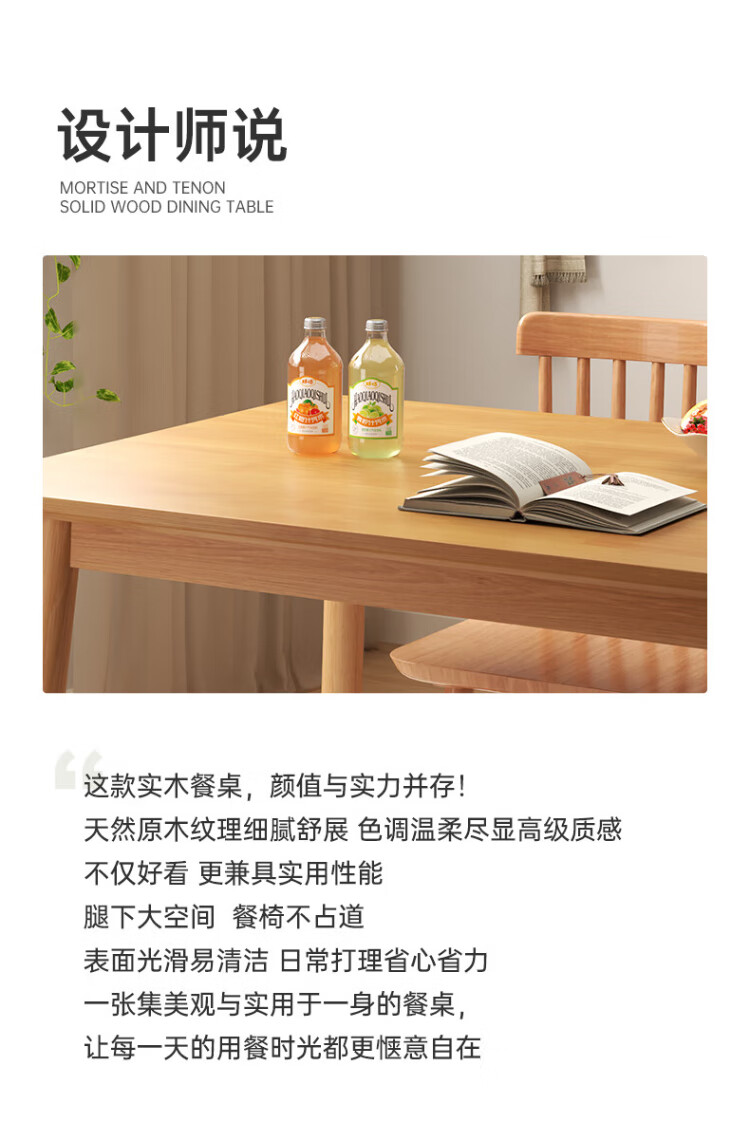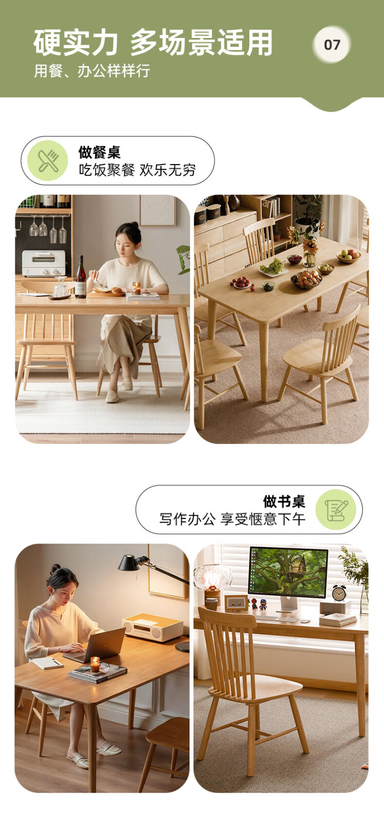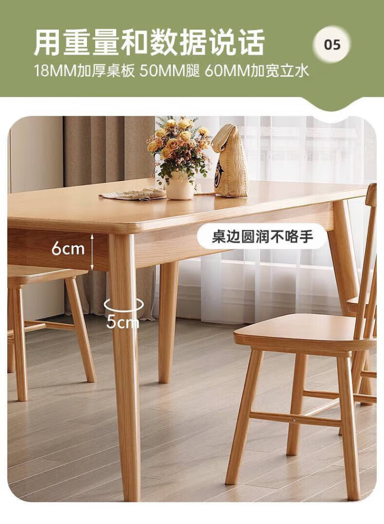 Quanpinwu solid wood dining table, household dining table and chair combination, small apartment dining table, rectangular dining table, large dining table