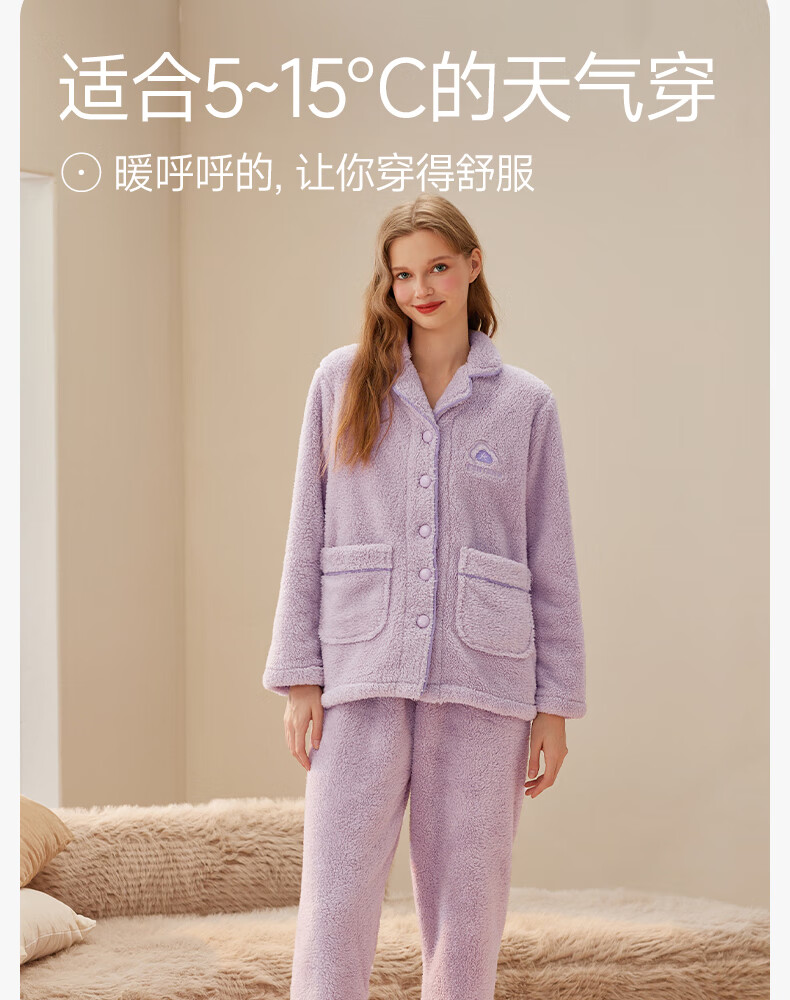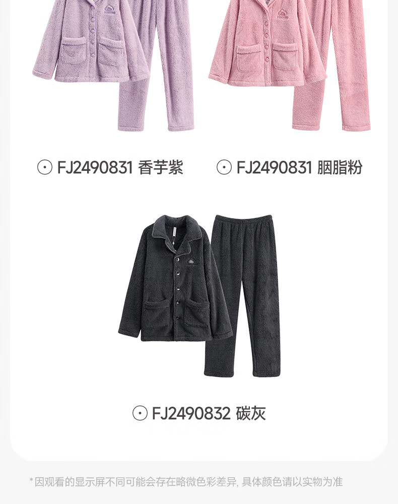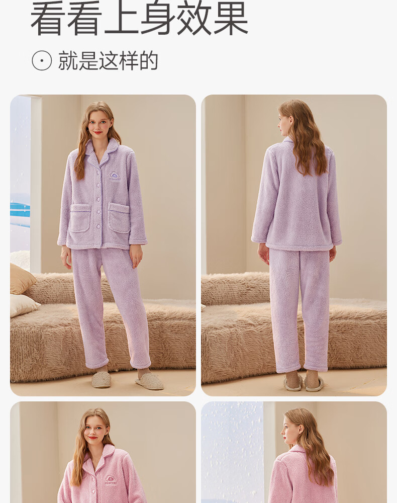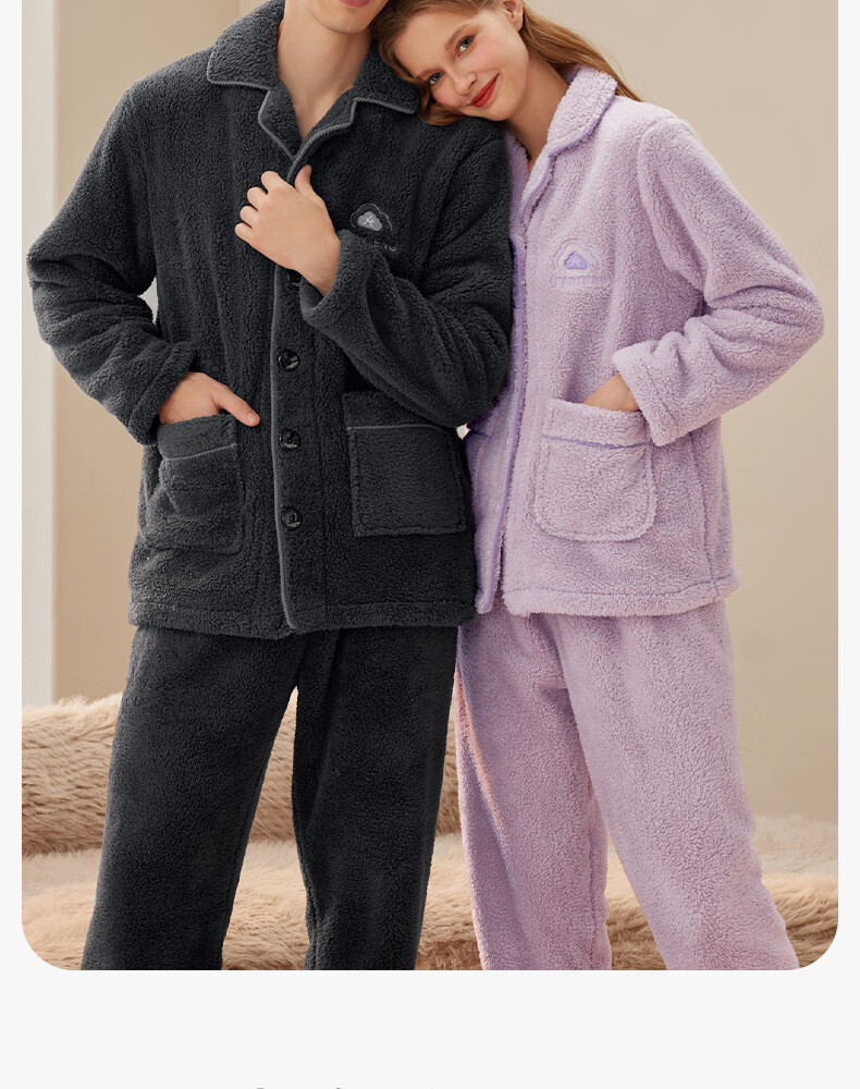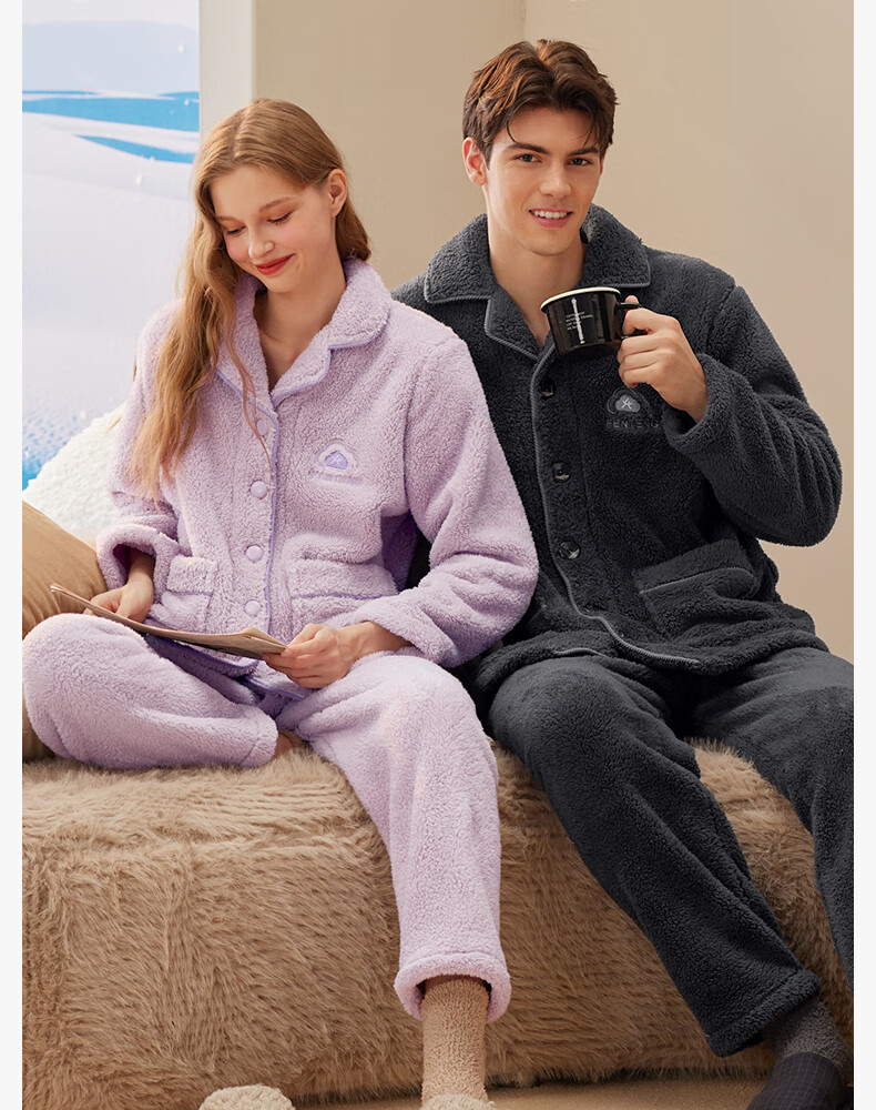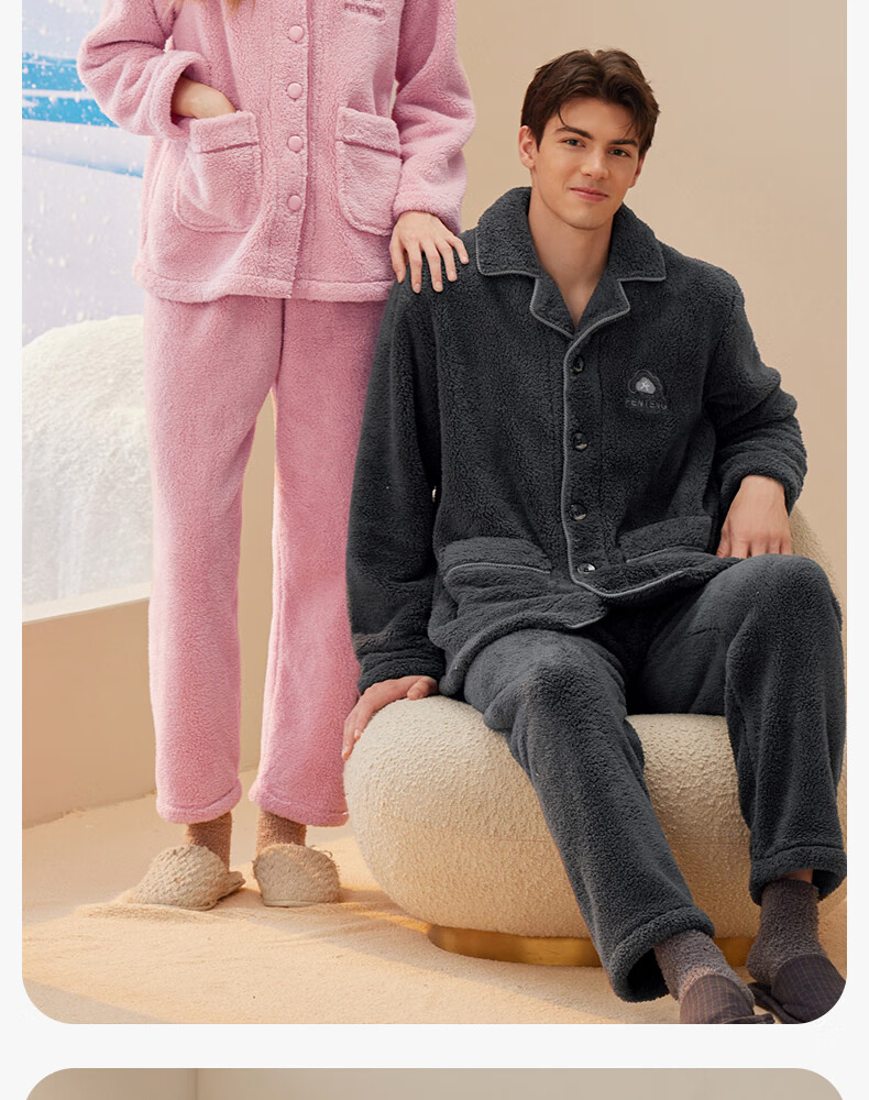 Fenten Couple Pajamas Coral Velvet Autumn and Winter New Plus Velvet Thickened Women's Suit Flannel Casual Warm Home Clothing for Men
