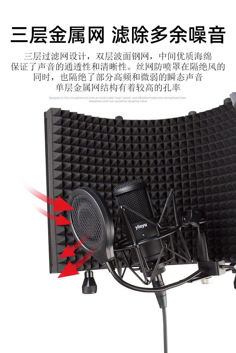 Silverbait anchor microphone pop-up cover double-layer wind-proof net Gooseneck recording studio radio broadcast room condenser microphone anti-blast sound and anti-noise POP filter diamond-shaped extra large blow-out net