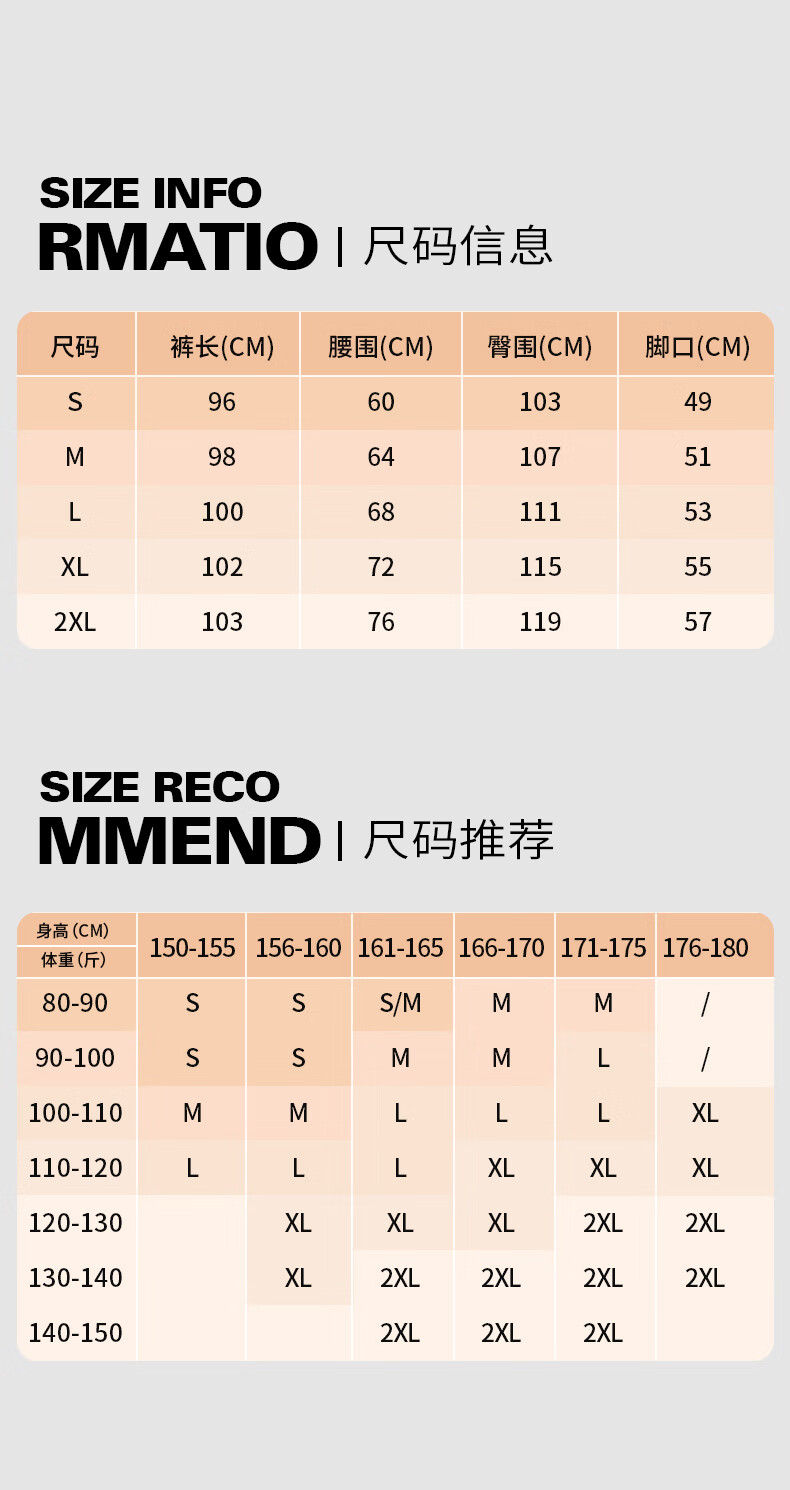 China (cm) 160-165/84-86 165-170 / 88-90 167-172 / 92-96 168-173 / 98-102 170-176 / 106-110