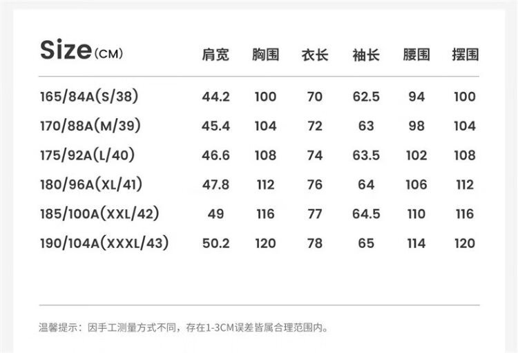 China (cm) 165 / 88-90 170 / 96-98 175 / 108-110 180 / 118-122 185 / 126-130